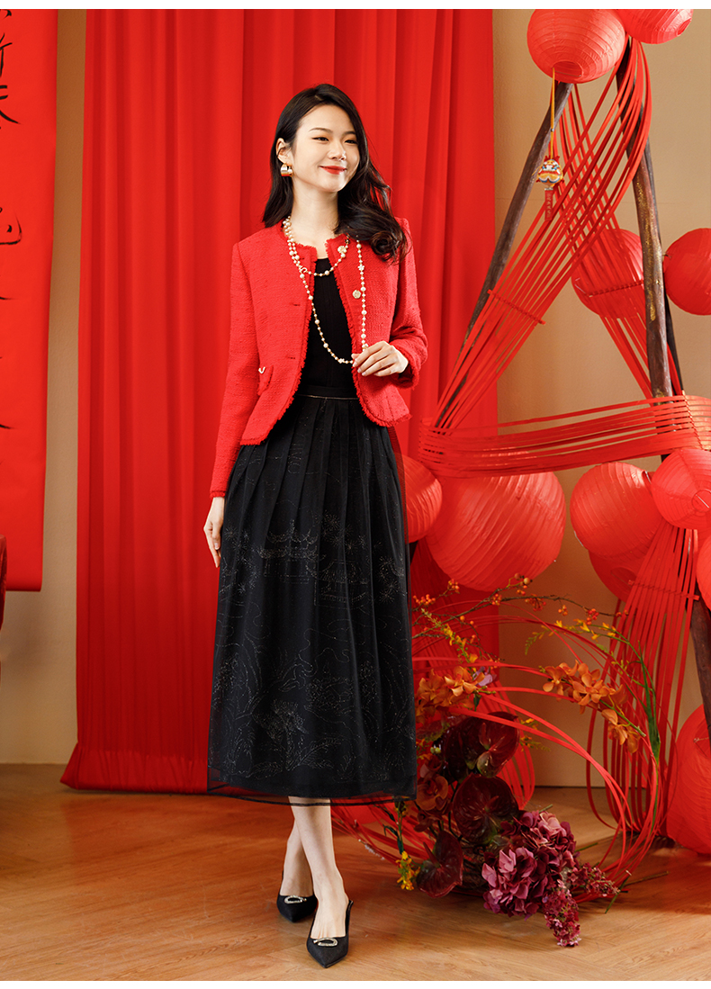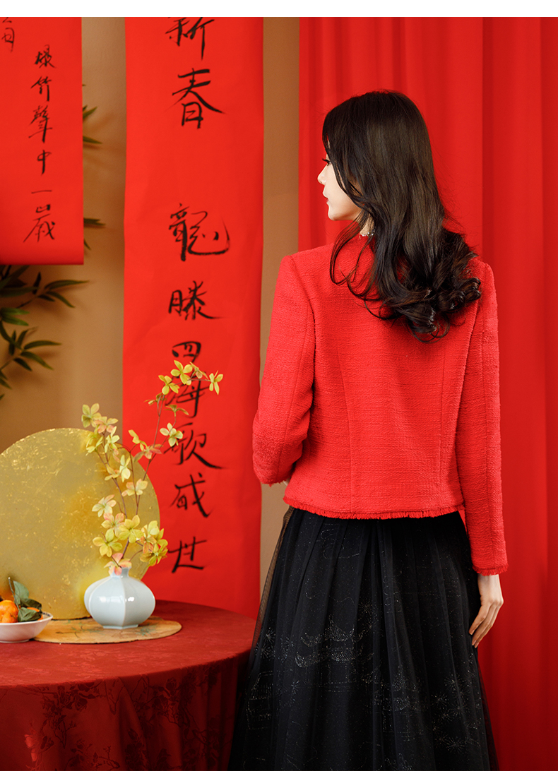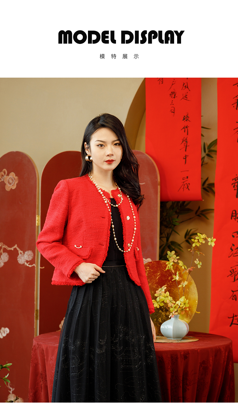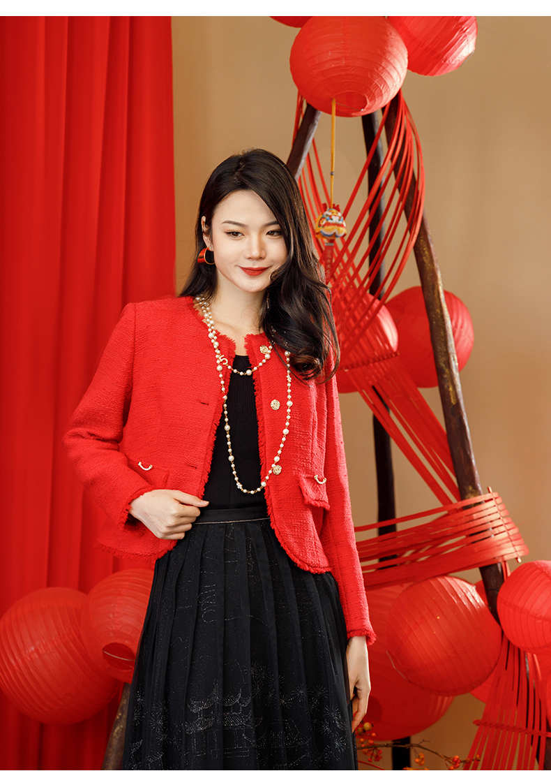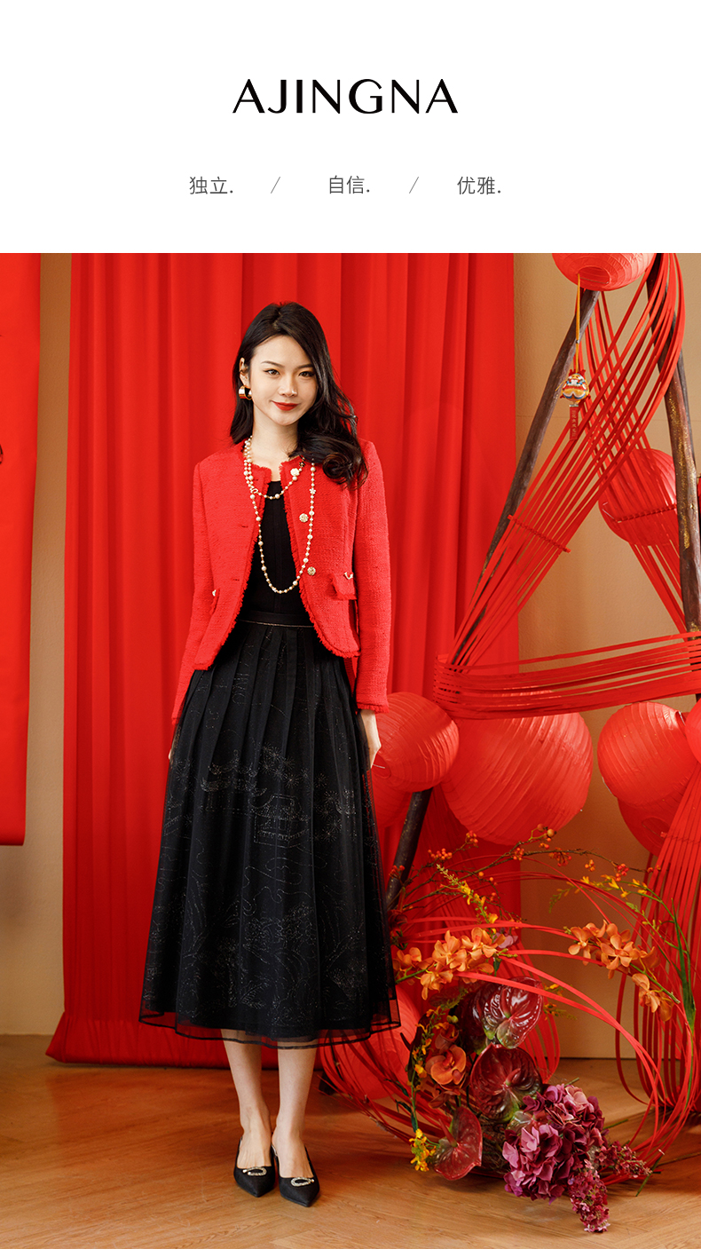 【商场同款】阿菁娜2024春夏新款短款圆下摆抽穗小香风A29C107035
