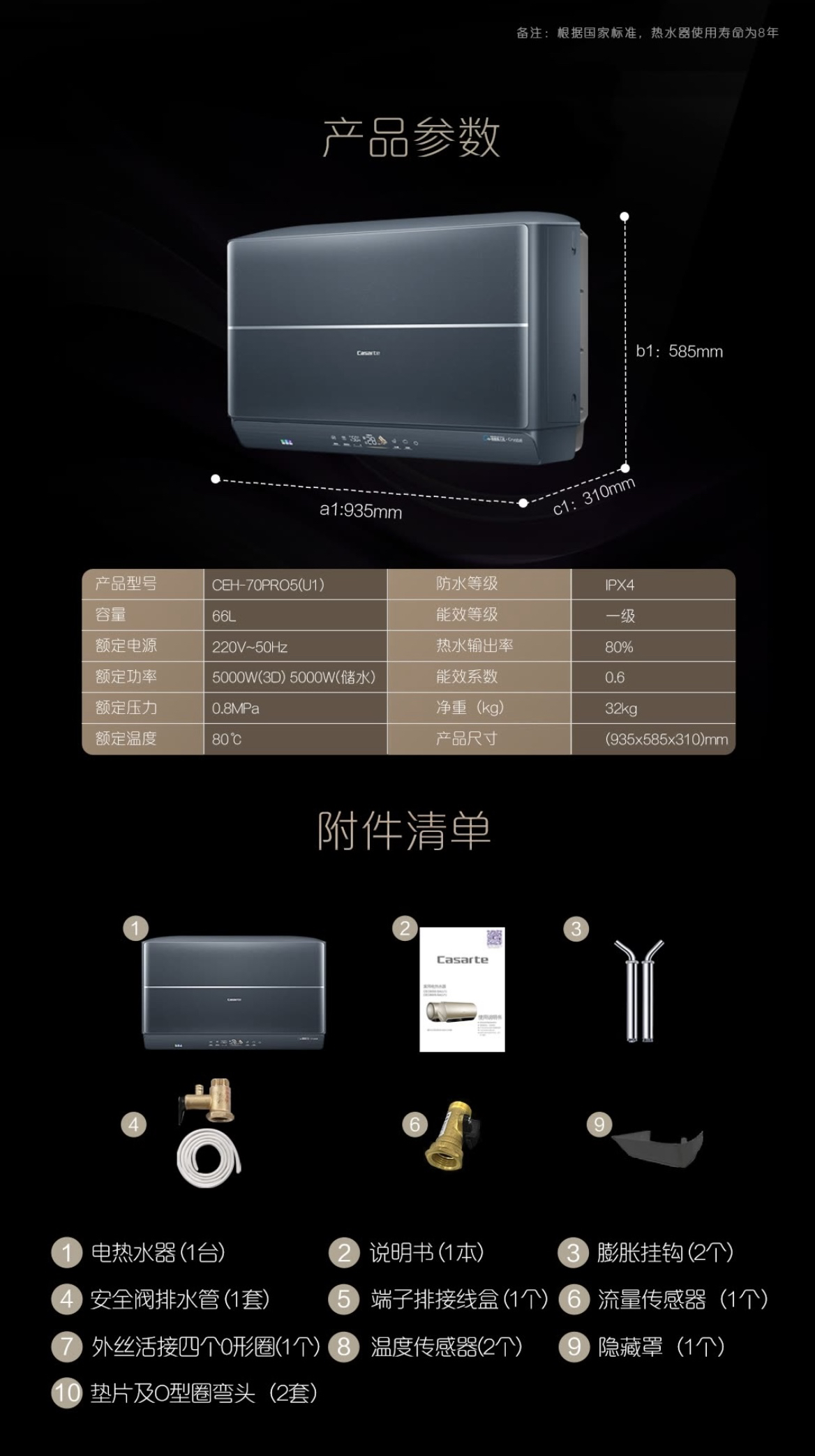卡萨帝(Casarte)电热水器CEH-70PRO5(U1)