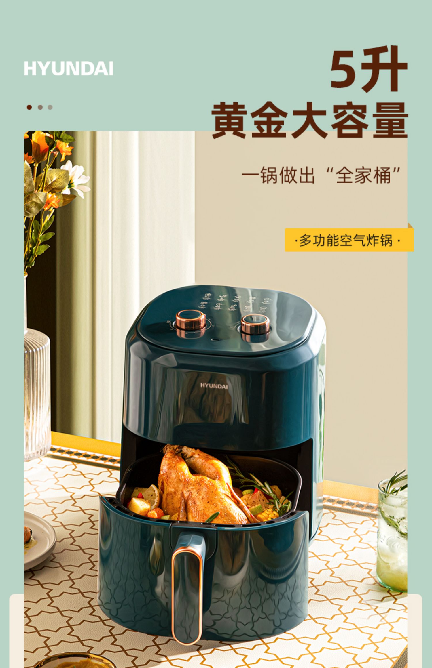 韩国现代新款空气炸锅家用大容量智能无油烤箱多功能全自动电薯条
