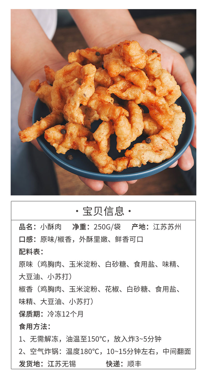 【小酥肉】采用现宰活鸡、严选优质鸡肉,鲜嫩的鸡肉切割,经过多种香辛料滚揉腌制,均匀入味,裹粉留香,秘制酱料、腌制入味,肉质细腻,口感不干不柴,鲜嫩美味!