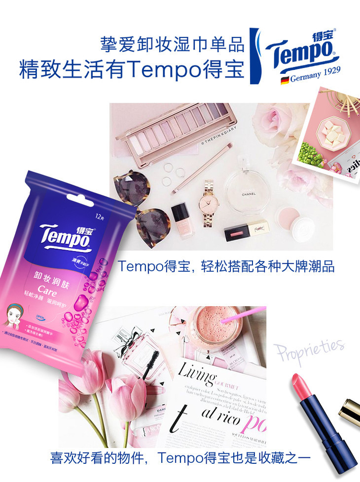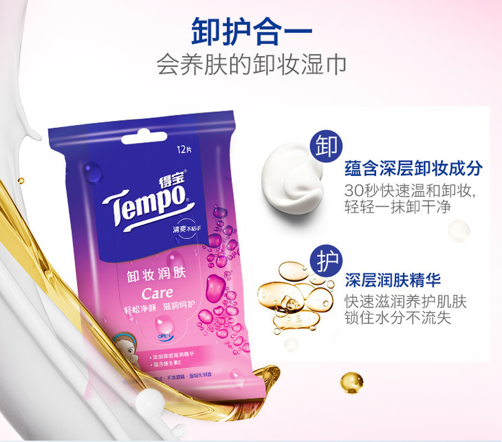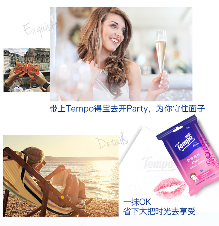 一张魅力红酒卡+10包盒装 得宝卸妆湿巾12片/包 深层洁净无酒精卸妆巾湿纸巾便携装-CG