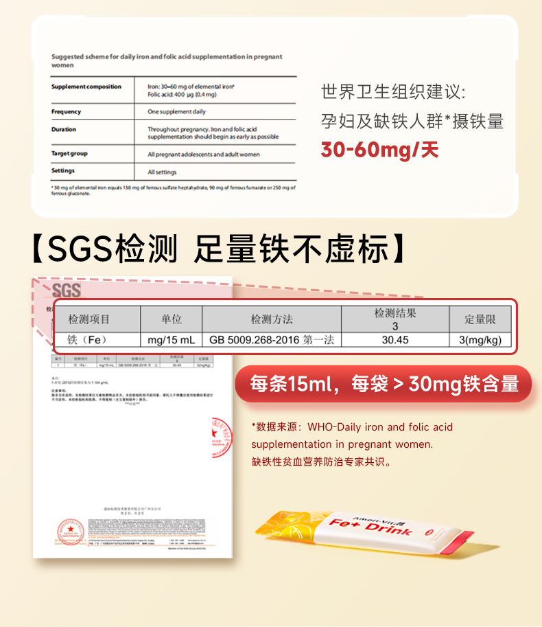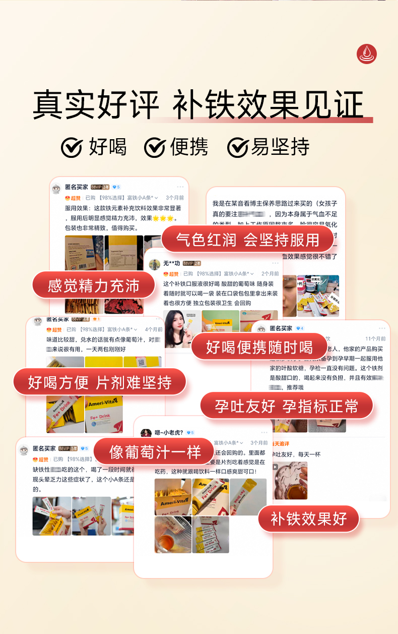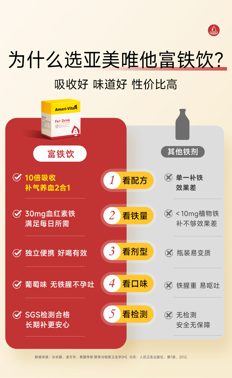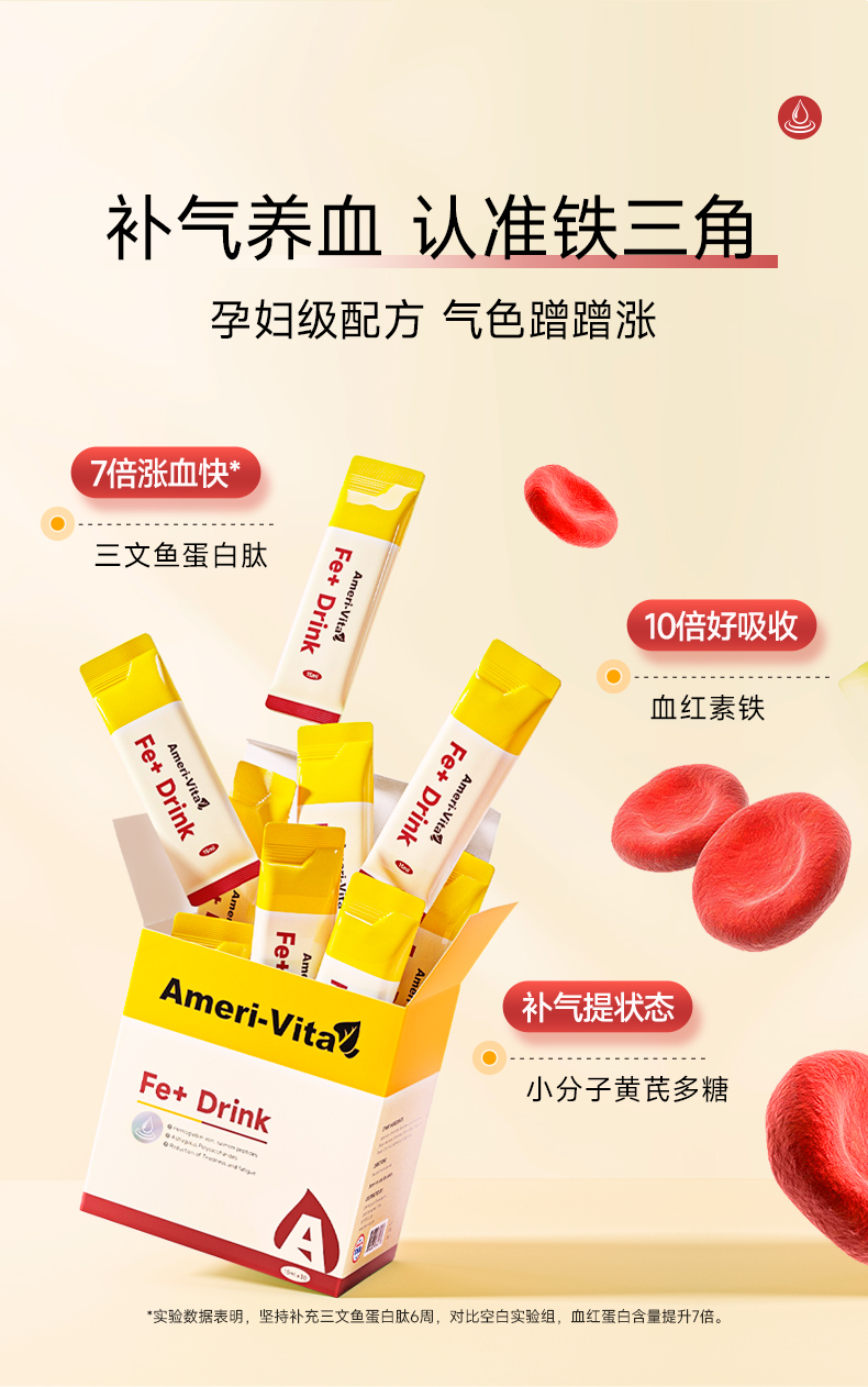 【买3送2】[AMeri vita]亚美唯他 富铁口服液 30条/盒 孕妇贫血女性经期便携铁剂铁元素口服液富铁小A条(效期至2026-09-12)