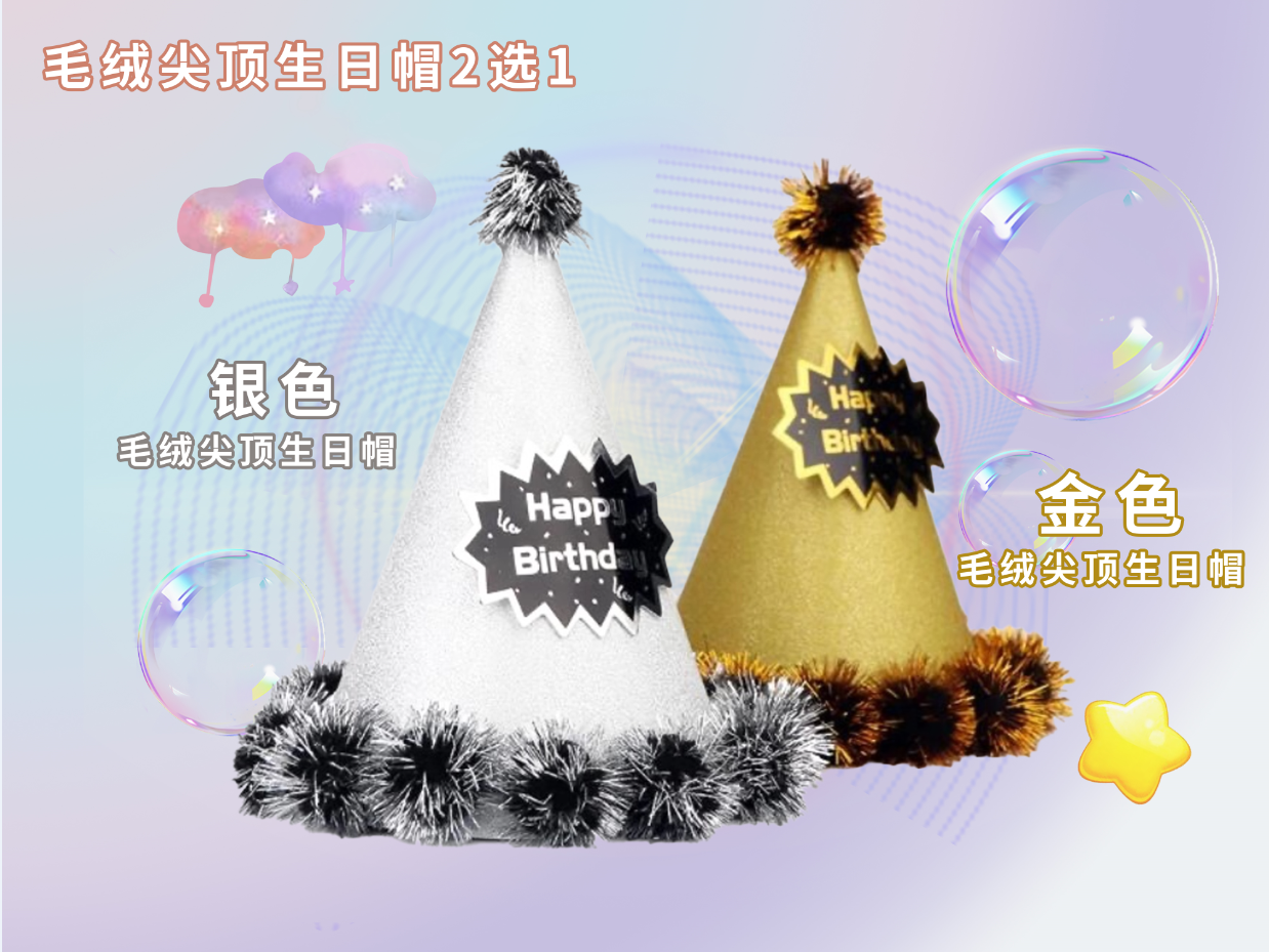 生日毛绒尖顶帽2选1