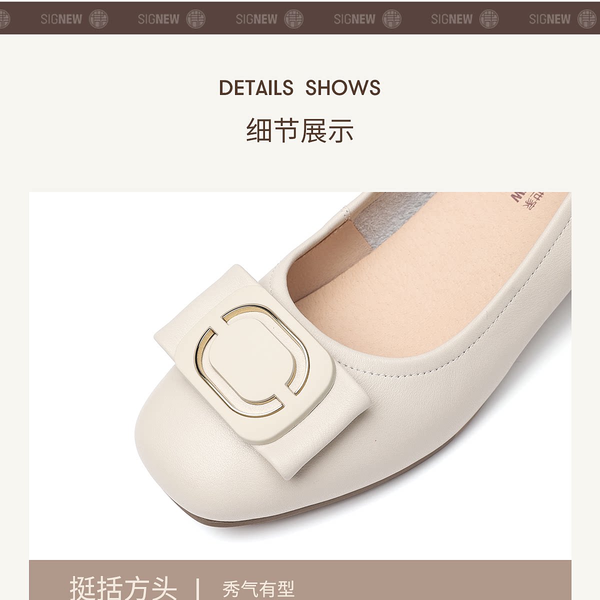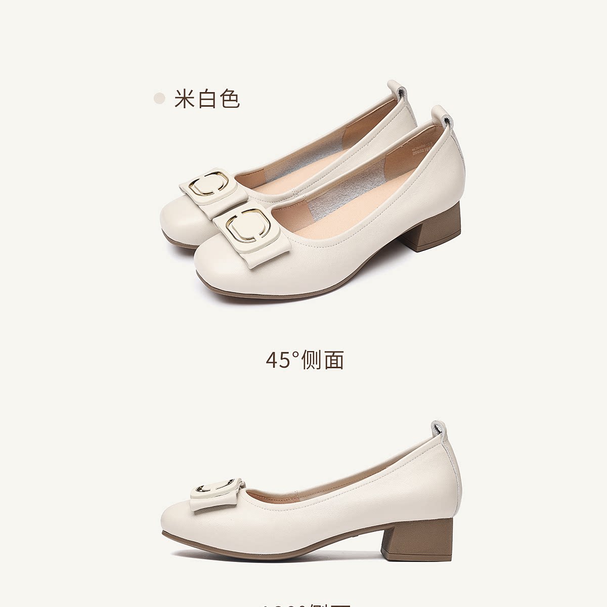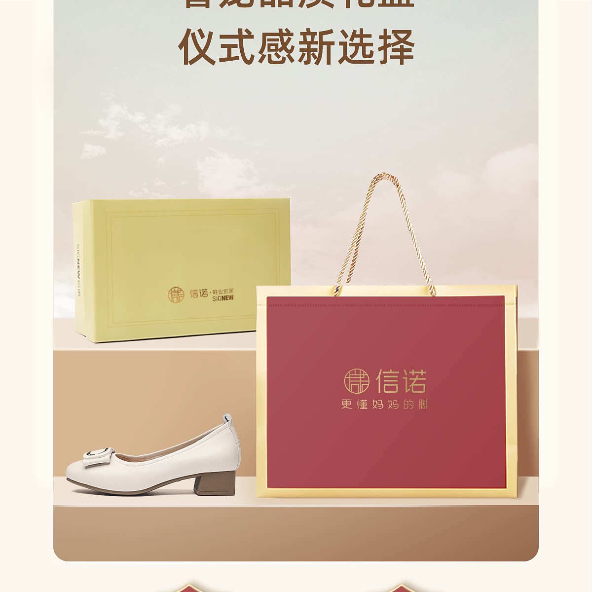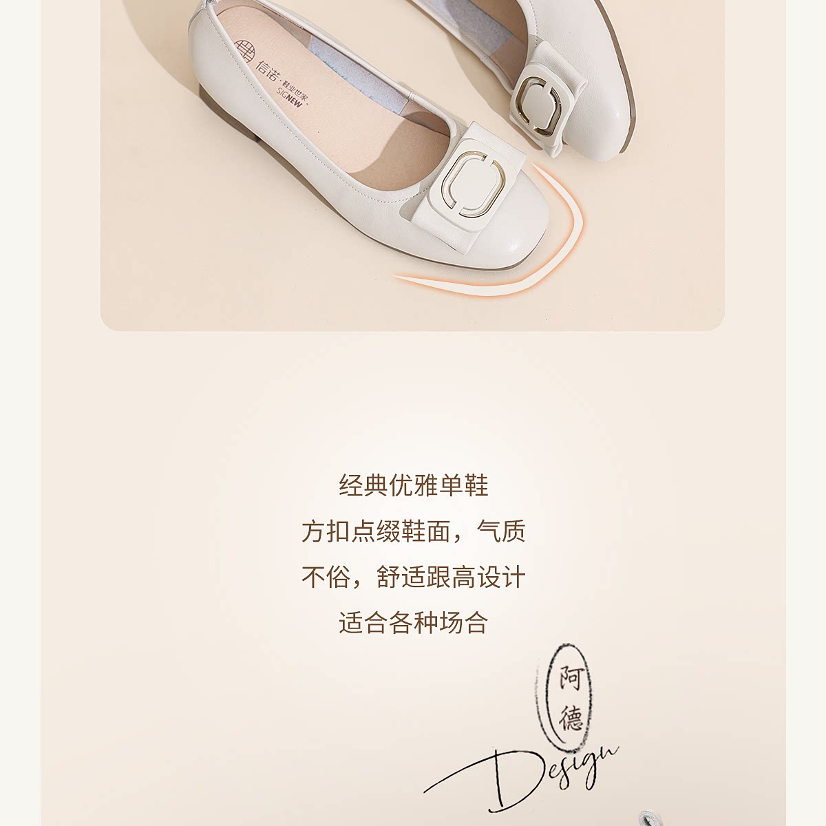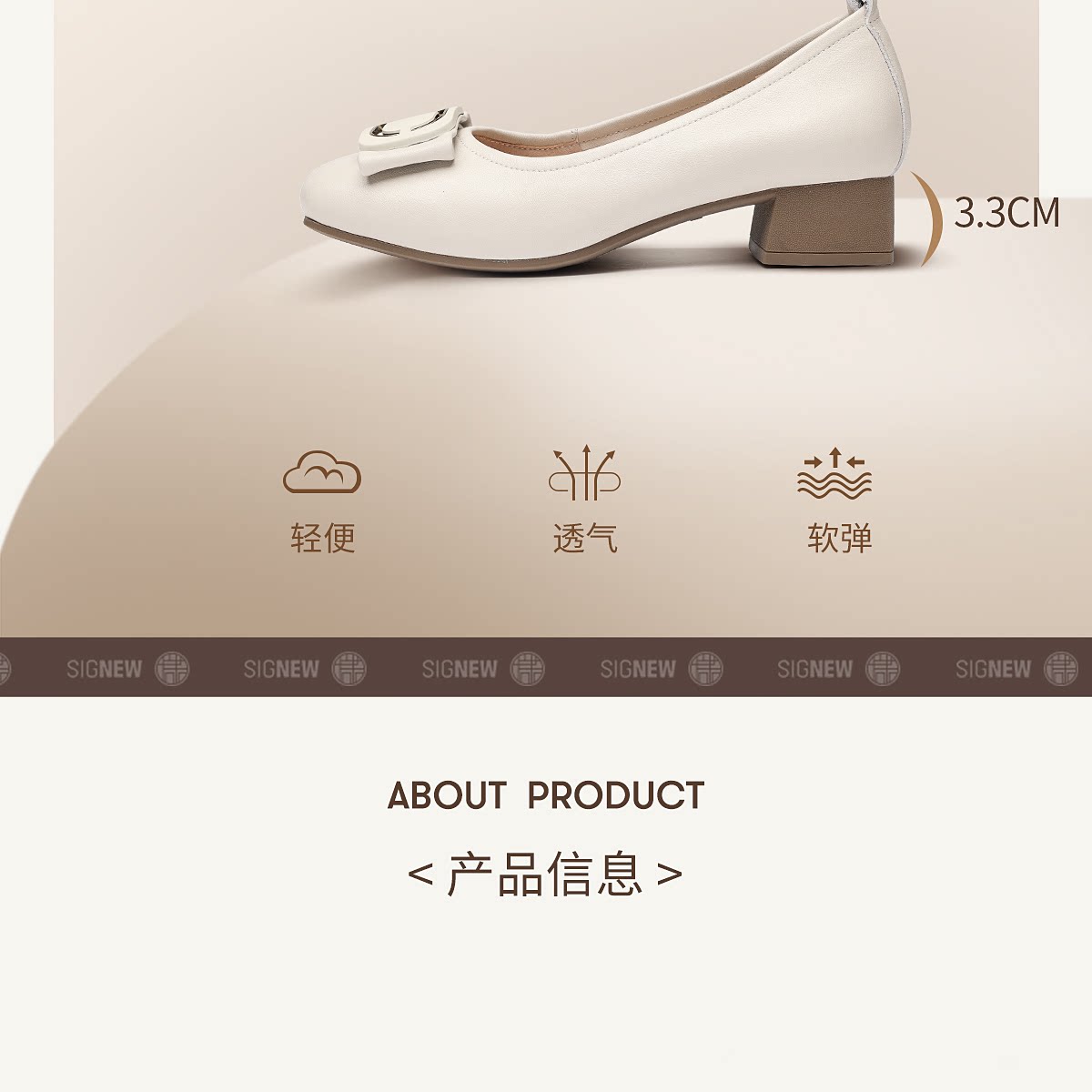 信诺女士单鞋真皮软底2026春秋新款粗跟舒适不累脚轻便透气妈妈鞋6C5009-53