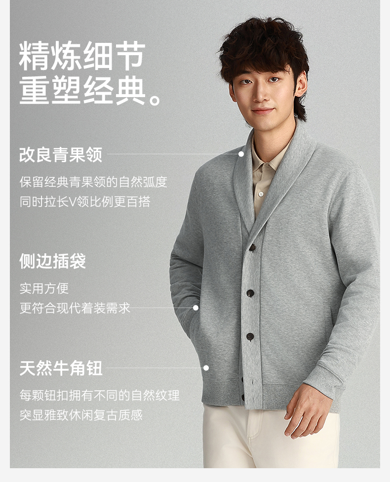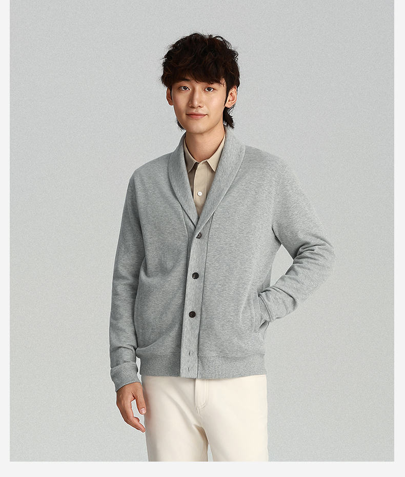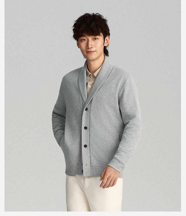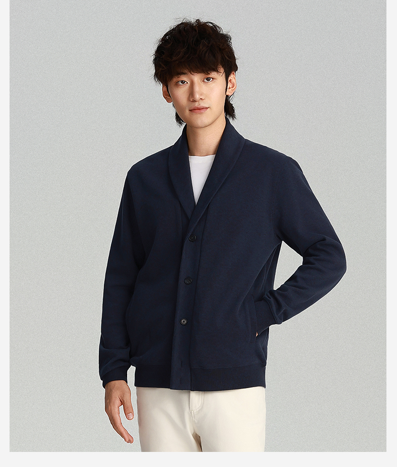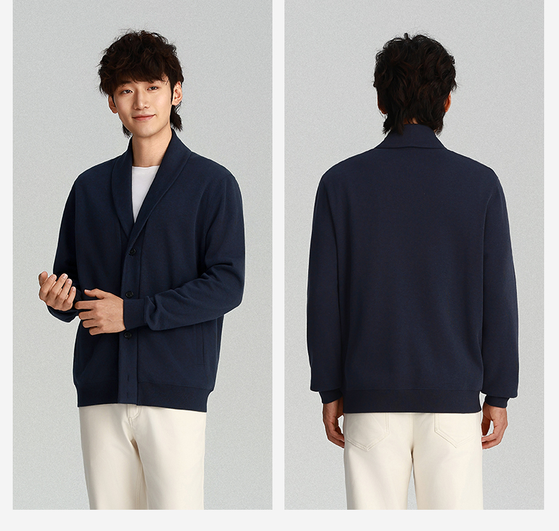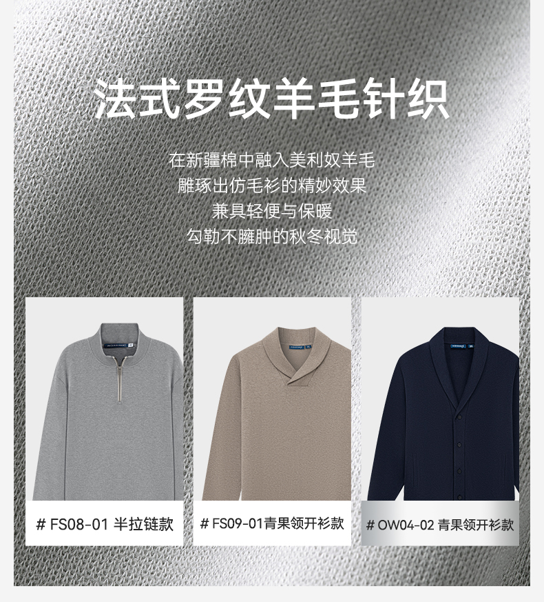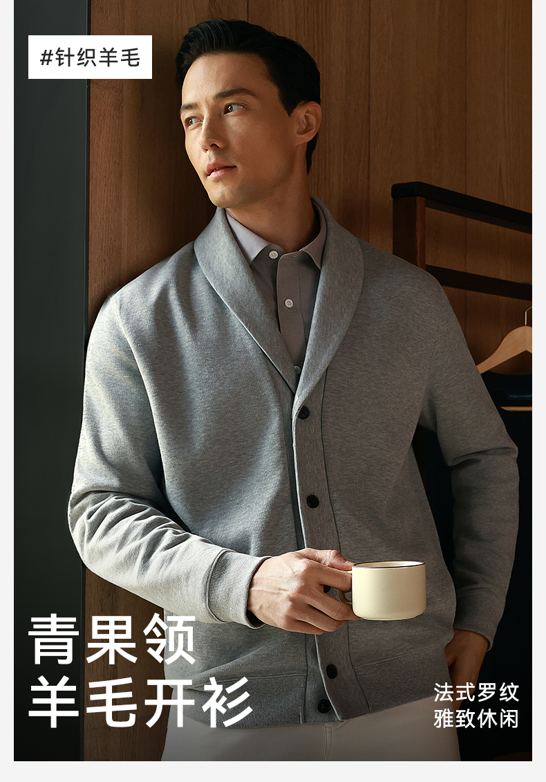 针织青果领法式罗纹羊毛开衫外套-OW04-02