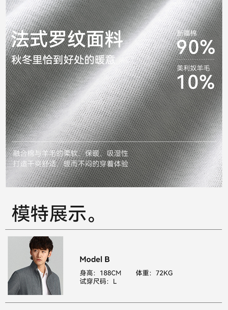 十如仕针织经编布液氨丝光弹力长袖夹克-OW05-03