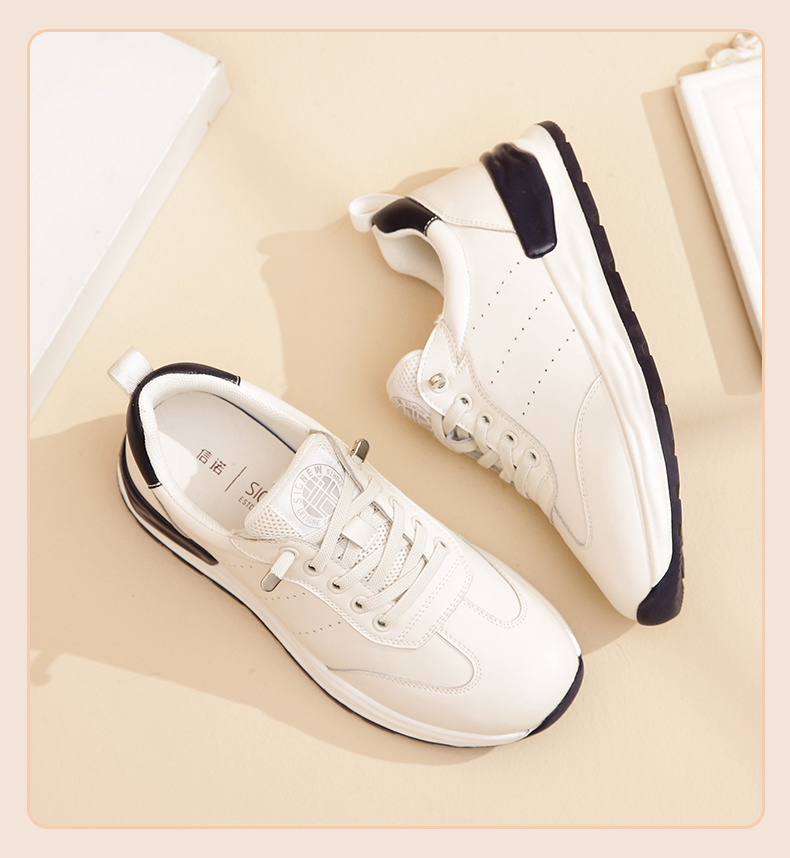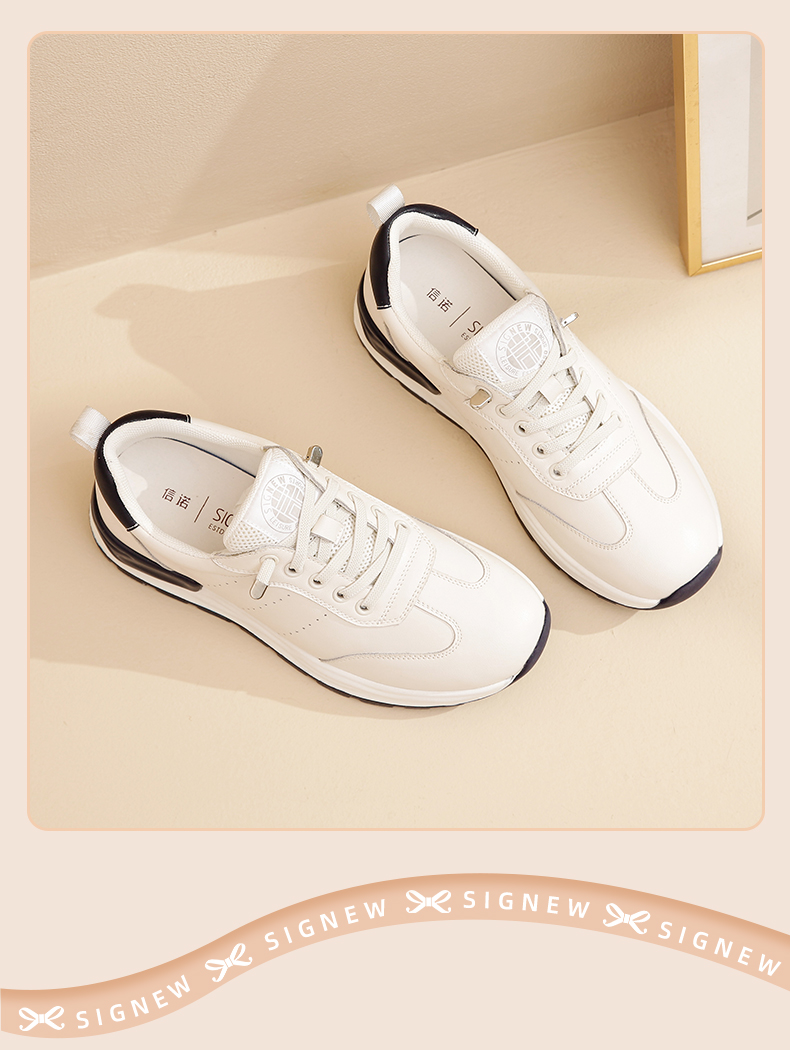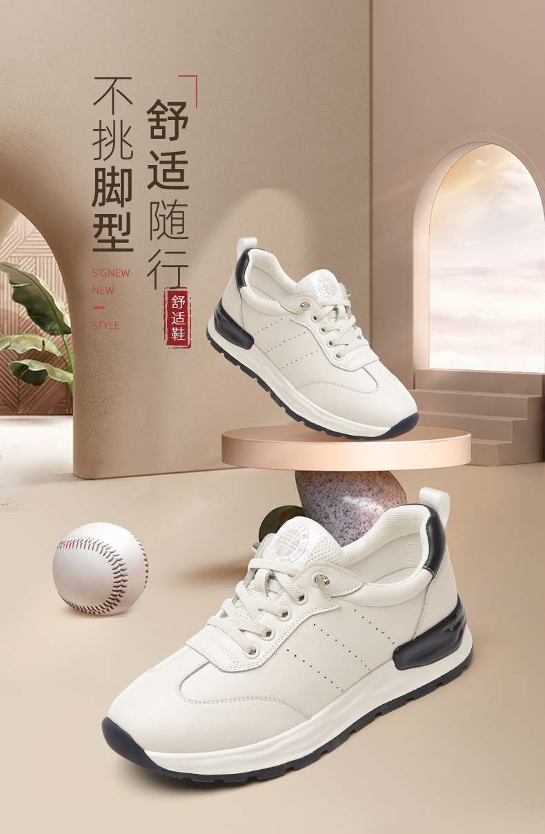 信诺 真皮舒适女鞋 小白鞋2022新款秋季妈妈鞋软底旅游休闲运动鞋22Q5693-1