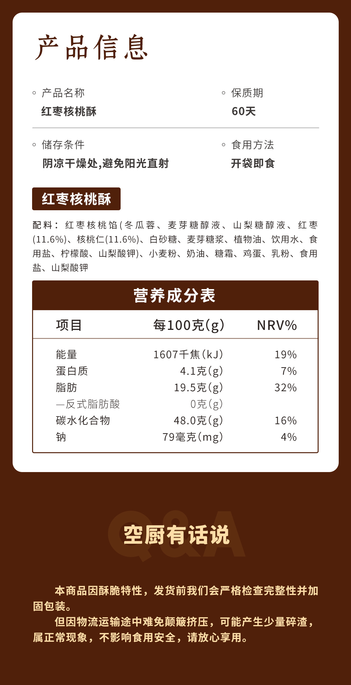厦航空厨红枣核桃酥礼盒糕点8枚装手工伴手礼奶香酥皮下午茶点心