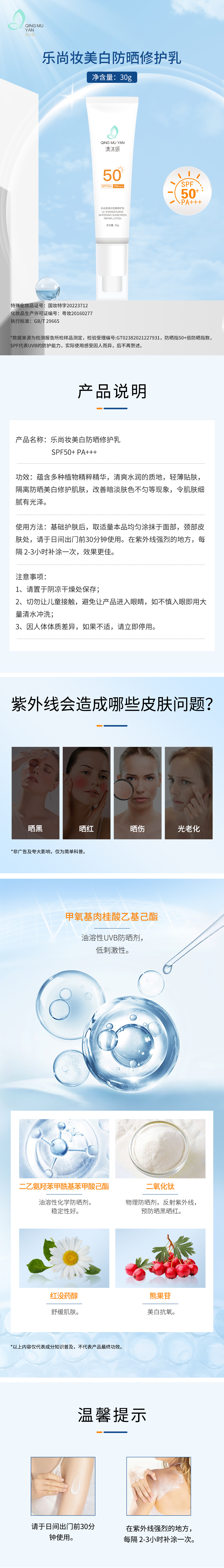清沐妍美白防晒修护乳2支装