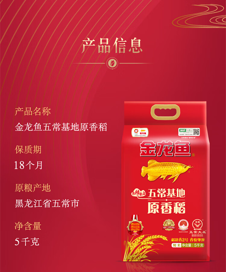 金龙鱼 五常大米 五常稻花香大米 东北大米 原香稻5kg