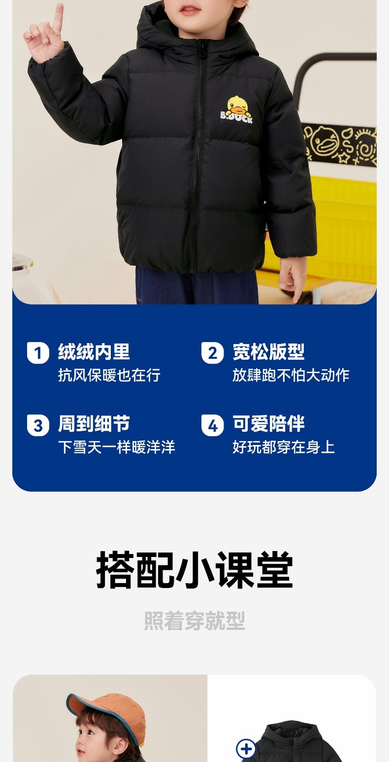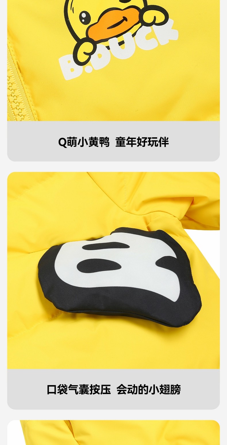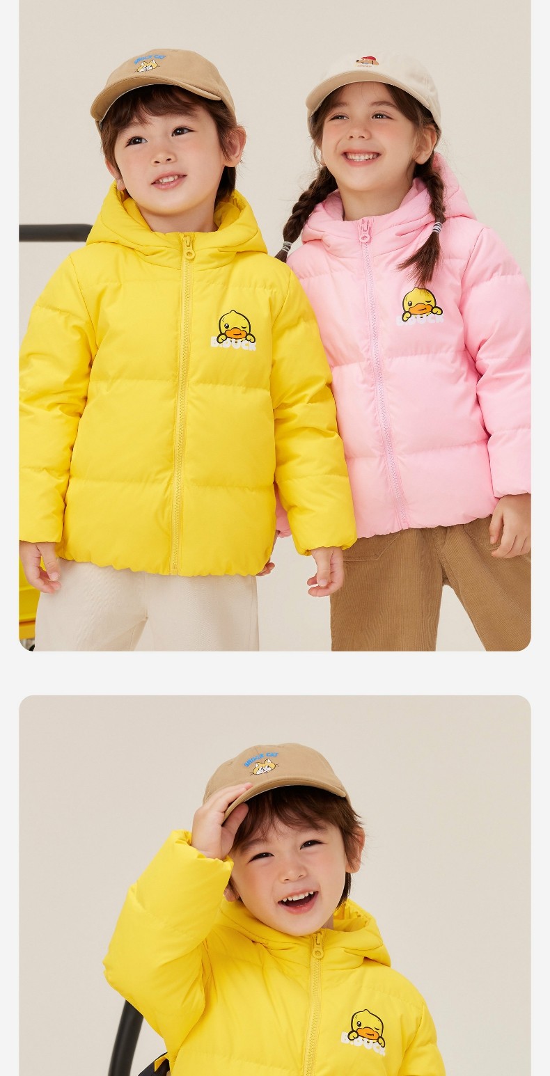 bduck小黄鸭童装冬季男女童羽绒服洋气外套连帽外套90-130 BF5516913