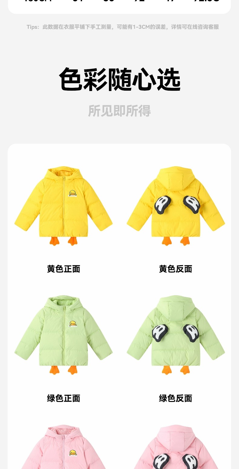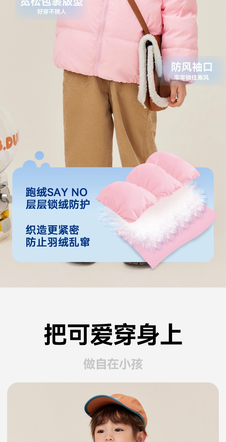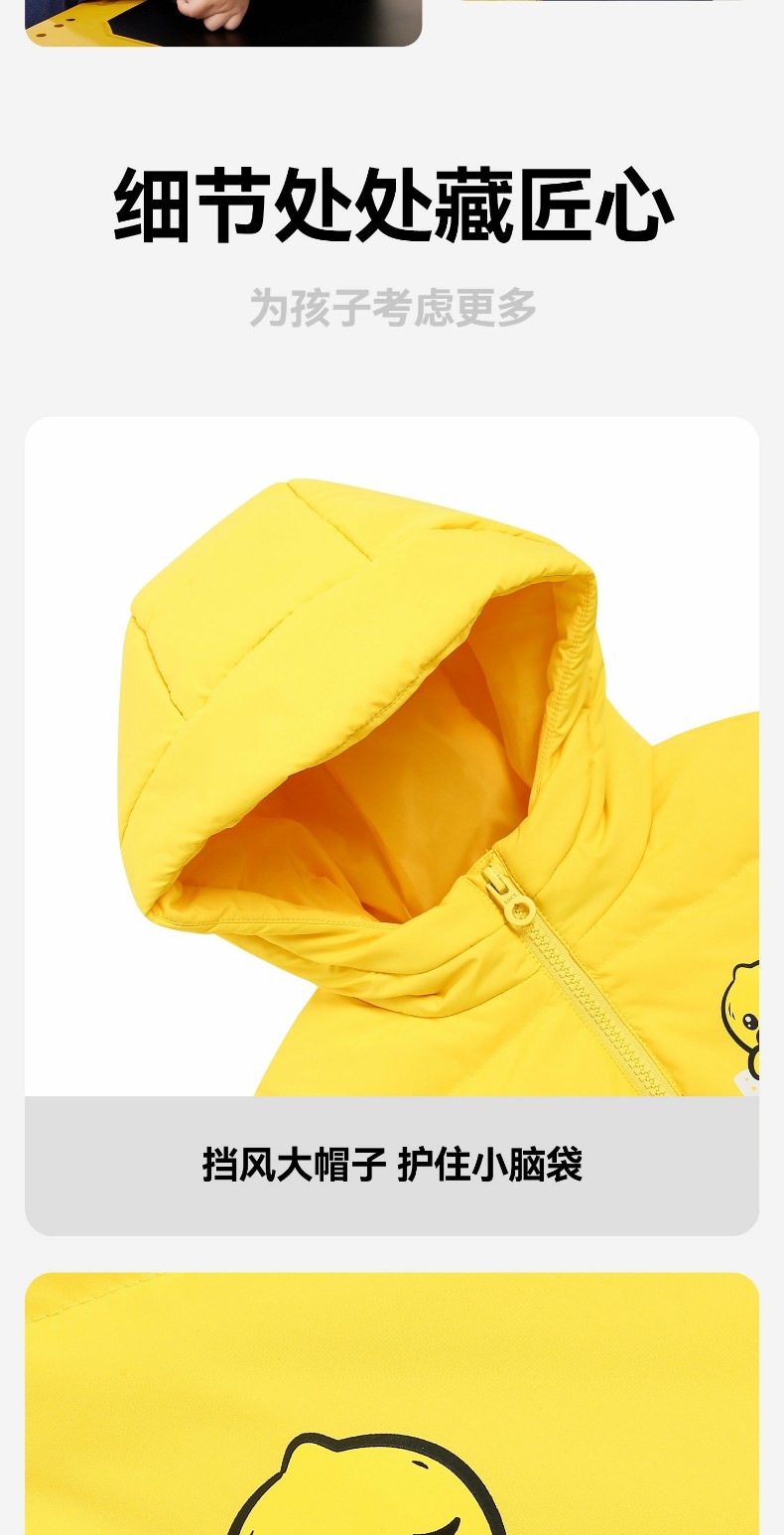 bduck小黄鸭童装冬季男女童羽绒服洋气外套连帽外套90-130 BF5516913
