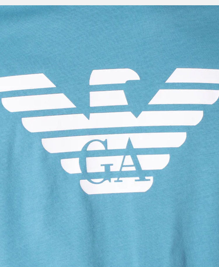 EMPORIO ARMANI 阿玛尼 男士棉质徽标印花圆领短袖T恤 浅蓝色 8N1TN5 1JPZZ 0783