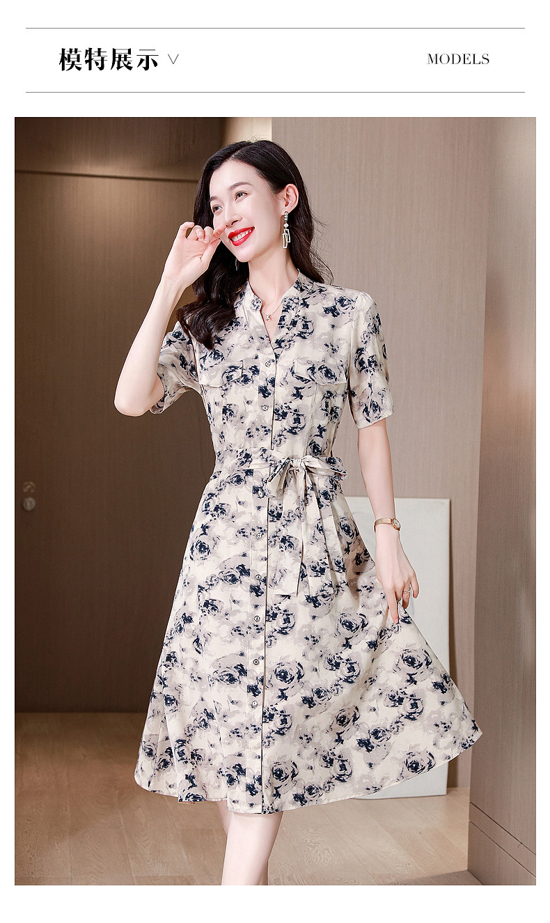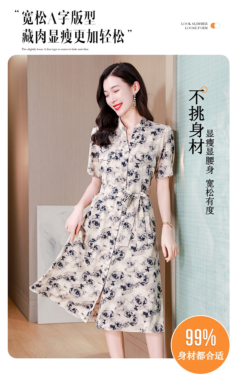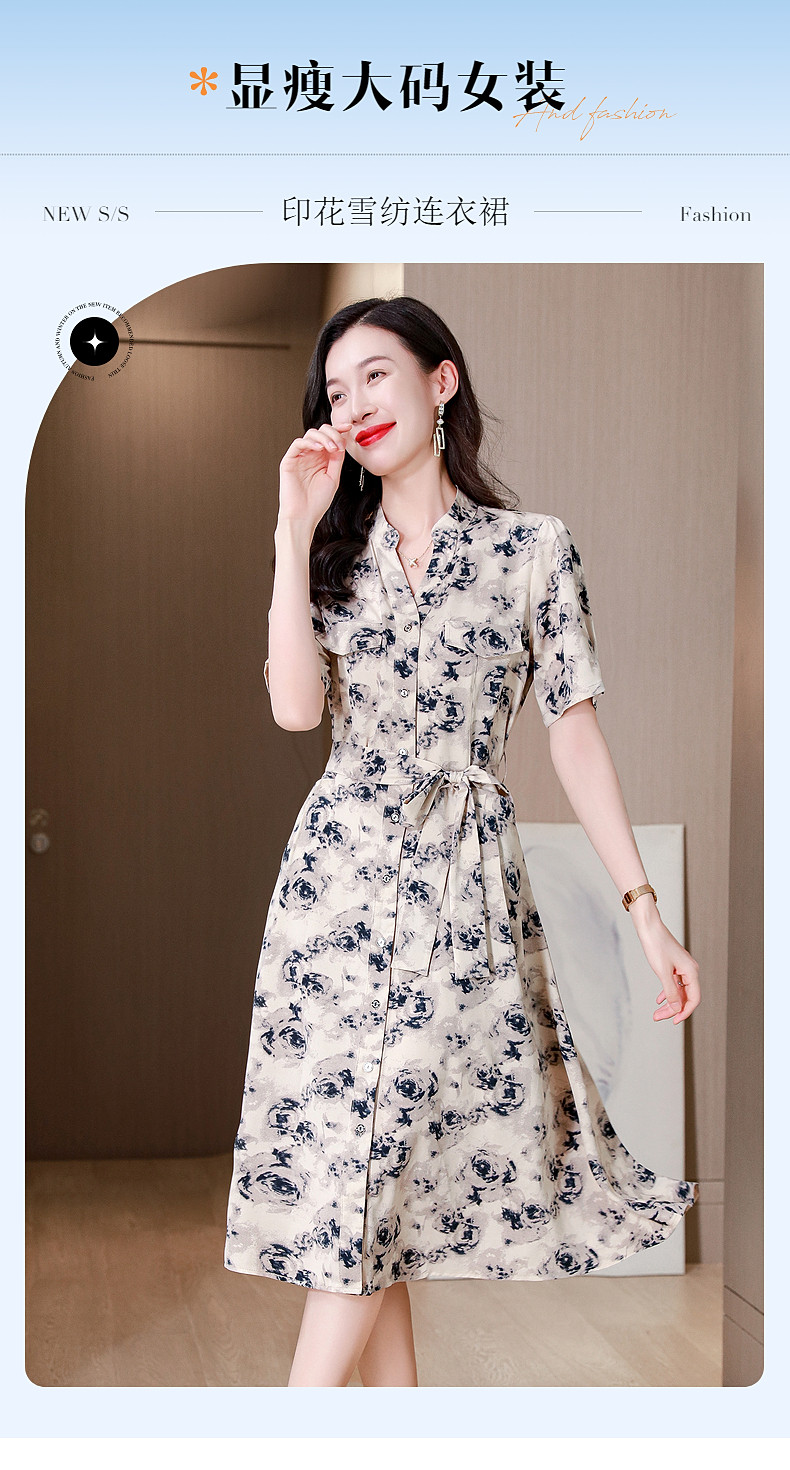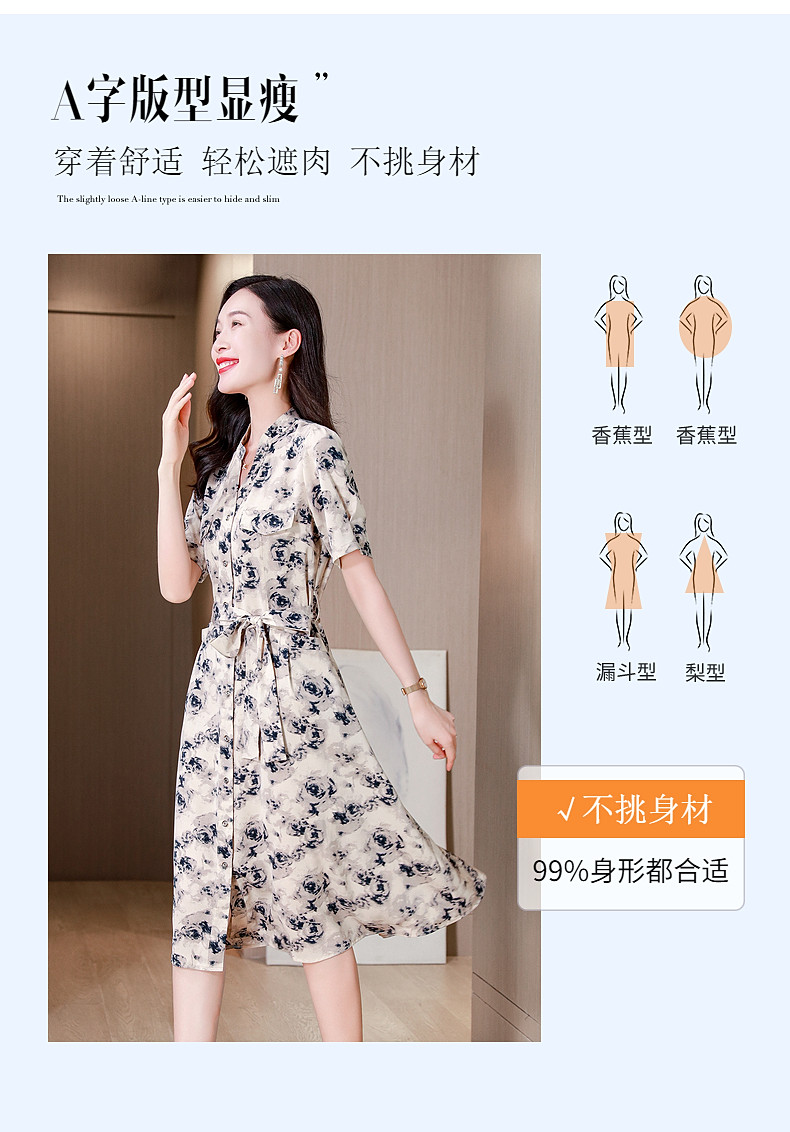 夏季雪纺连衣裙薄款冰丝2024新款宽松女士a字裙短袖收腰显瘦裙子