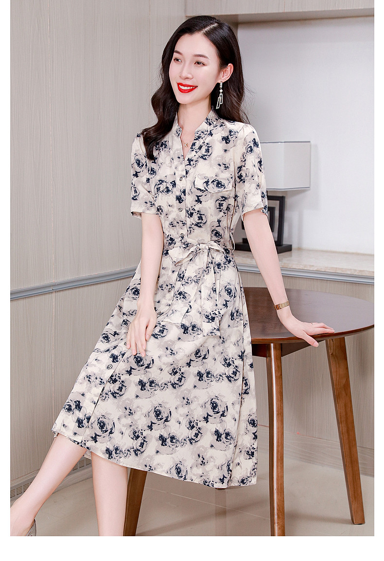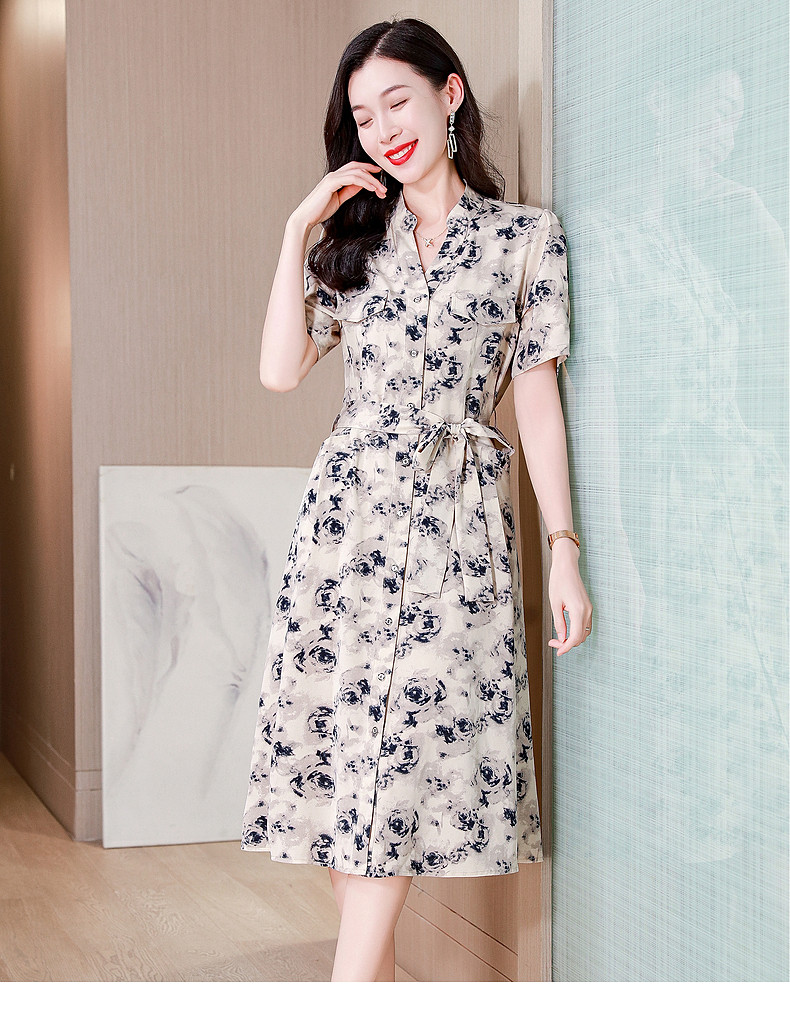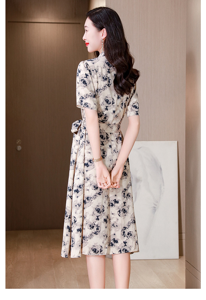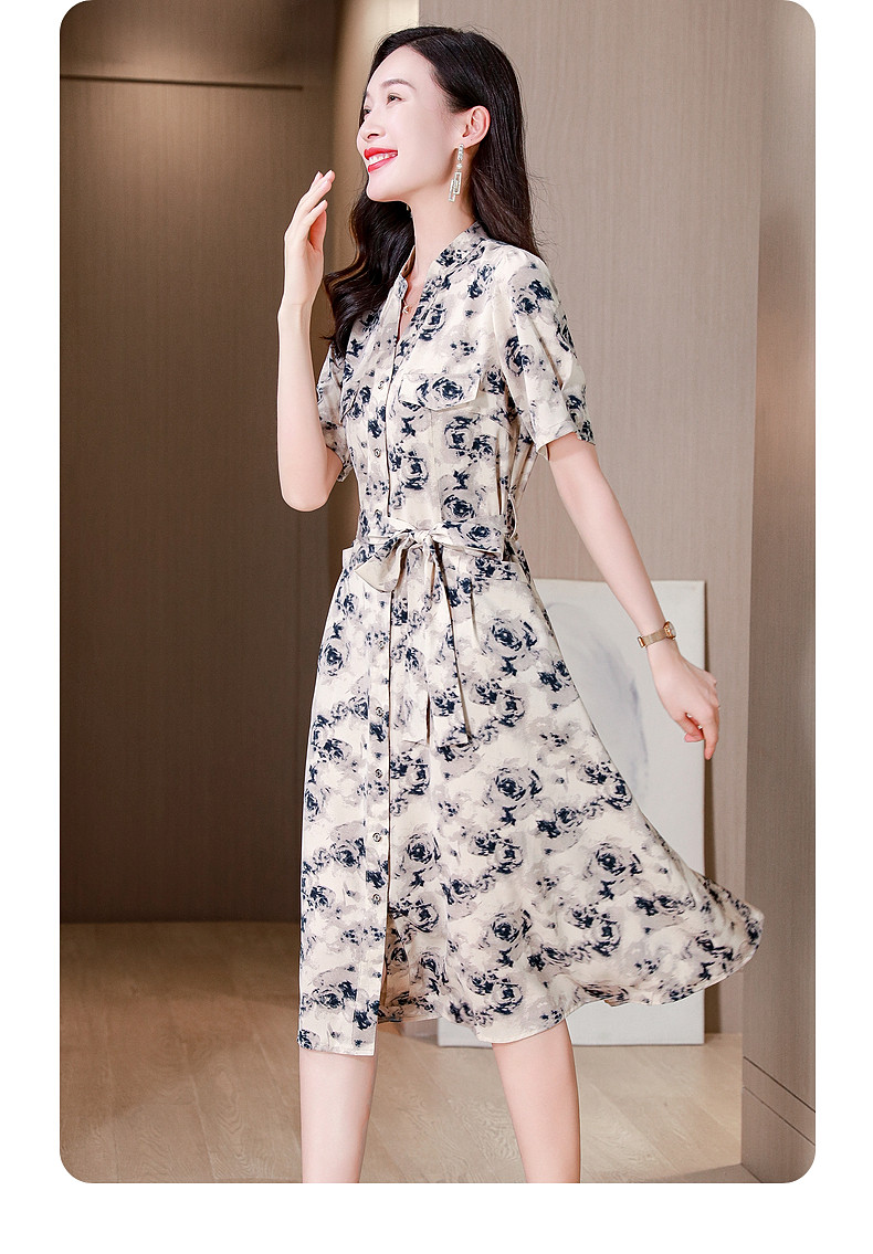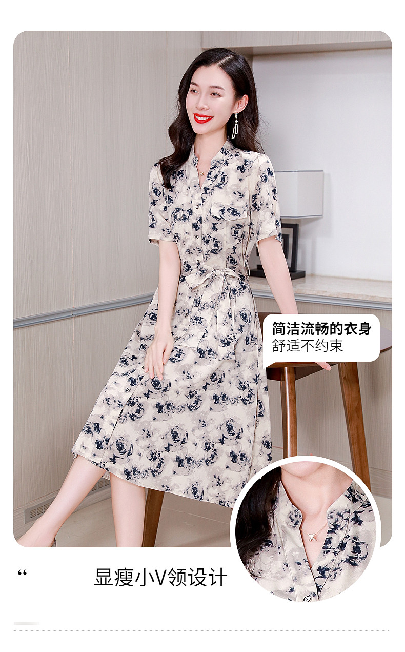 夏季雪纺连衣裙薄款冰丝2024新款宽松女士a字裙短袖收腰显瘦裙子