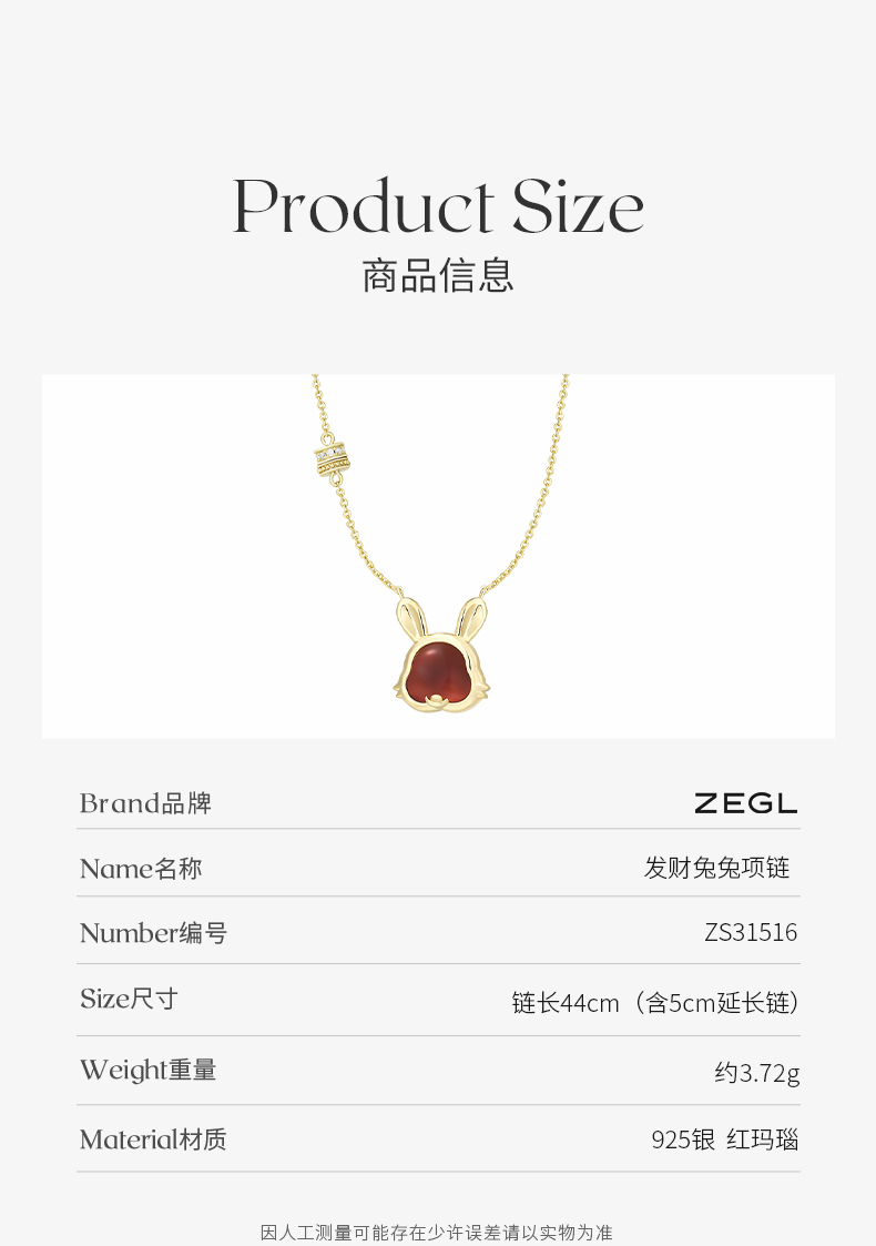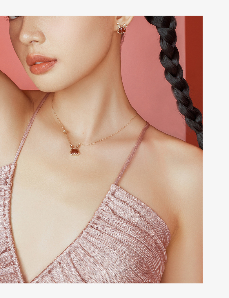 ZEGL设计师本命年系列发财兔红玛瑙项链女925纯银轻奢小众锁骨链