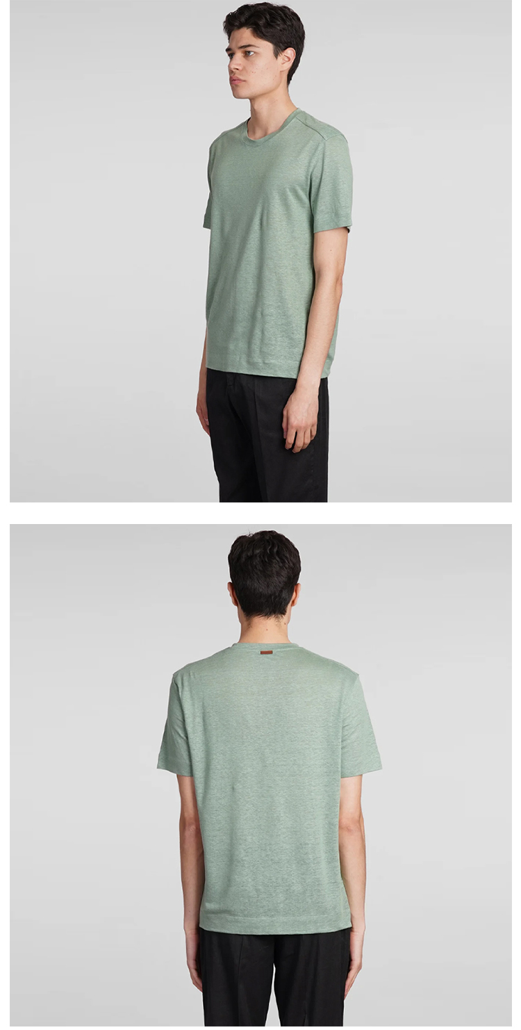 ZEGNA 杰尼亚 男士亚麻圆领短袖T恤 绿色 UD376A7 D783 V04