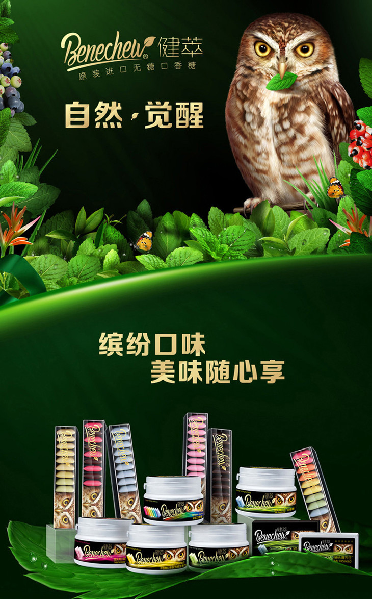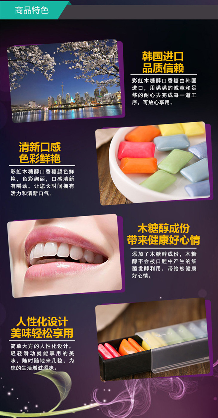 韩国猫头鹰先生口香糖健萃灵感彩虹木糖醇进口强薄荷瓜拉纳清凉糖