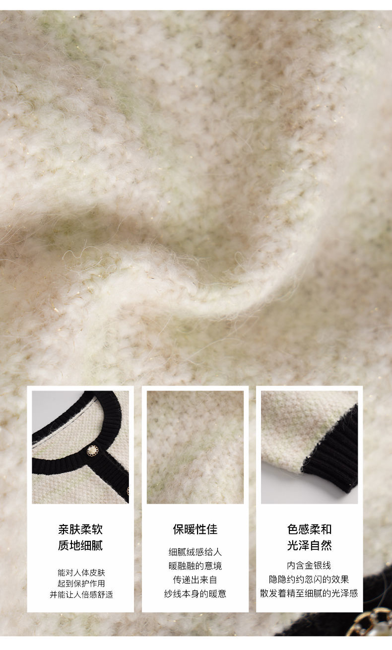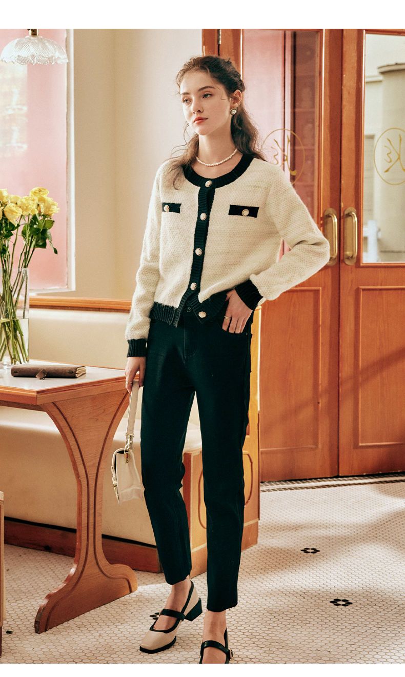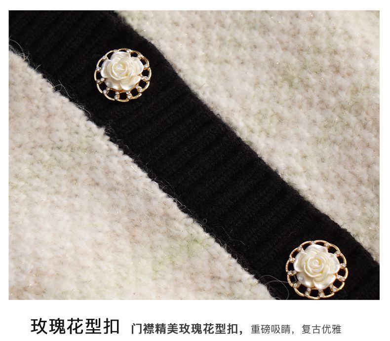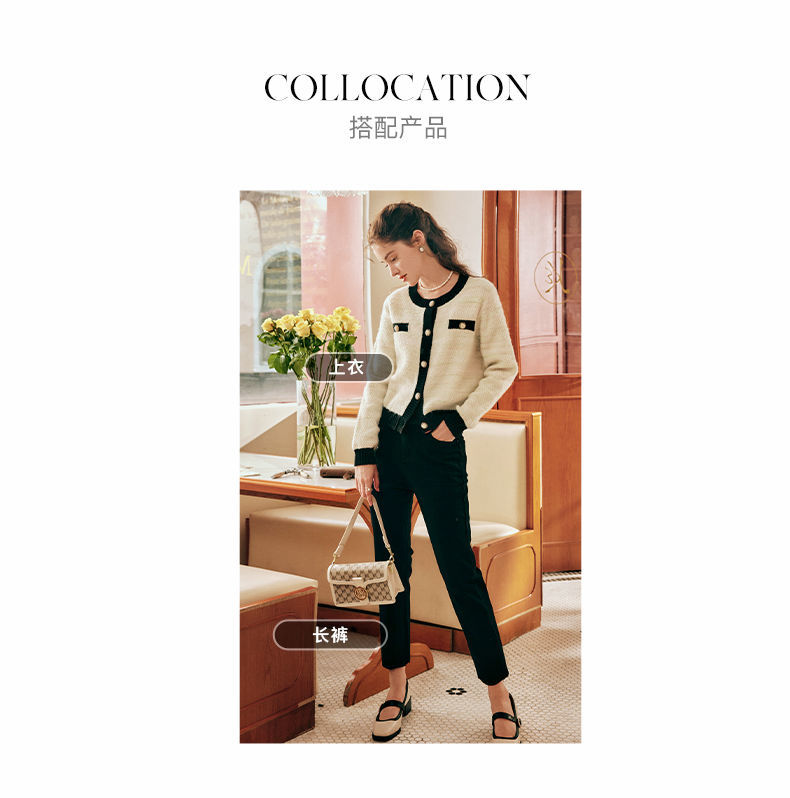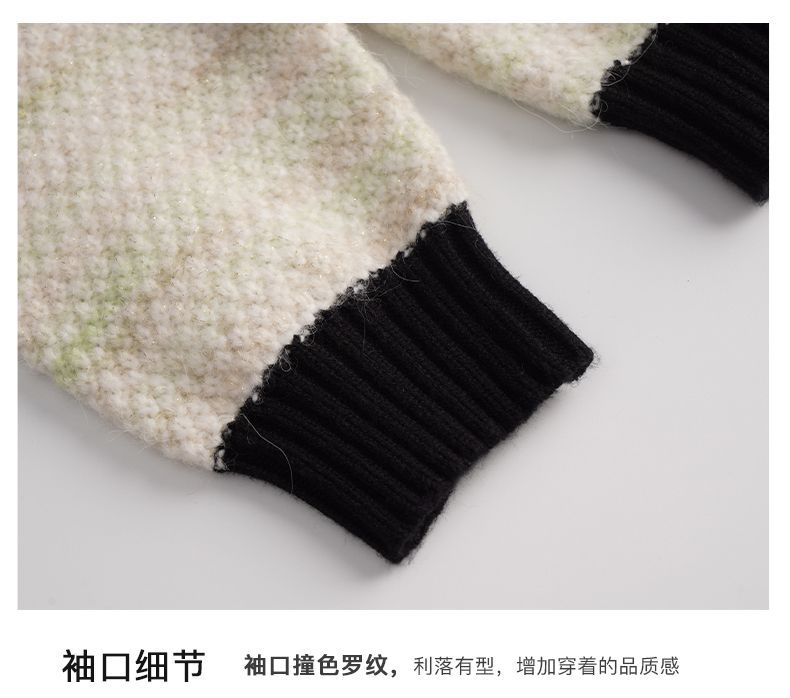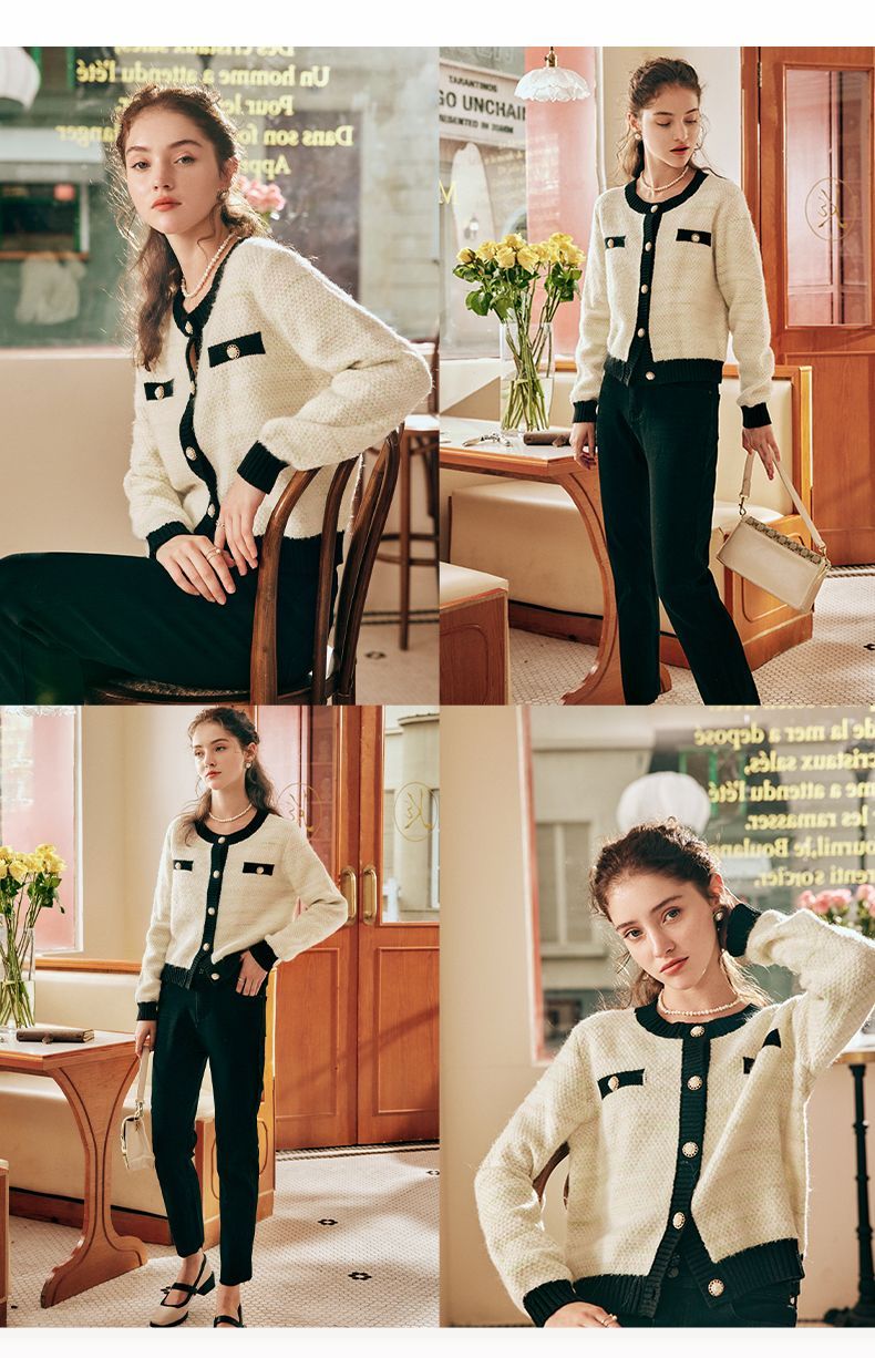 OLrain欧芮儿法式小香风毛衣外套女秋冬2022新款撞色圆领针织开衫