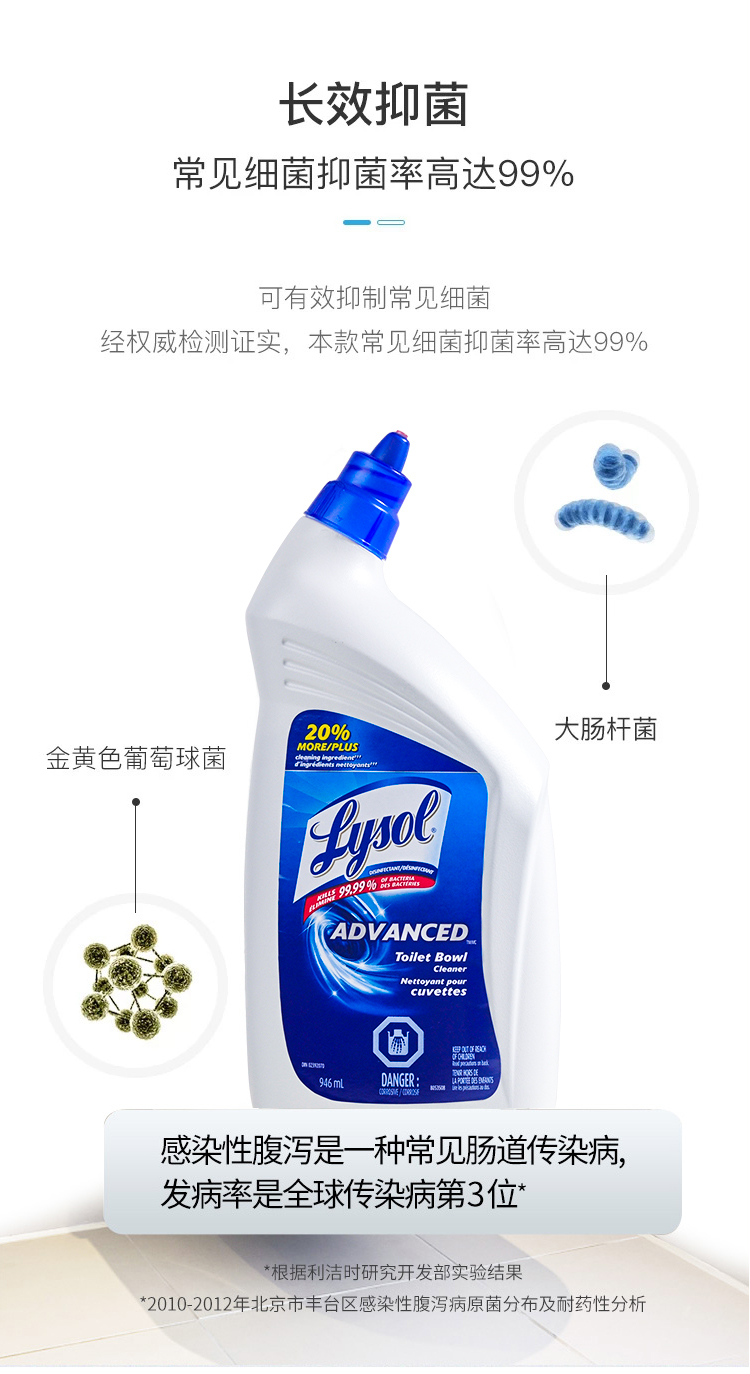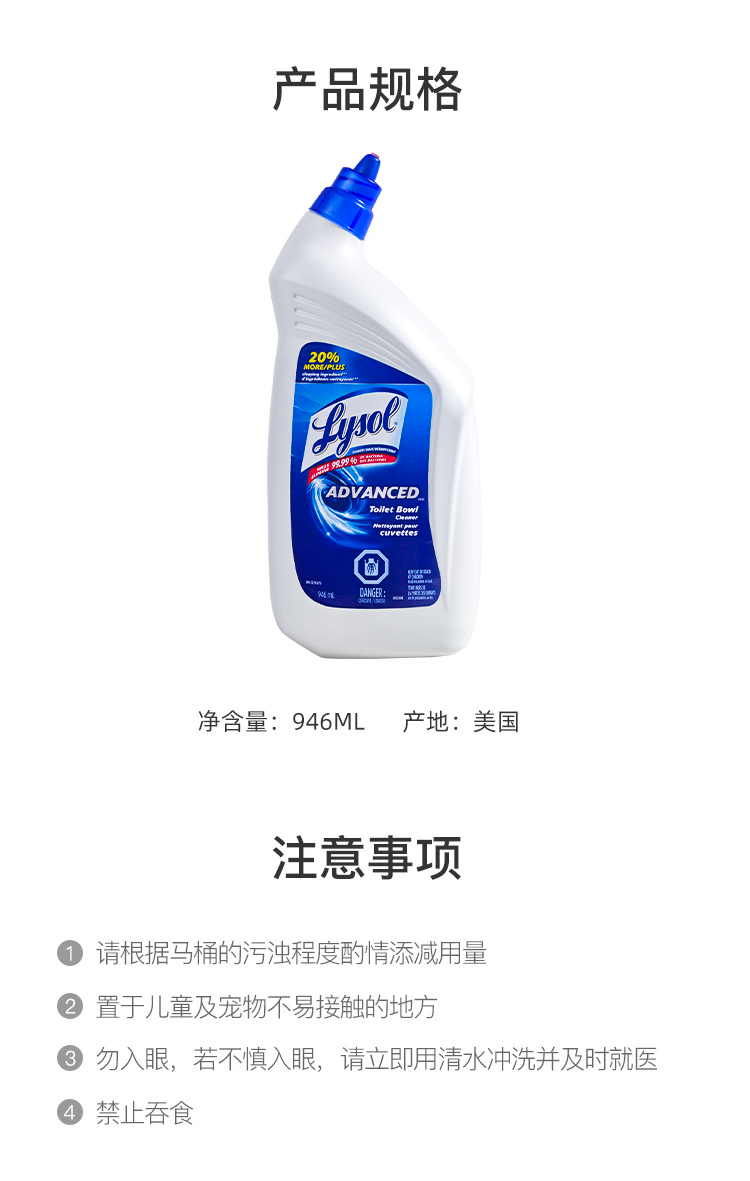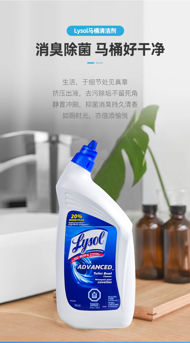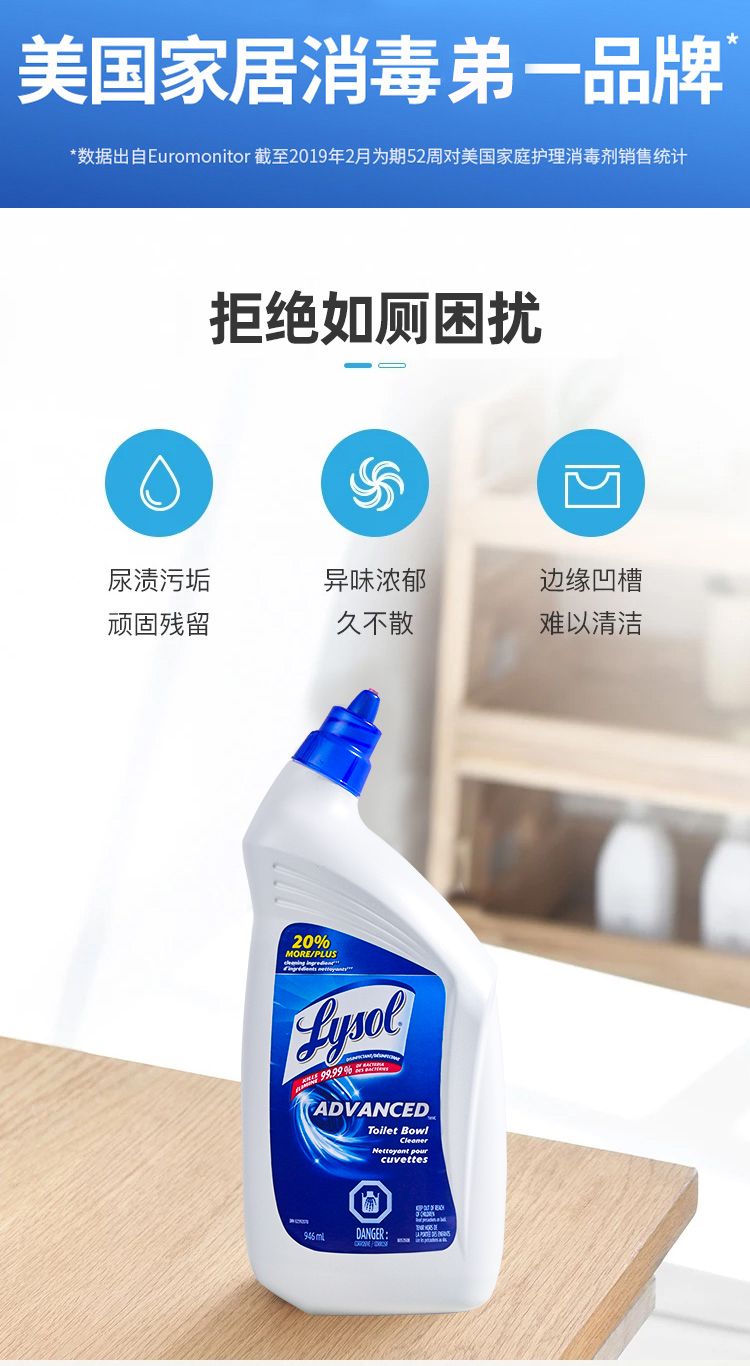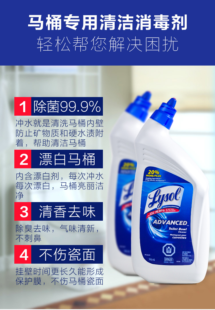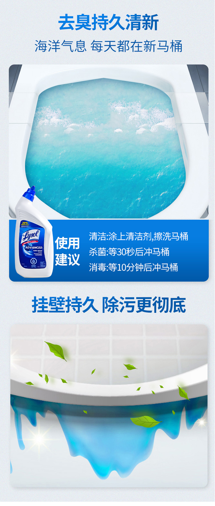Lysol马桶清洁消毒剂快速杀jun99.9%洁厕灵946ml #山东仓