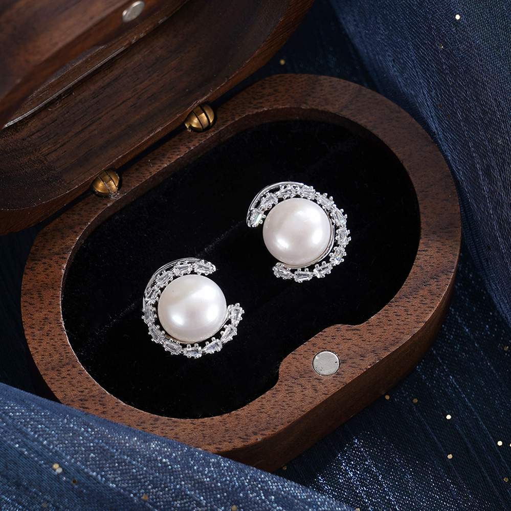 子佩集【浪漫弦月】银S925珍珠惜王妃耳钉【SPE0630004】10mm珠半环馒头珠2601
