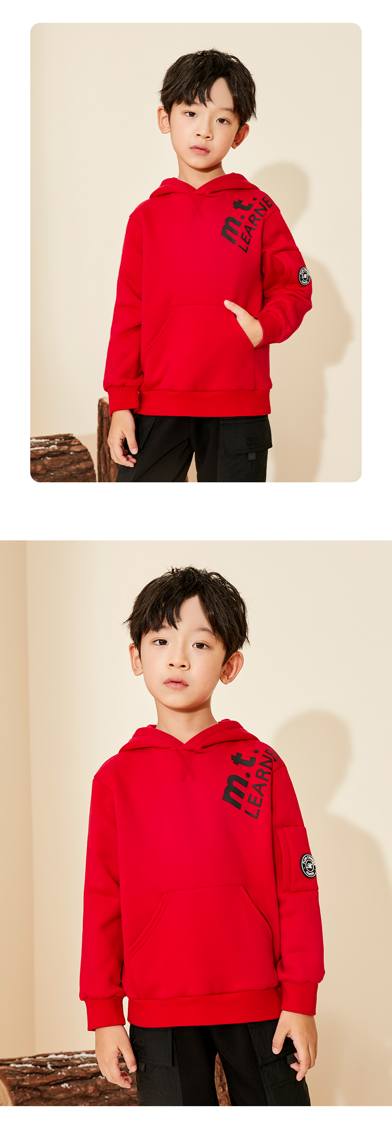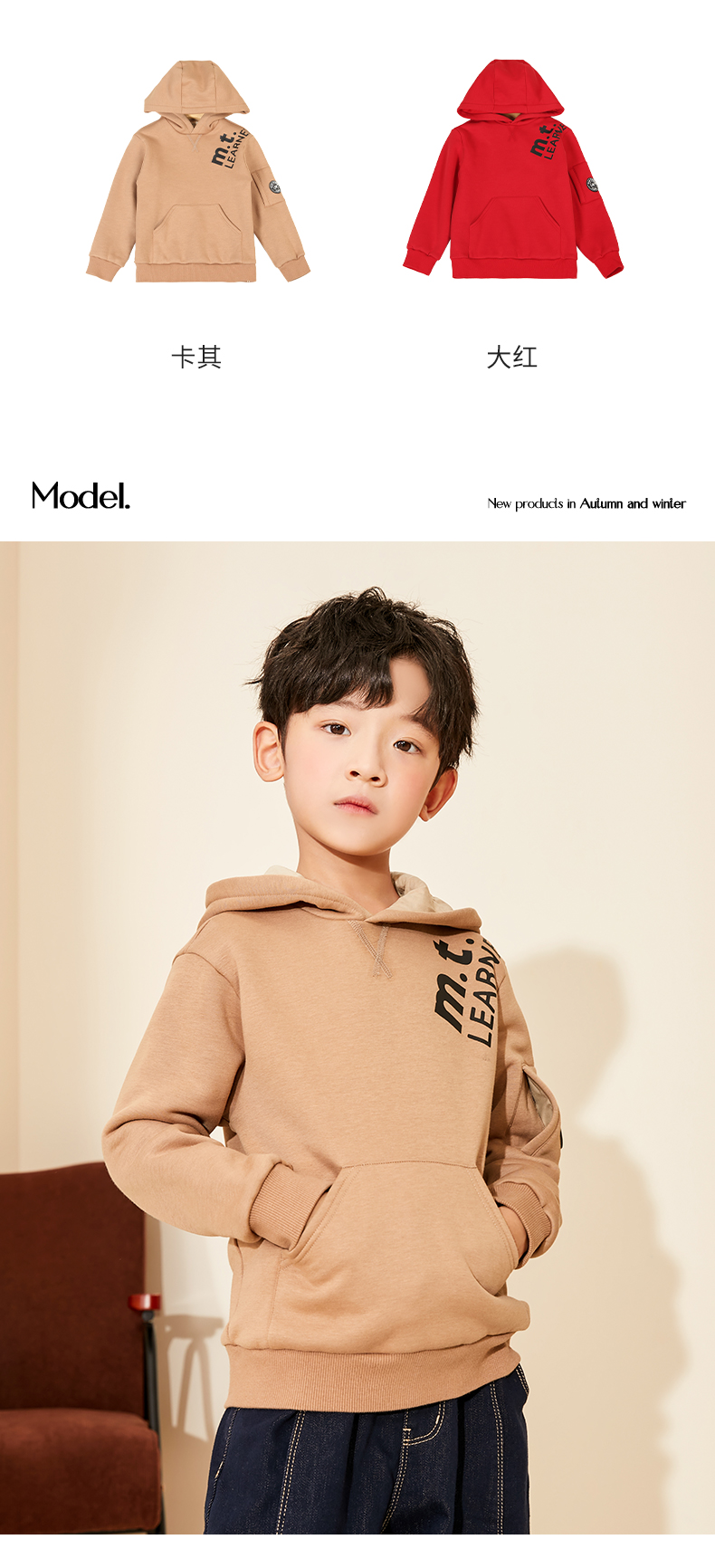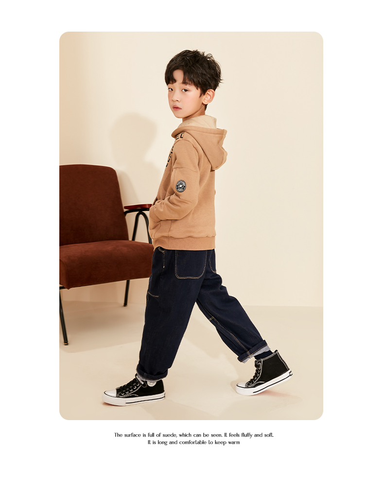【童装连帽加绒卫衣】秋冬新品男宝内里加绒保暖袋鼠袋外套