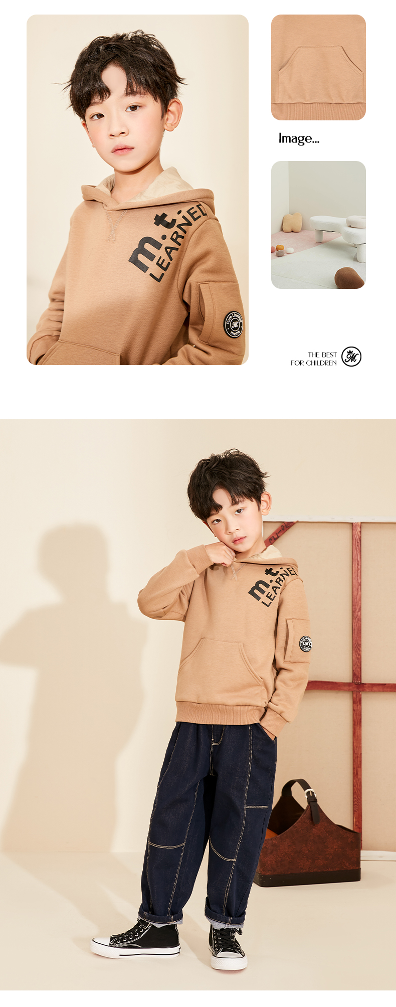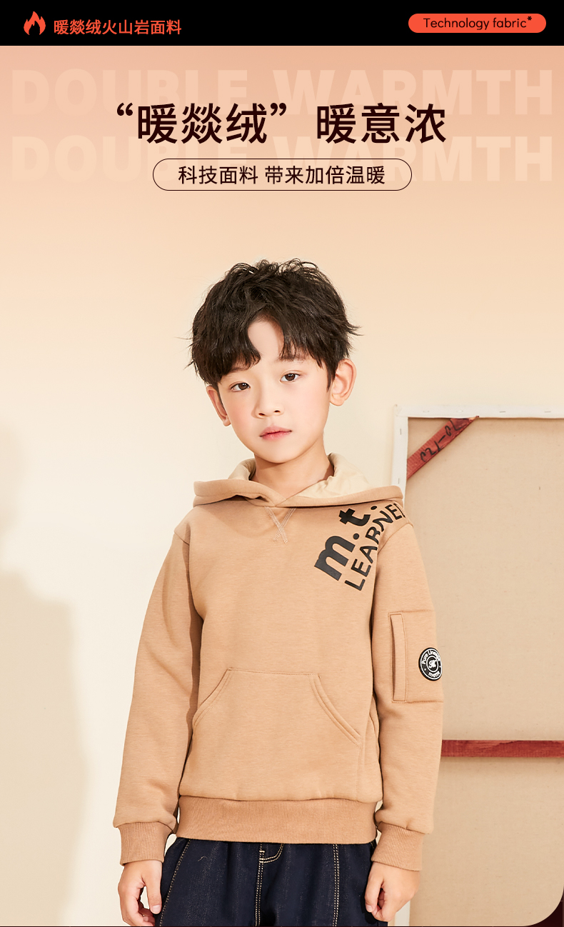 METTE童装男童连帽卫衣2020秋冬新品男宝加绒加厚套头保暖外套