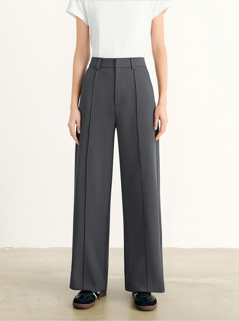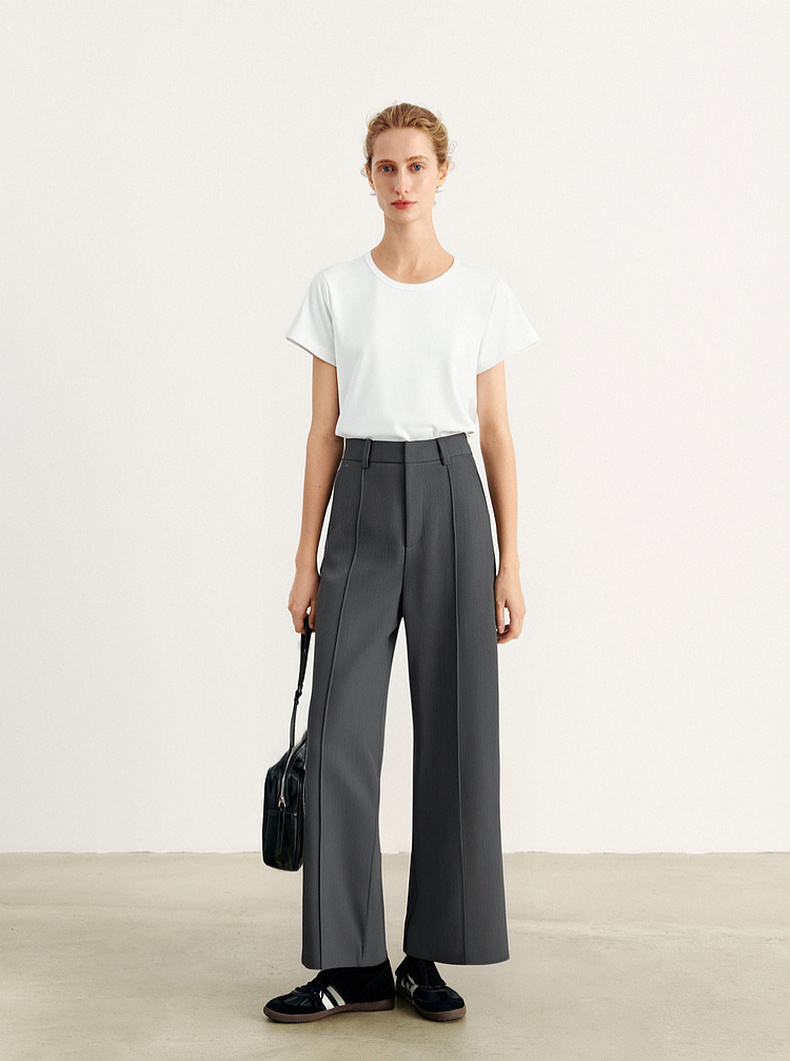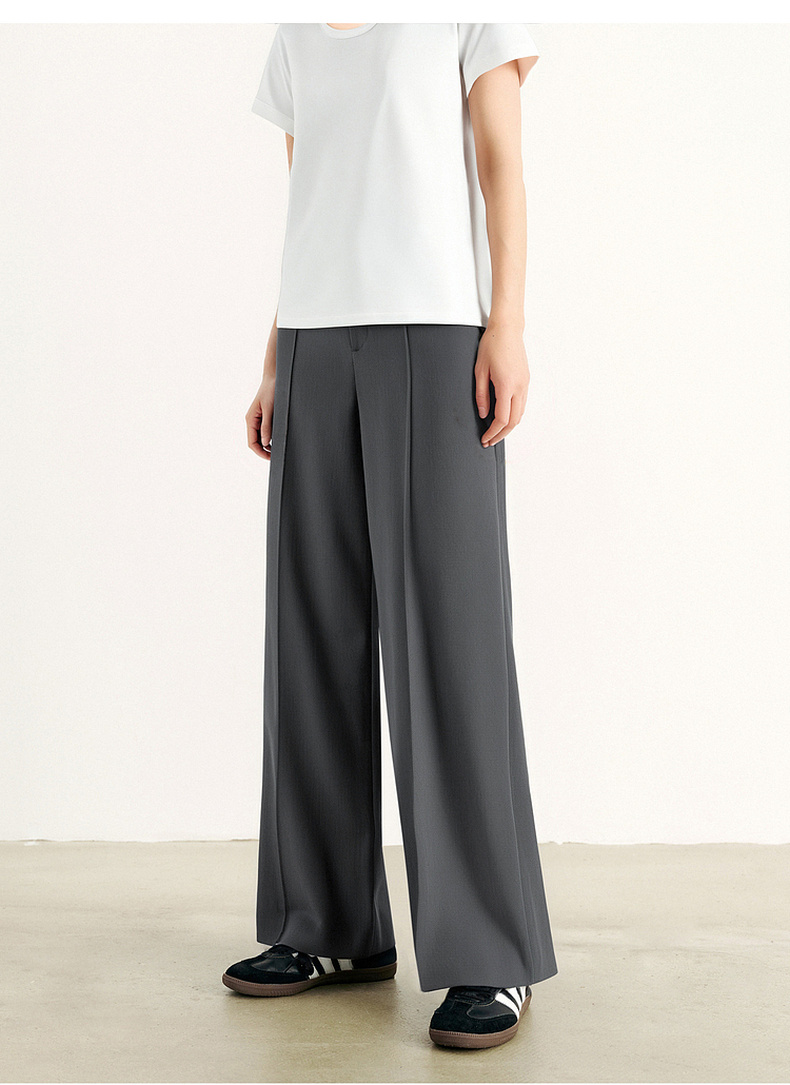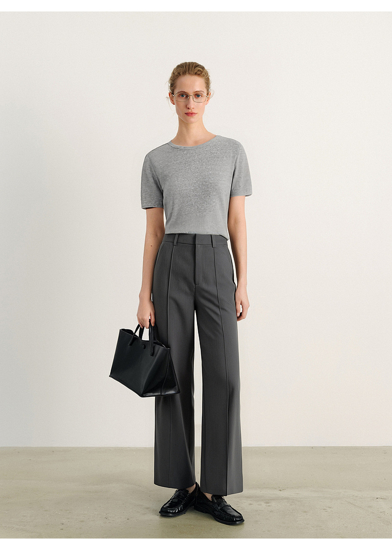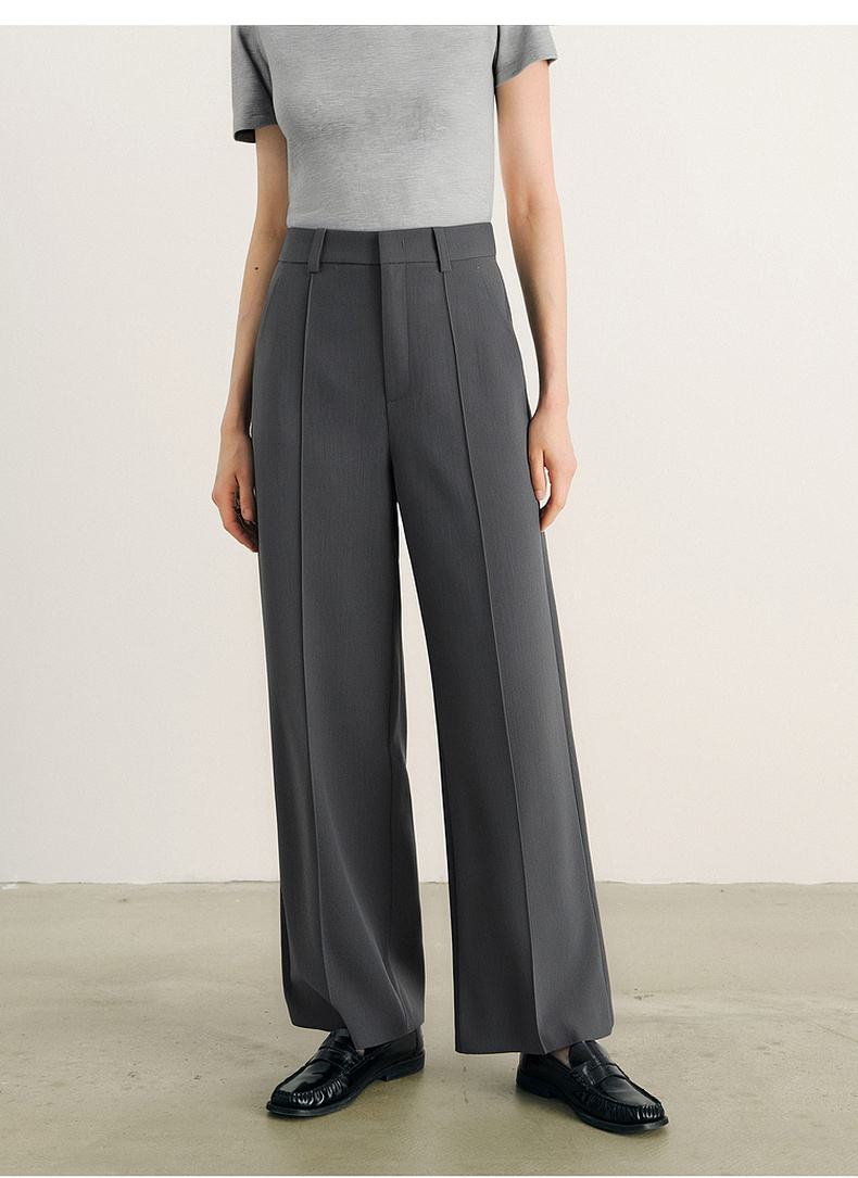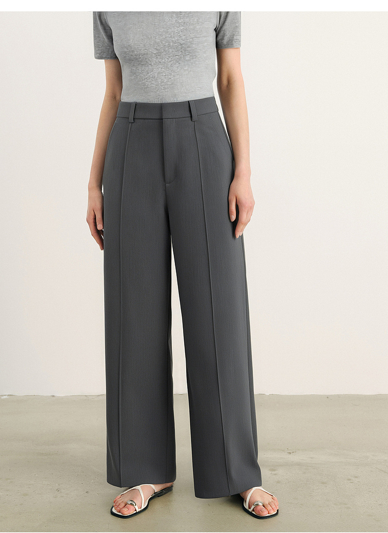 【积分换购不退货】【商场同款】诗凡黎灰色高腰直筒休闲裤2024夏新款长裤3F4350731