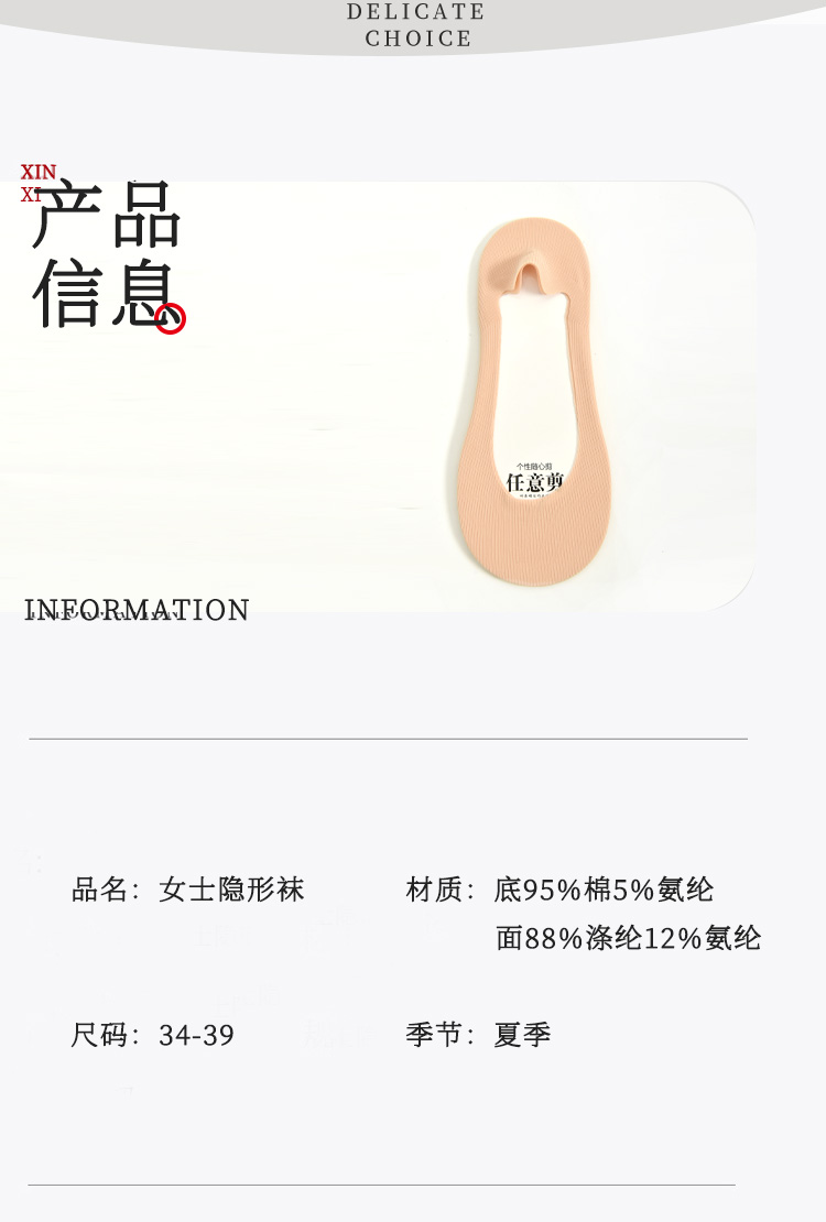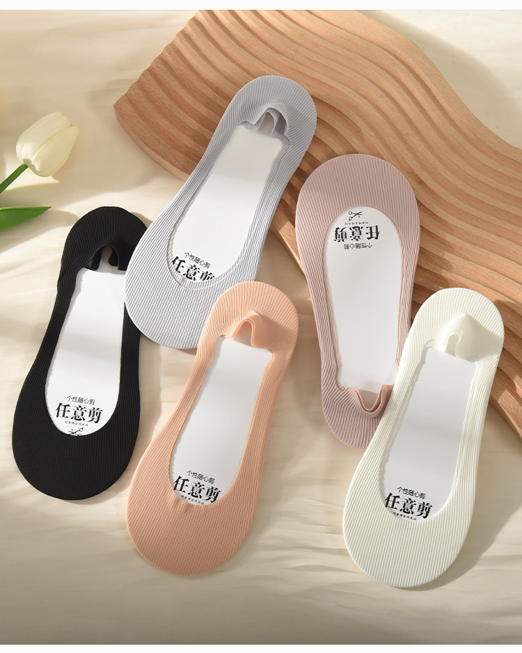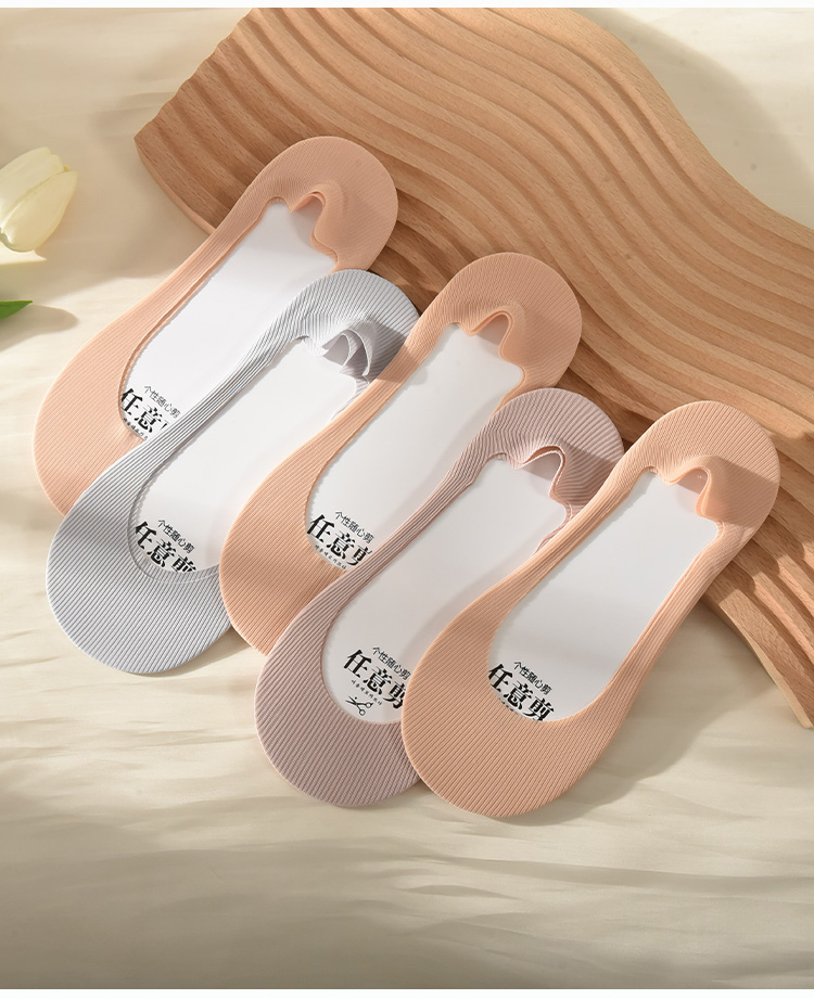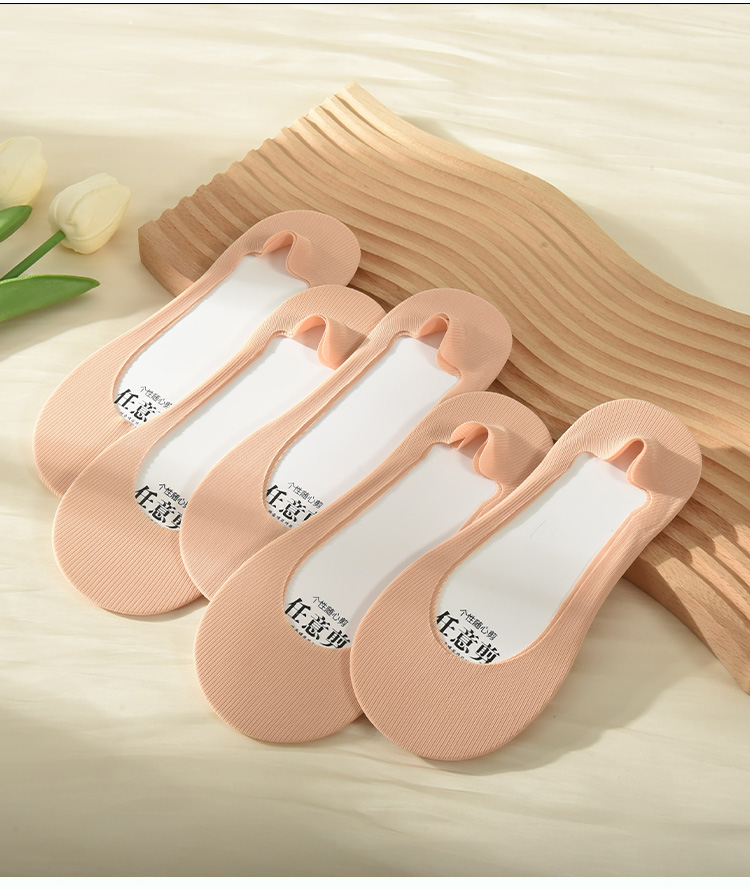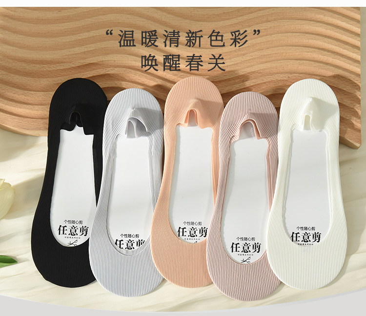 洁丽雅5双装船袜棉质随心裁舒适防掉跟女船袜薄款女士隐形袜子