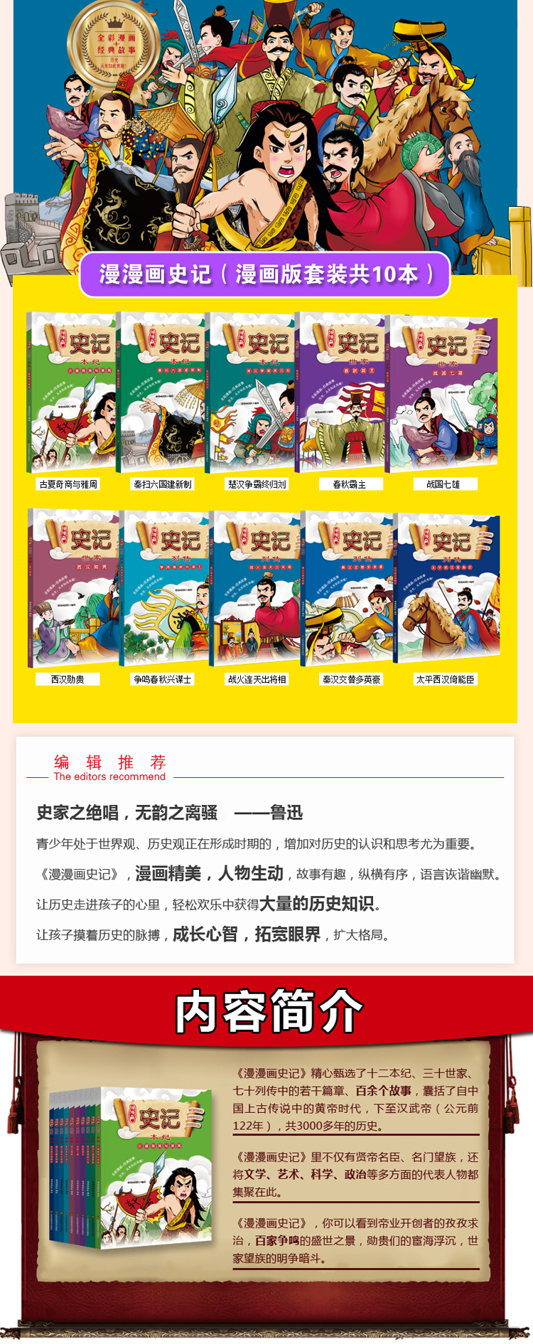 我们精心筹划,为青少年和喜好漫画、历史的读者献上了这套《漫漫画