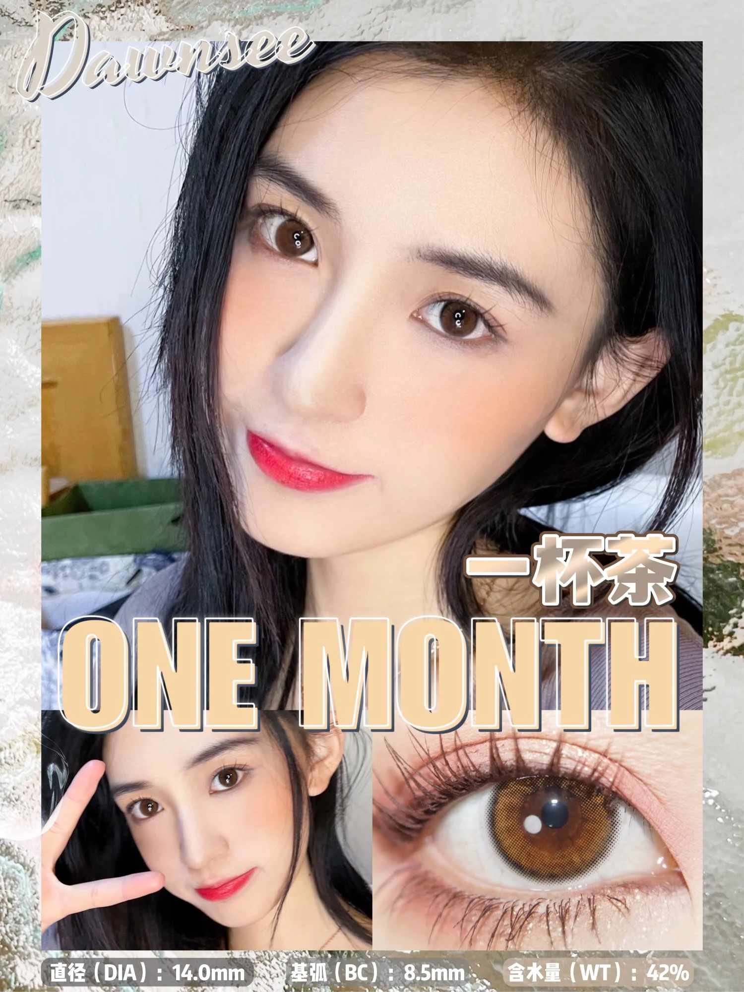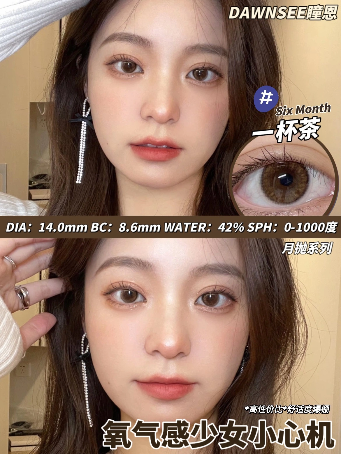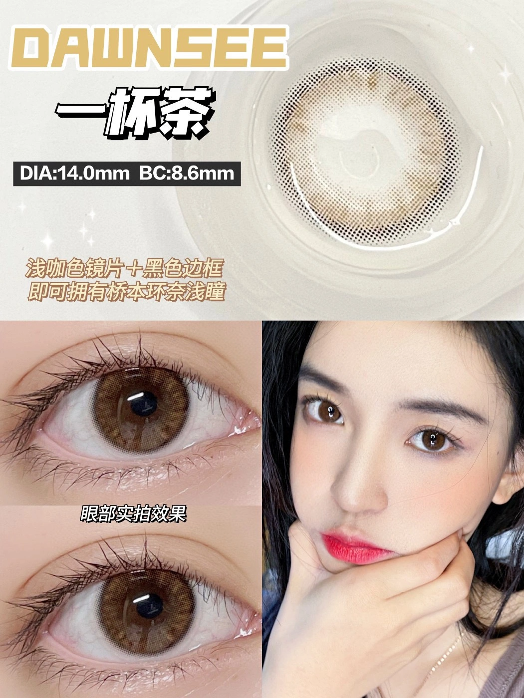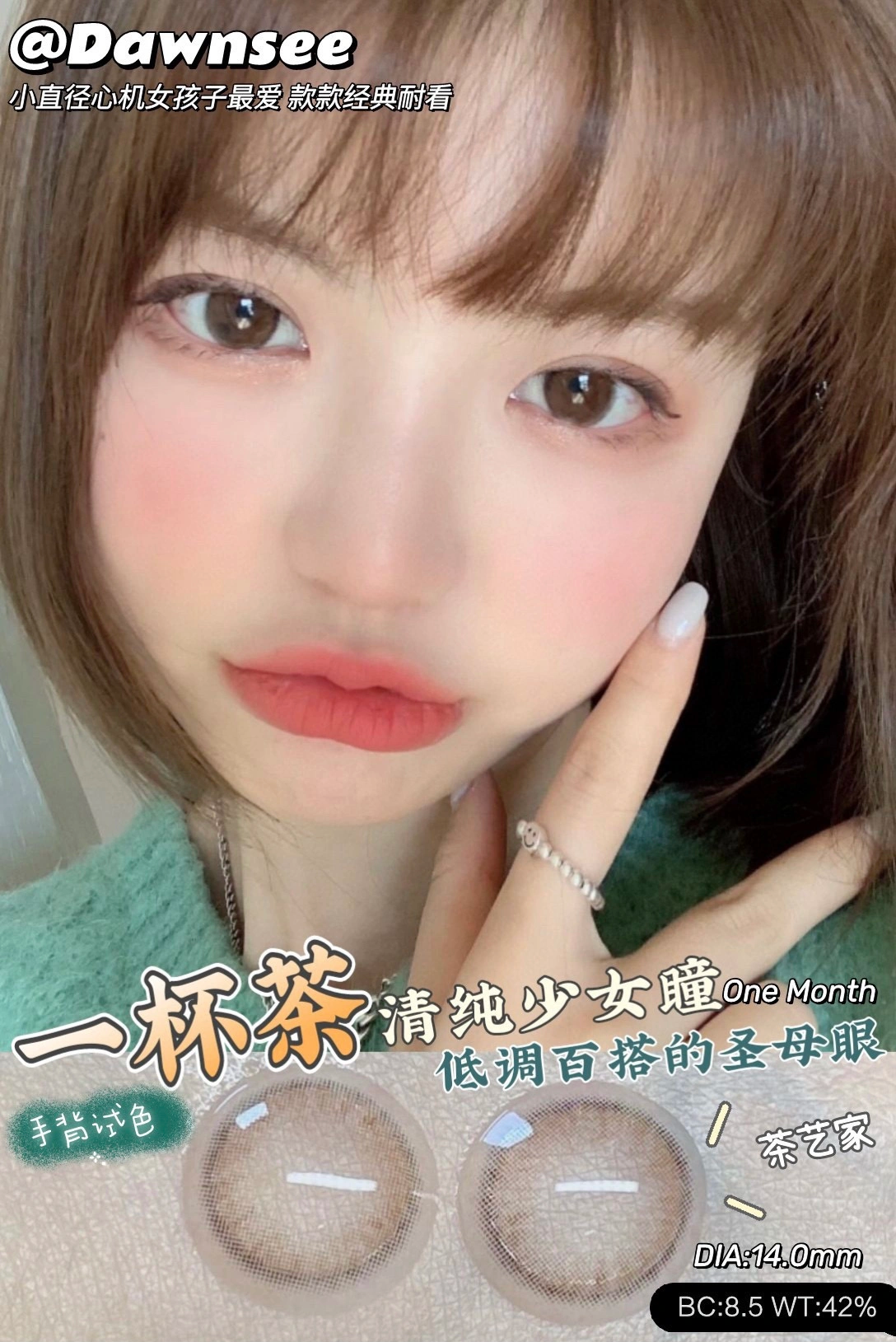 正品月抛 | Dawnsee瞳恩系列一杯茶美瞳 | 直径14.0着色直径13.3 | 新国货