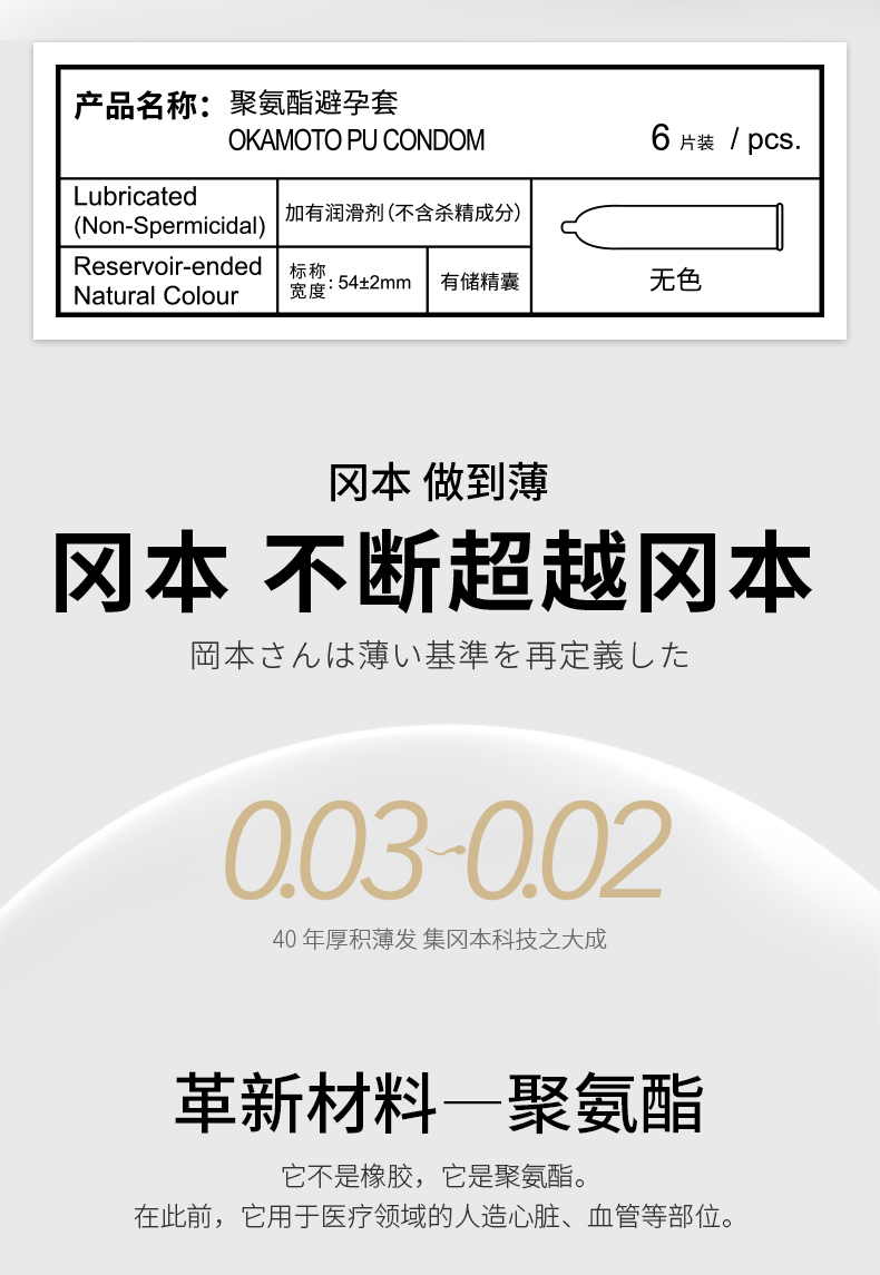 冈本002避孕套 0.02超薄安全聚氨酯非乳胶