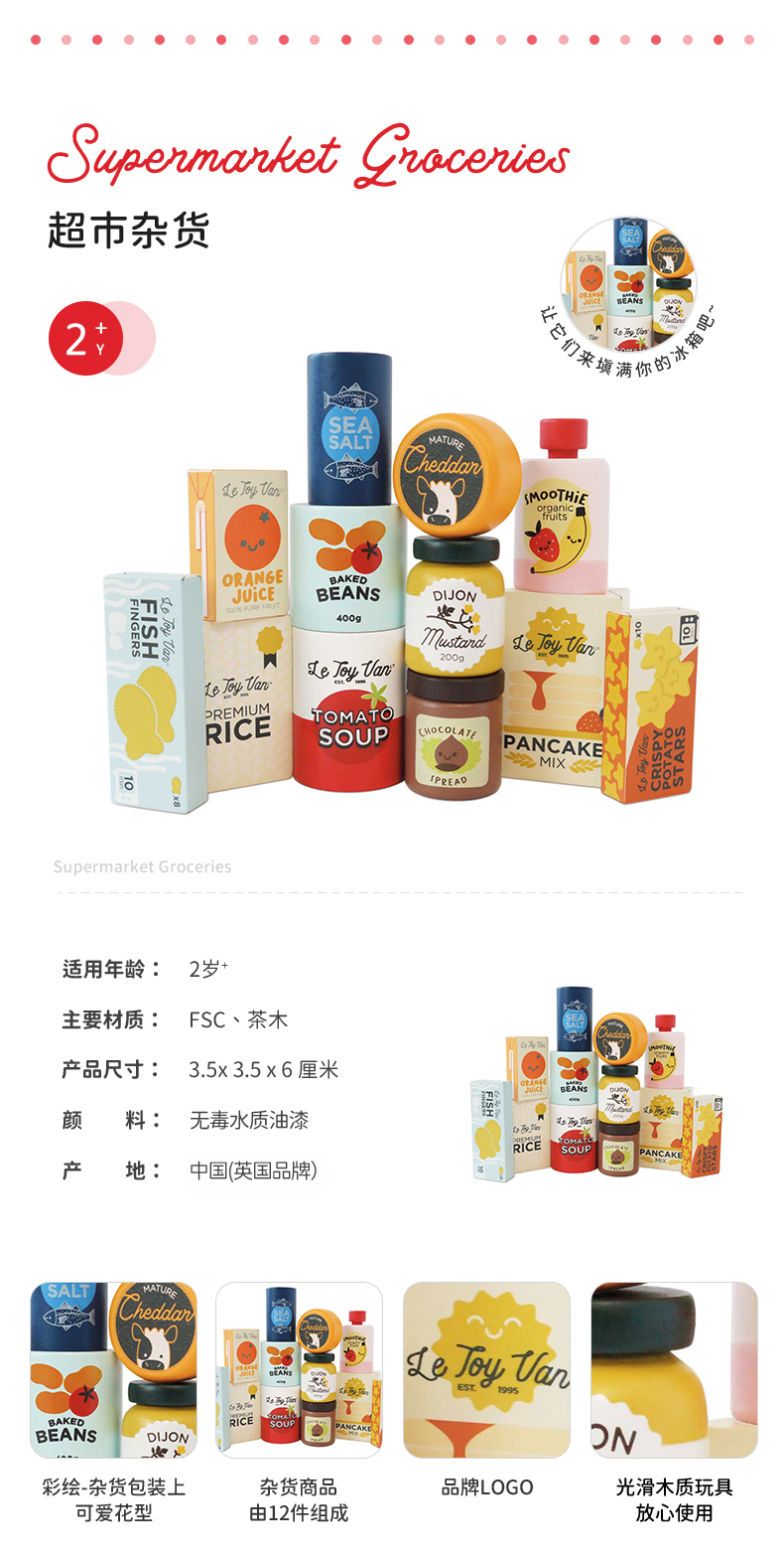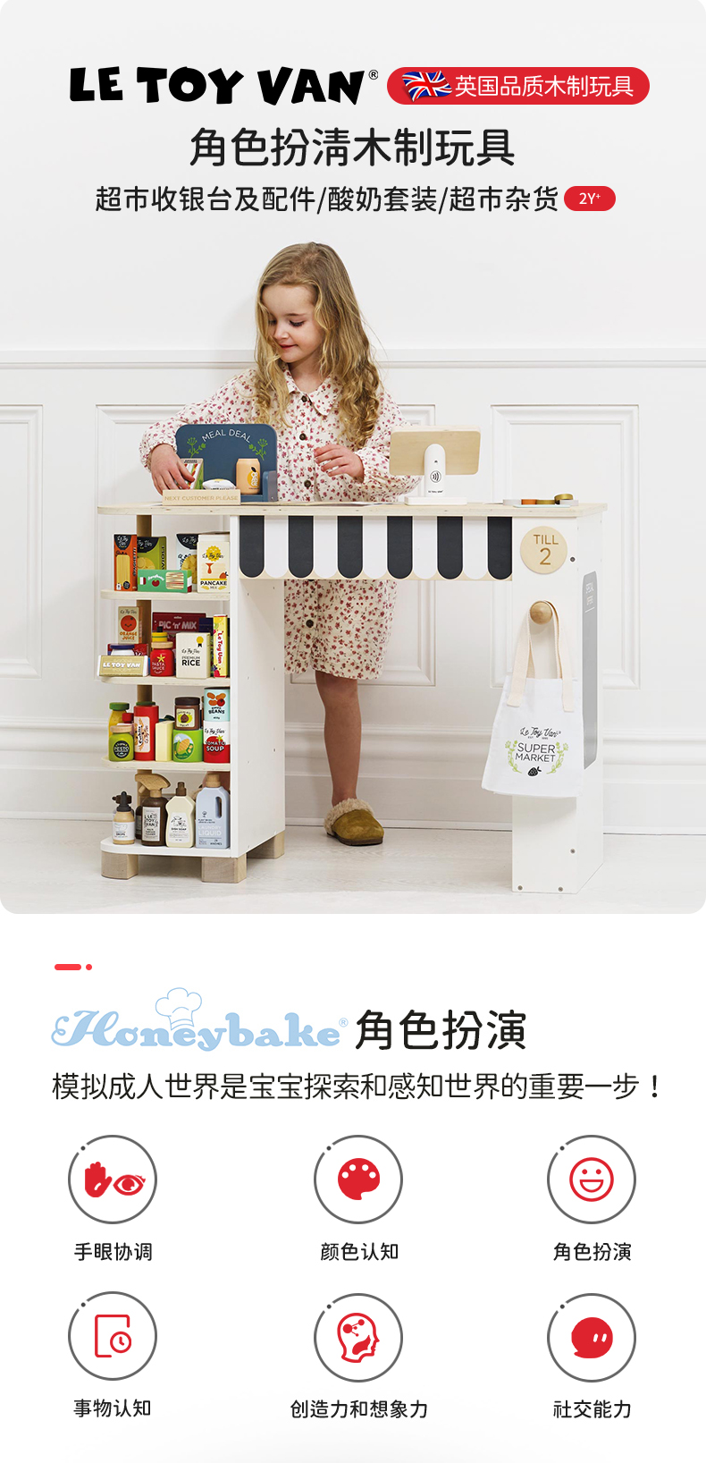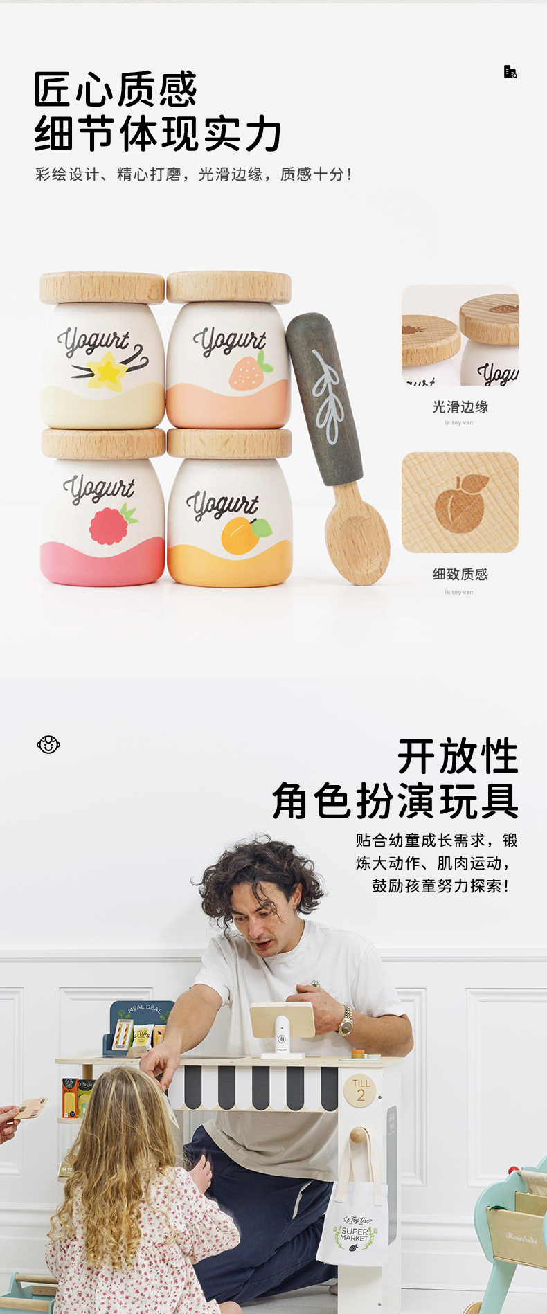 英国Le Toy Van超市杂货甜品台酸奶木制过家家玩具儿童仿真礼物 2岁+
