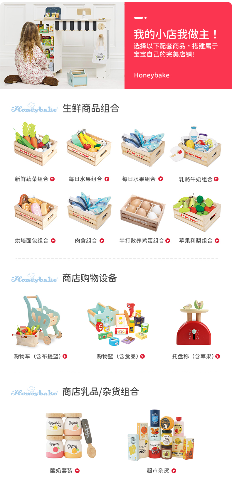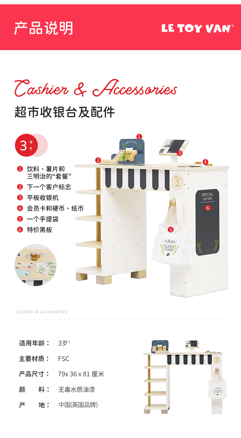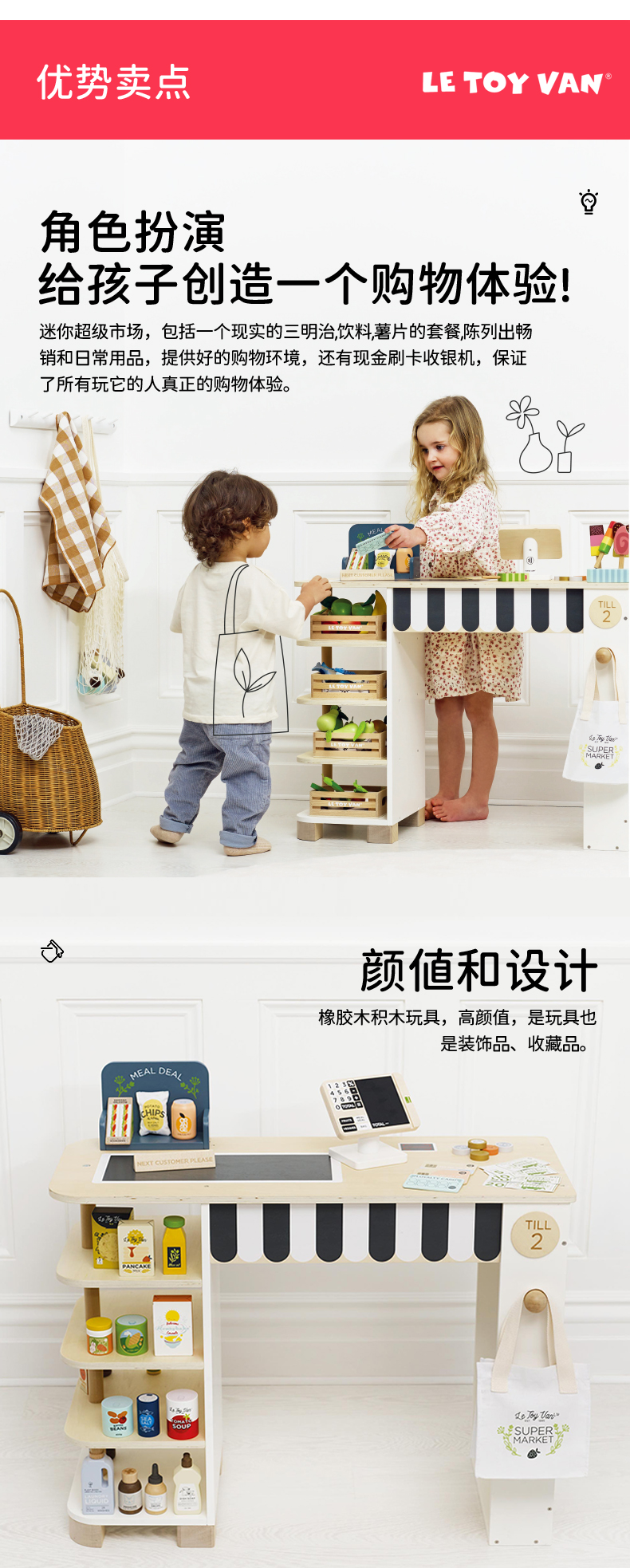英国Le Toy Van超市杂货甜品台酸奶木制过家家玩具儿童仿真礼物 2岁+