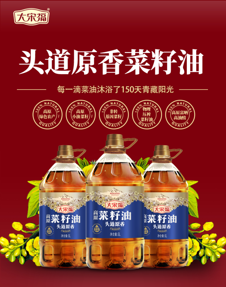 【社区团购】大宋福菜籽油食用油头道原香食用油特香植物油物理压榨菜籽油5L