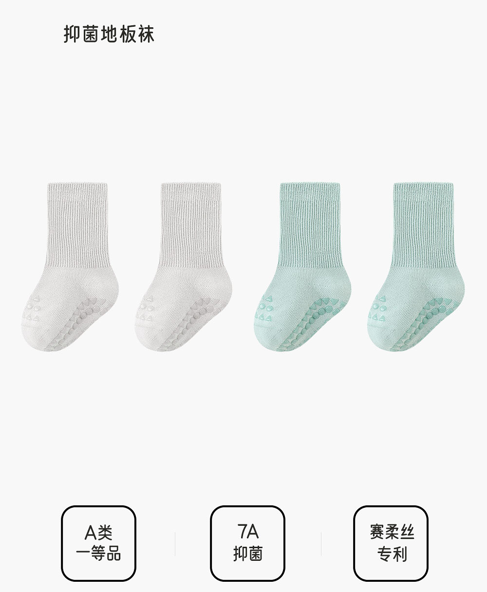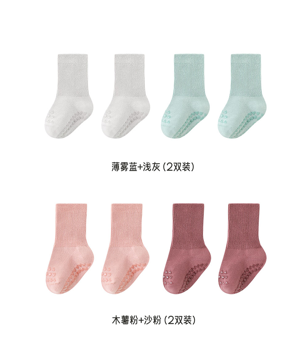 英氏婴儿袜子纯色四季袜男女宝抗菌2双装儿童地板袜YIWCJ0R153A YIWCJ0R154A
