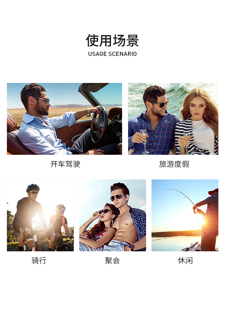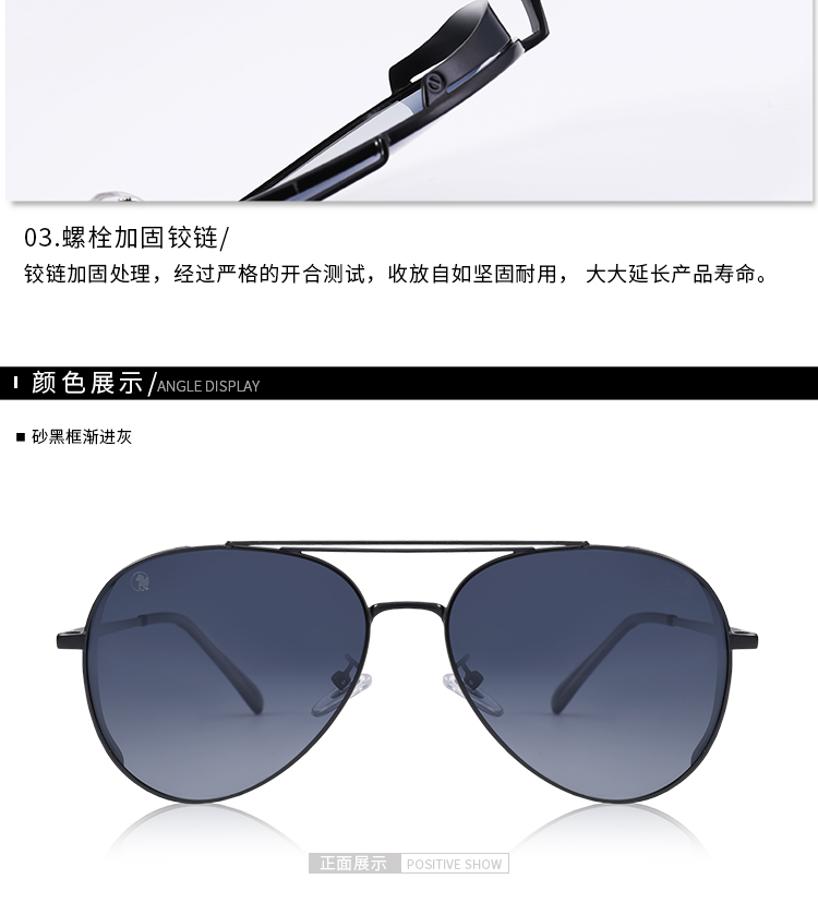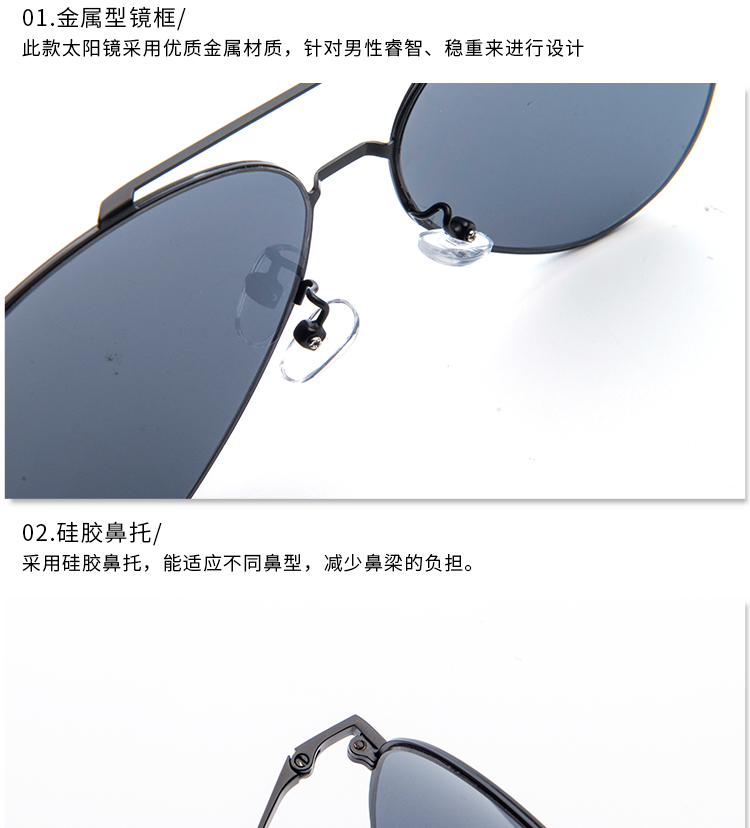 这款墨镜此款太阳镜采用优质金属材质,针对男性睿智、稳重来进行设计。