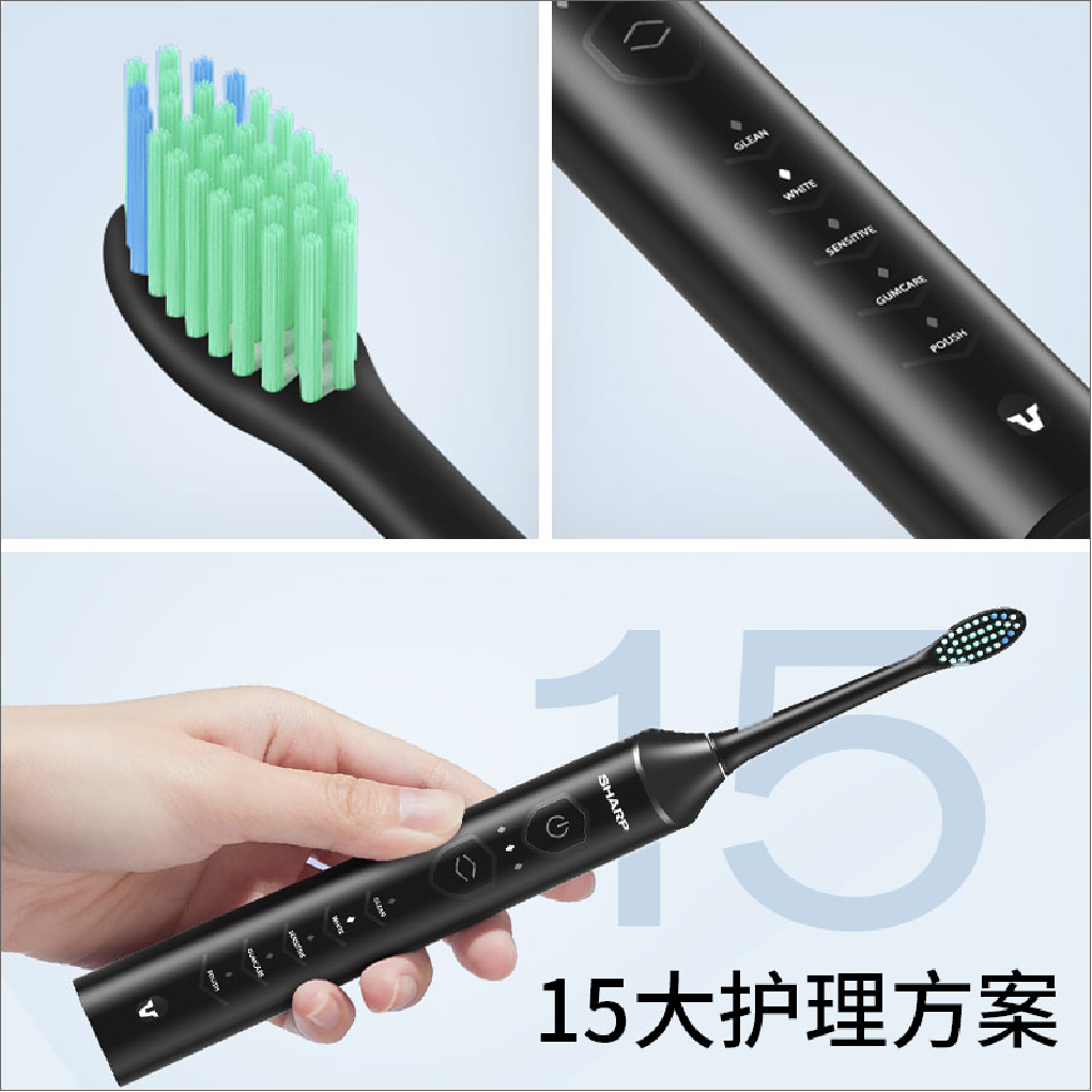 【1件包邮】夏普电动牙刷DO-NS68C-BK/240066 5档15模式,每个模式有3个档位,适用于不同口腔类型需求