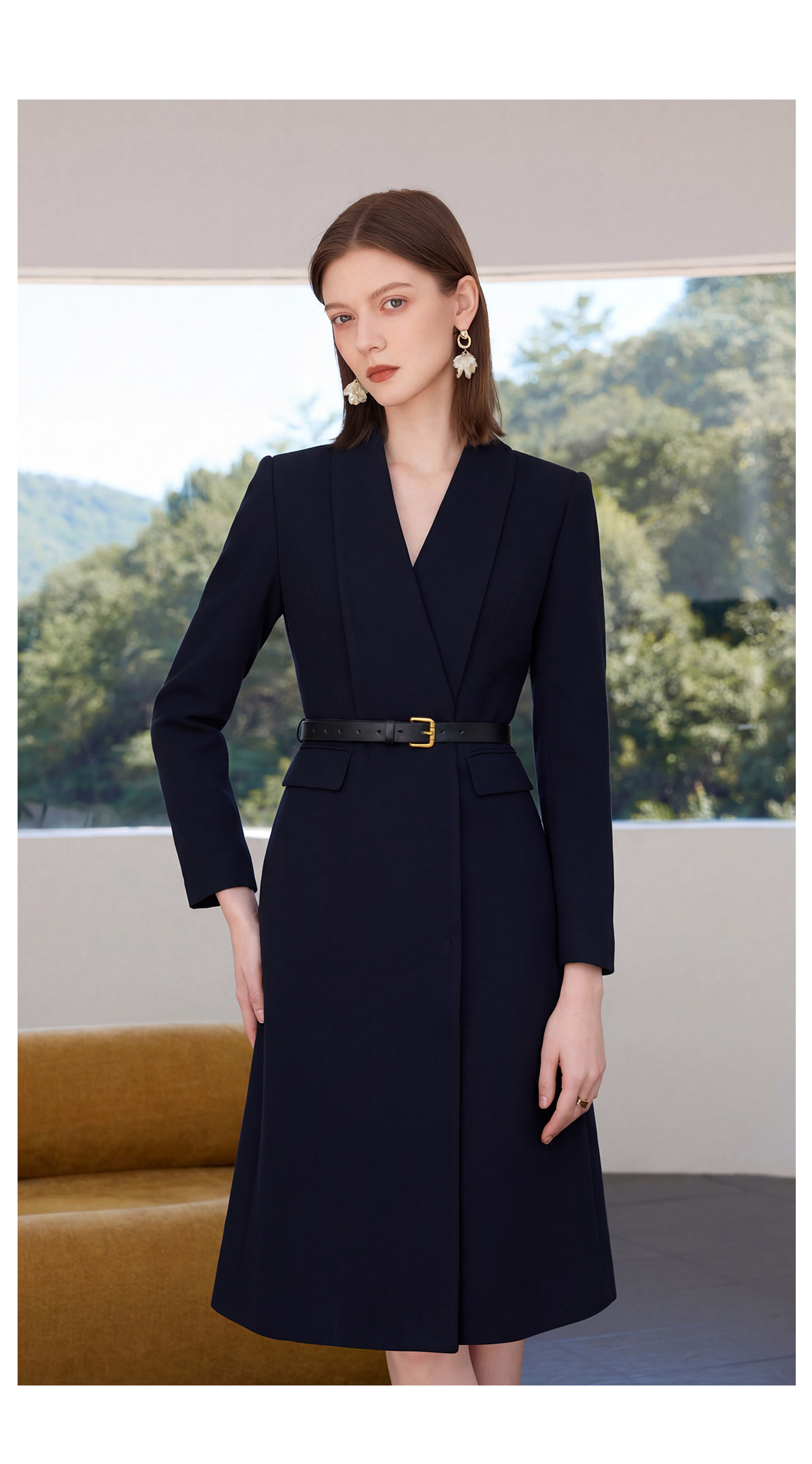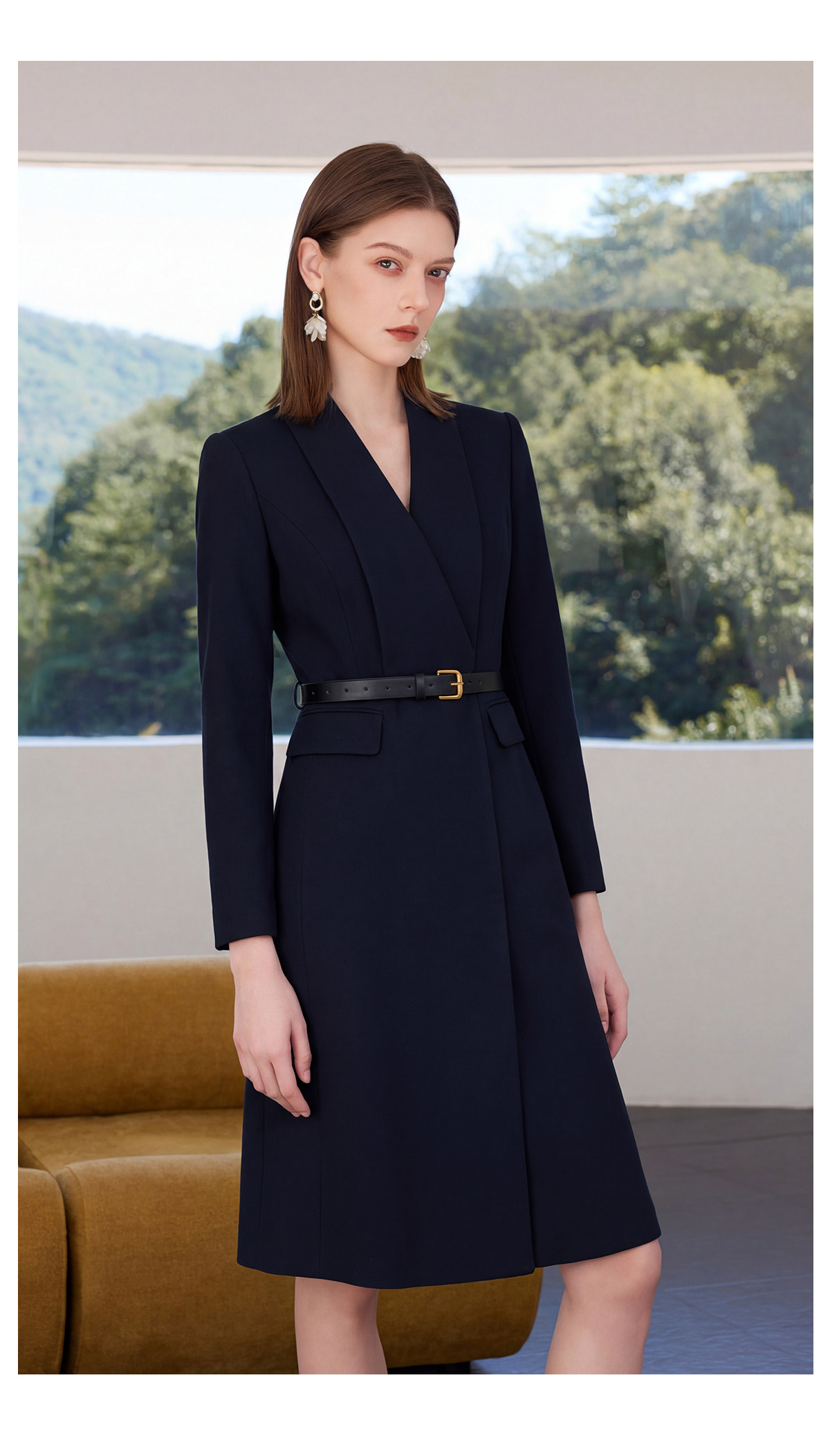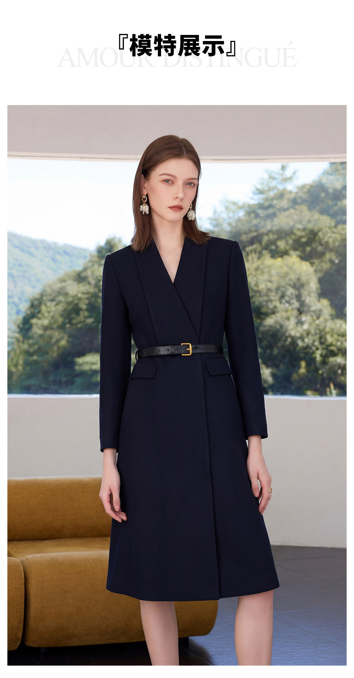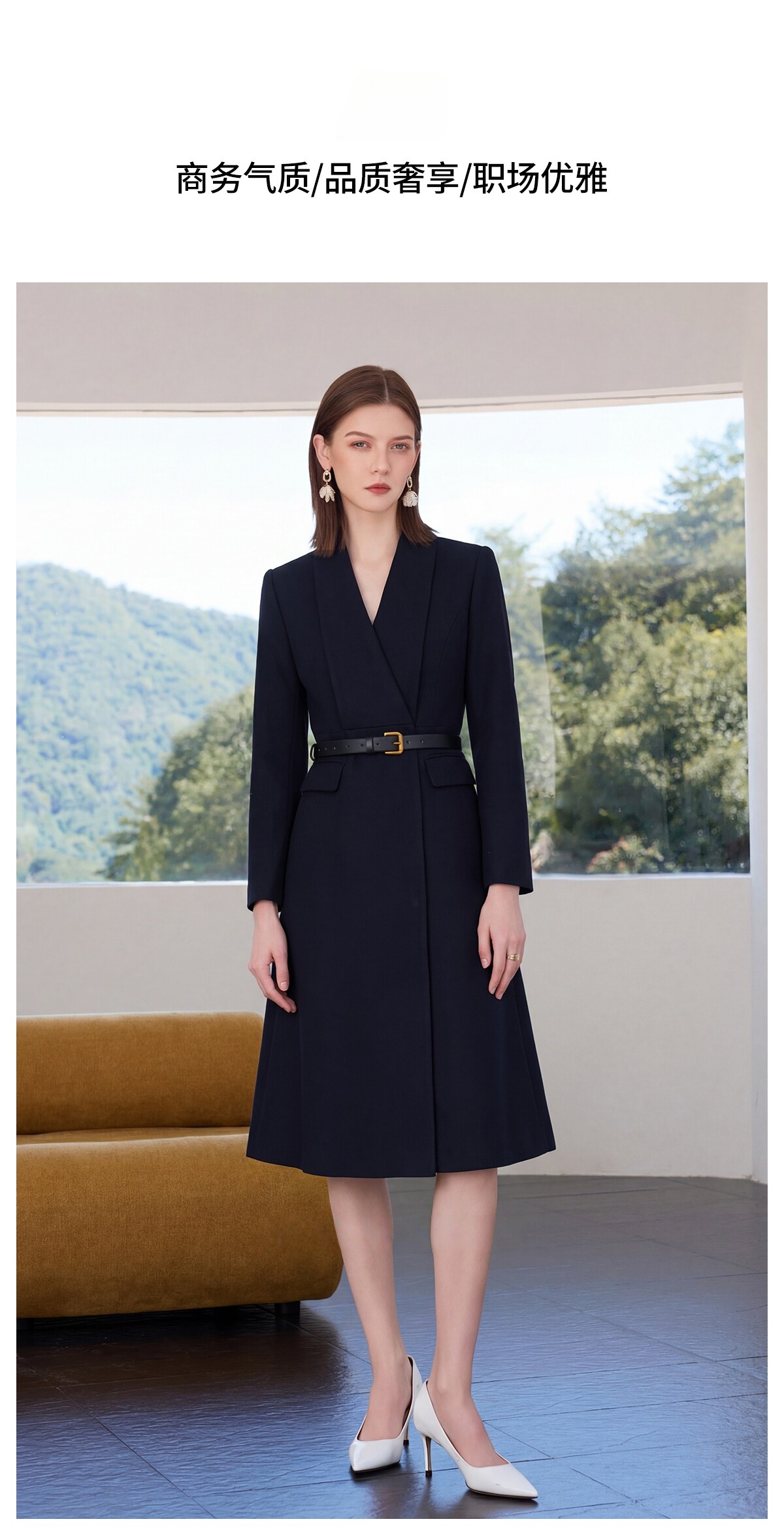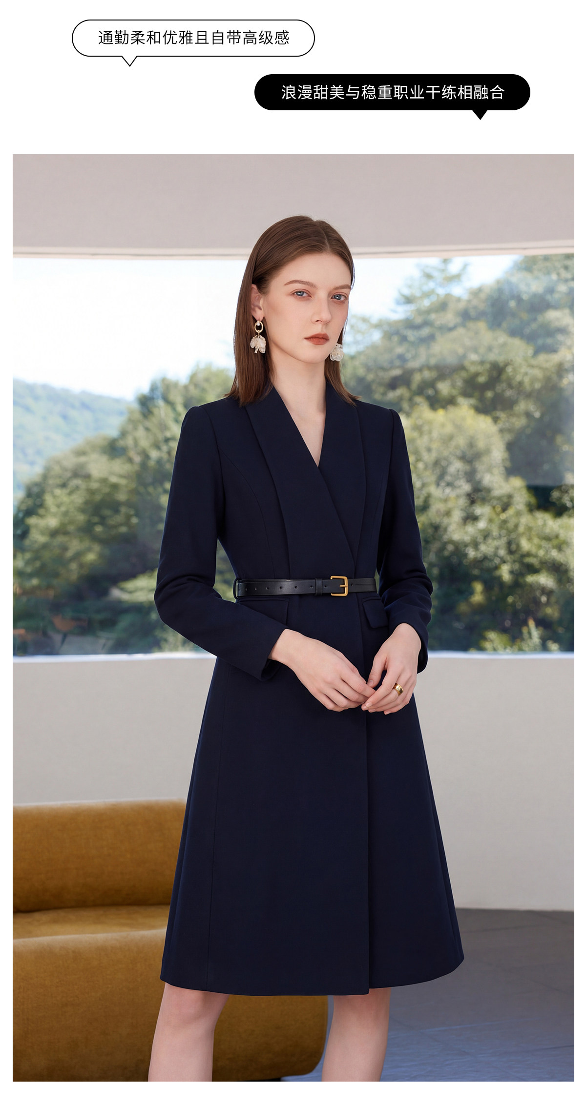 IWY/高级感藏青色连衣裙女收腰显瘦职业装通勤裙气质商务西装裙Q1518