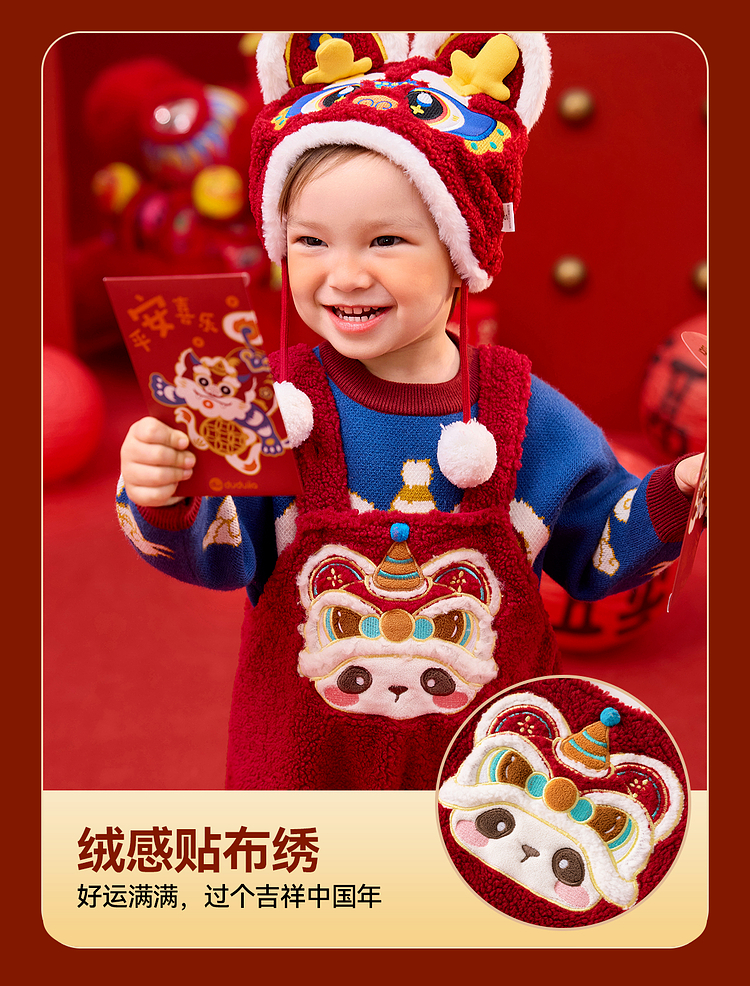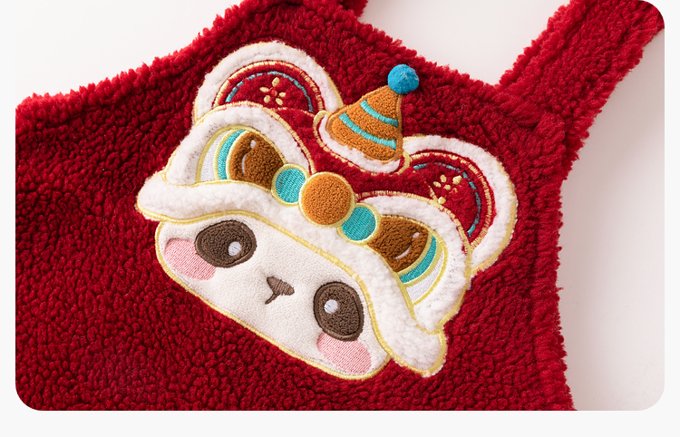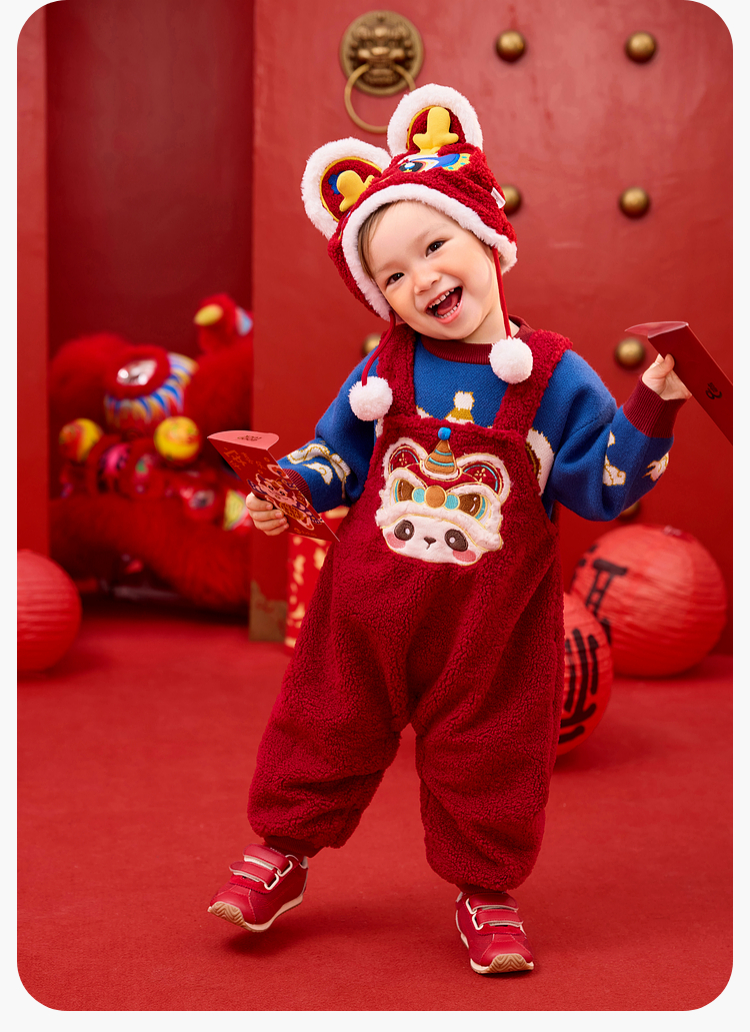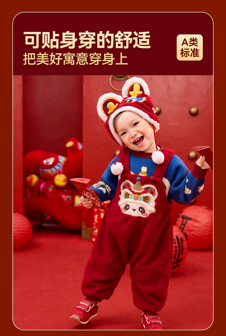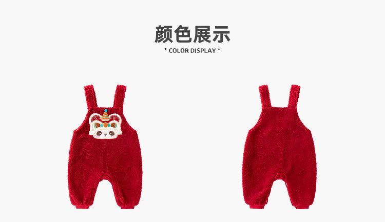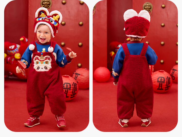【年装上新】“喜气荣荣”儿童新年红色加绒背带裤宝宝周岁礼服