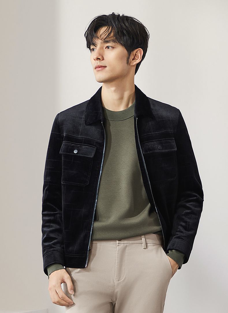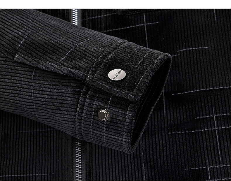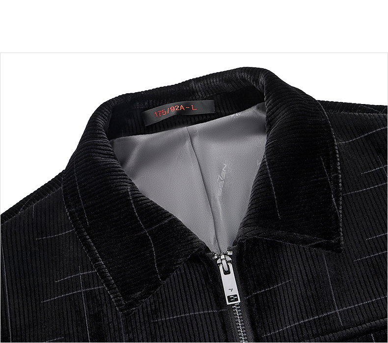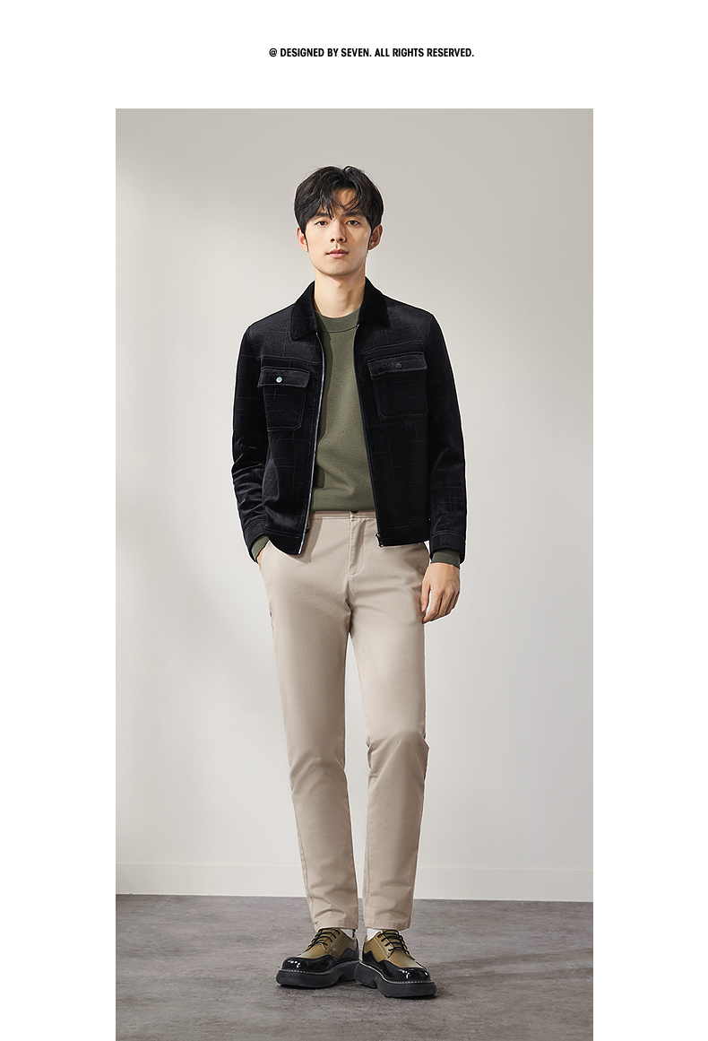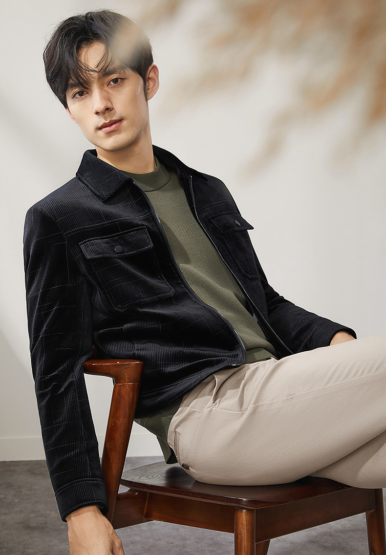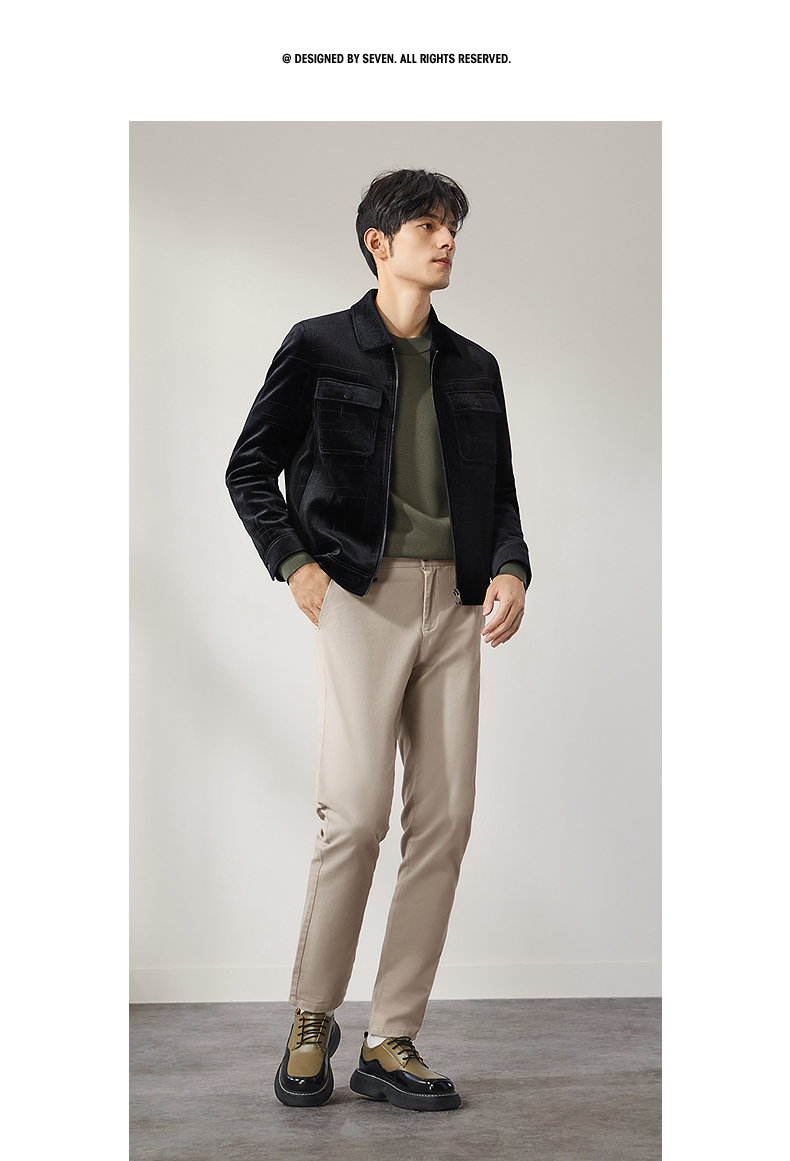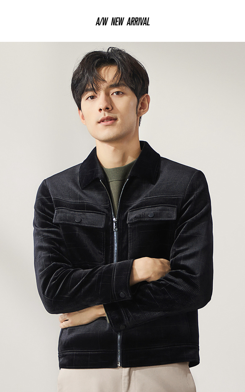 柒牌灯芯绒翻领夹克2024秋冬新款时尚潮流几何印花黑色茄克衫外套127K71060