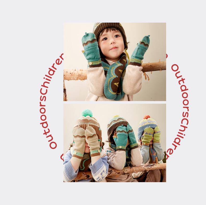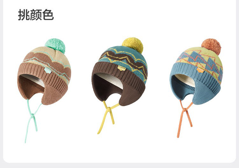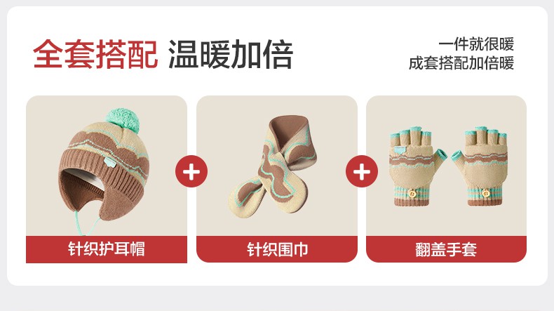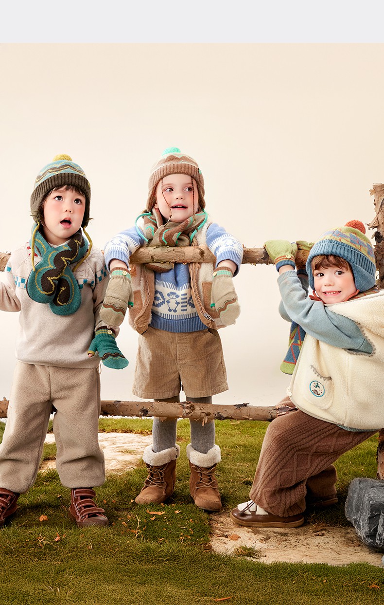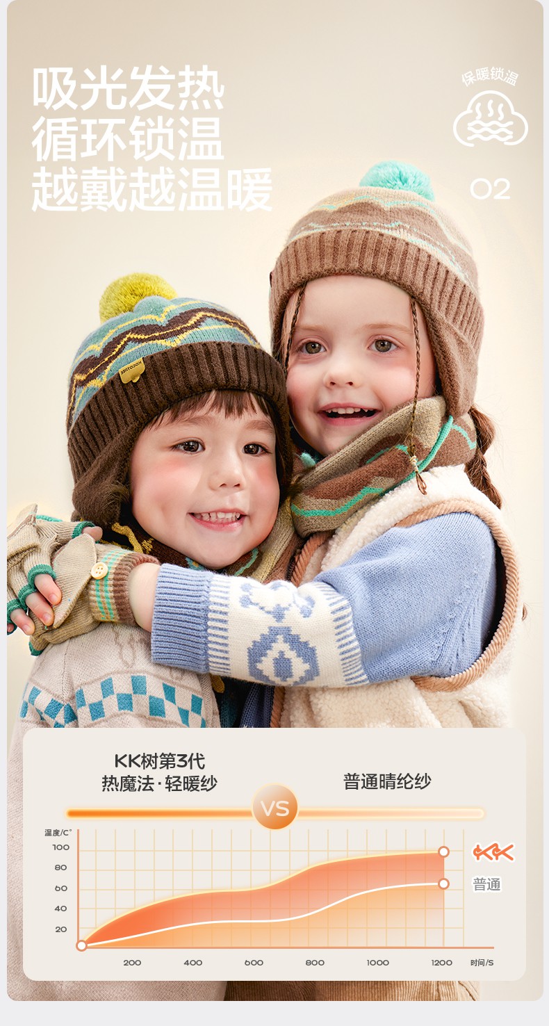 KK树儿童帽子围巾手套三件套男孩女童秋冬季护耳针织帽2025新款造梦几何家针织套装