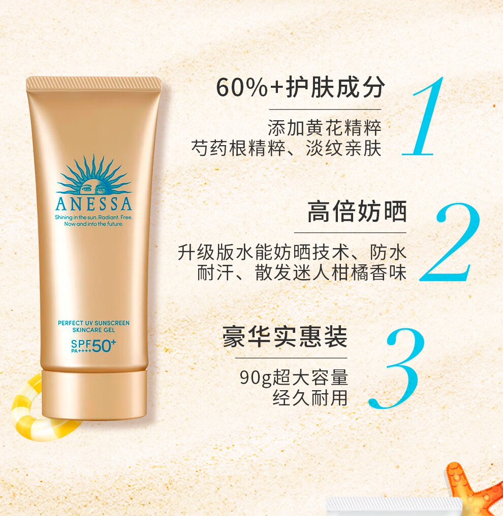 【品牌授权】安热沙(Anessa)日本安热沙防晒小金瓶防晒霜安耐晒防晒乳霜男女通用SPF50+PA+++90ml