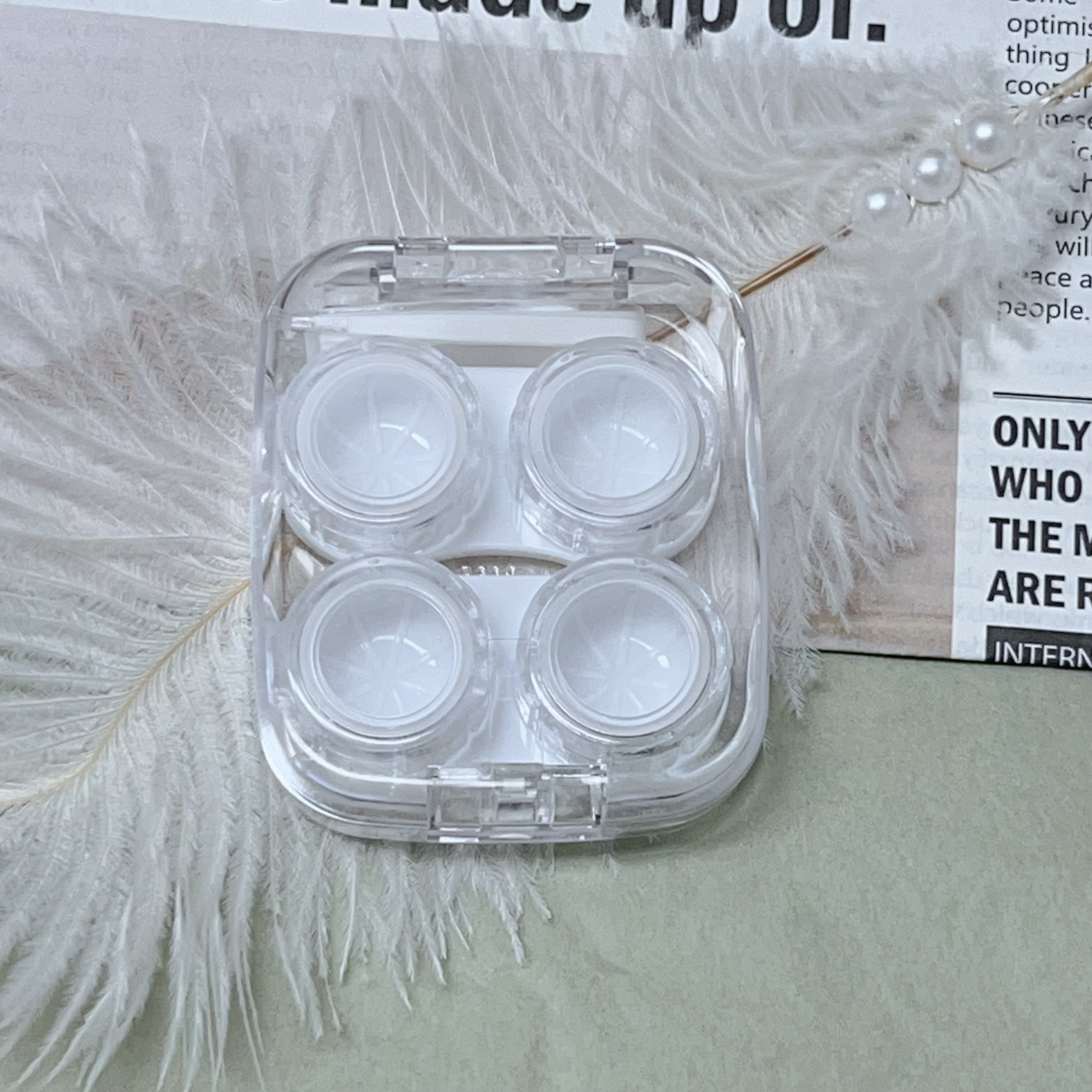 新款透明简约两幅装隐形眼镜盒护理盒美瞳盒8065