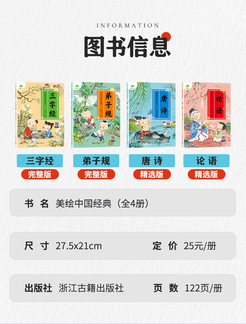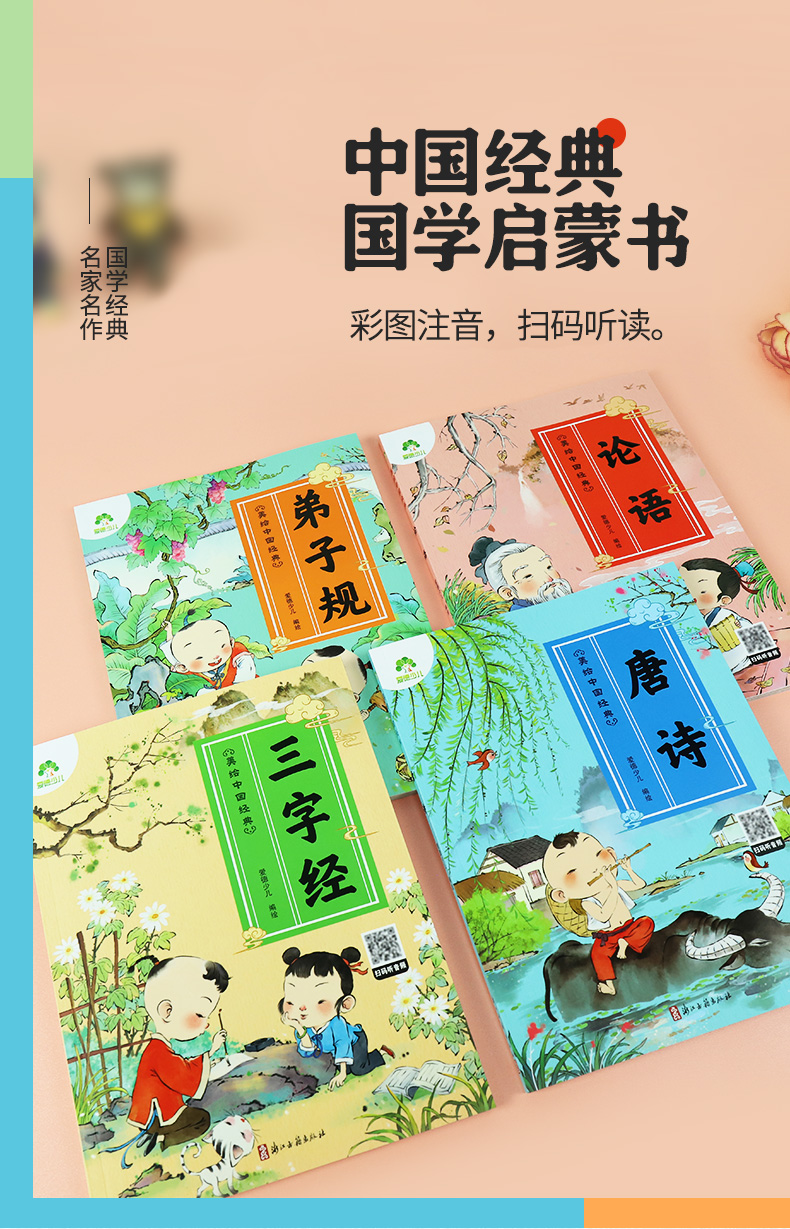 爱德少儿 美绘中国经典 第一辑4册三字经书早教儿童弟子规国学启蒙经典正版唐诗300首幼儿绘本论语注音版3-6岁幼儿小学生一二三年级诵读本
