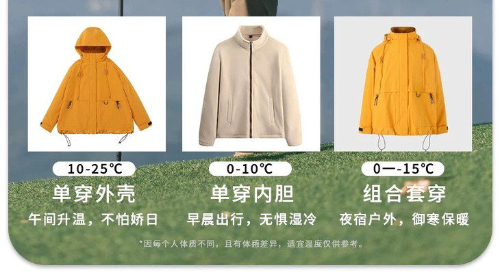 🌸【加摇粒绒内胆】刘亦菲同款三合一情侣冲锋衣✨✨✨ ✔三合一设计,🌿轻松面对不同场景与温差🌻 ✔可单穿可叠穿,😉实穿性强性价比极高❗ ❗ ❗ ✔不厚重不压身,同时具备户外的防护性能🔥