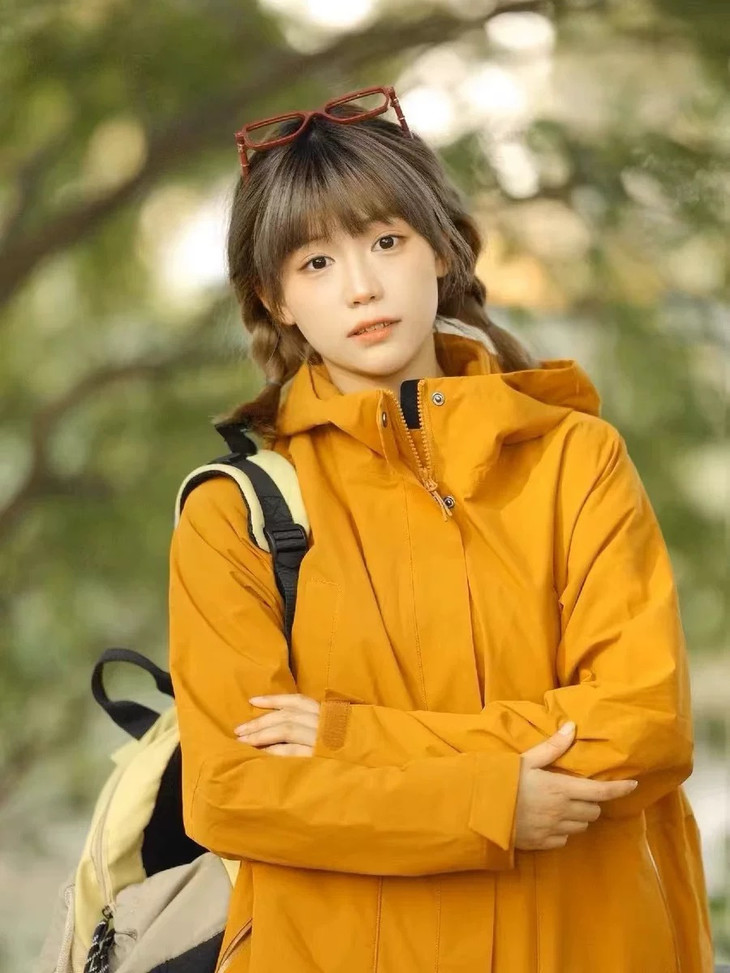 向日葵-黑色内胆 向日葵-黄色内胆 卡其色 朱雀红黑色5色~ 这还需要推荐吗!!! 就向日葵色直接冲吧,色彩饱满亮度高的橘黄色,很浓郁很醒目 户外旷野一眼看得到目标,很安全! 刘亦菲剧里穿的也是这个颜色,就很黄玫瑰~~ 黑白两色不多说,经典百搭不过时 尤其这个灰白色很好看,灰调不是米白那种 如果是日常通勤想要低调一点可以闭眼冲 不然户外我还是推荐你们买彩色~~