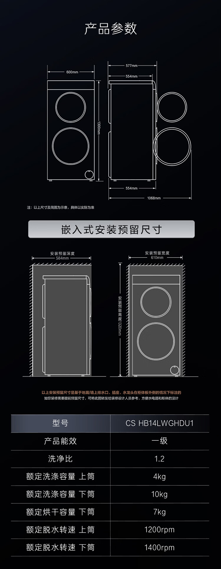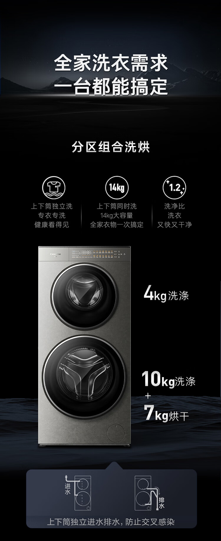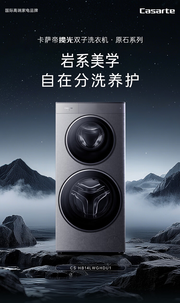 卡萨帝(Casarte)原石双子洗烘14KG 洗衣机全自动 大容量岩纹质感外观 CS HB14LWGHDU1