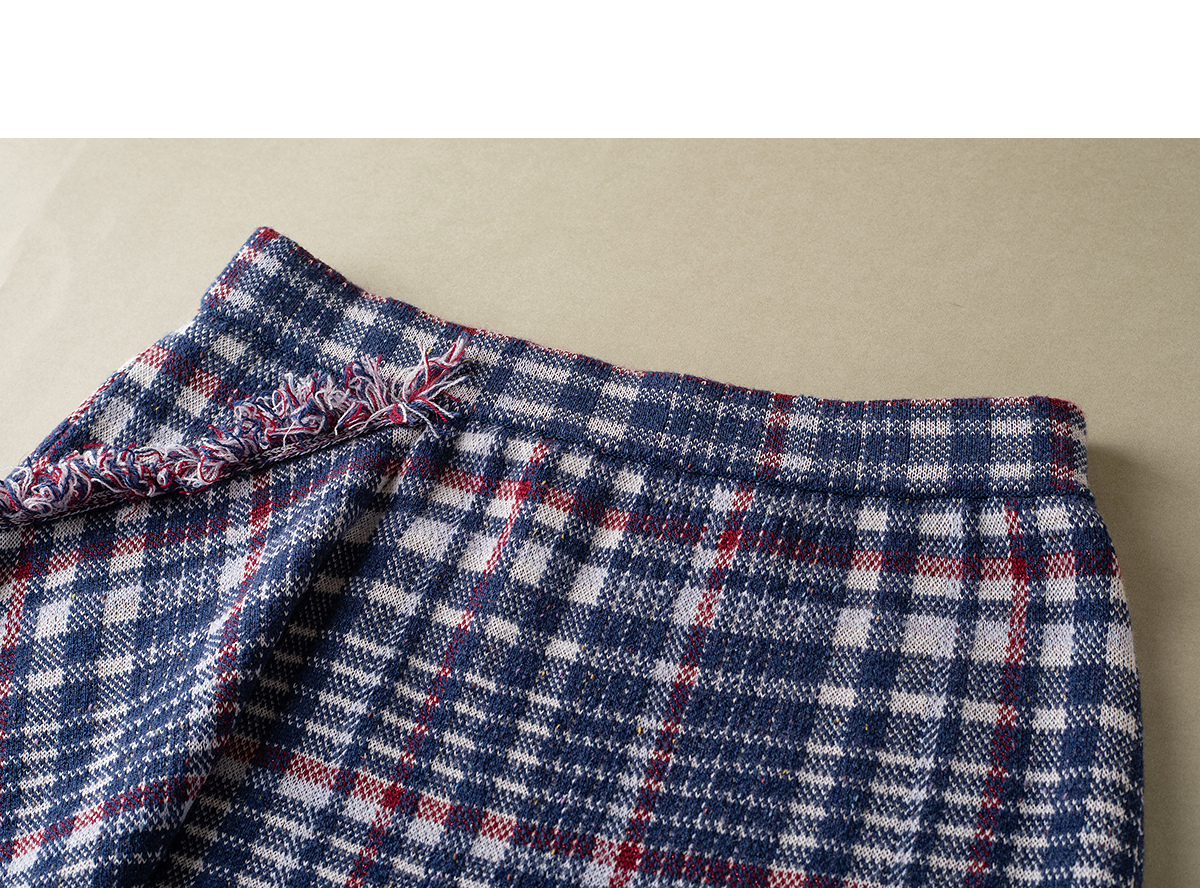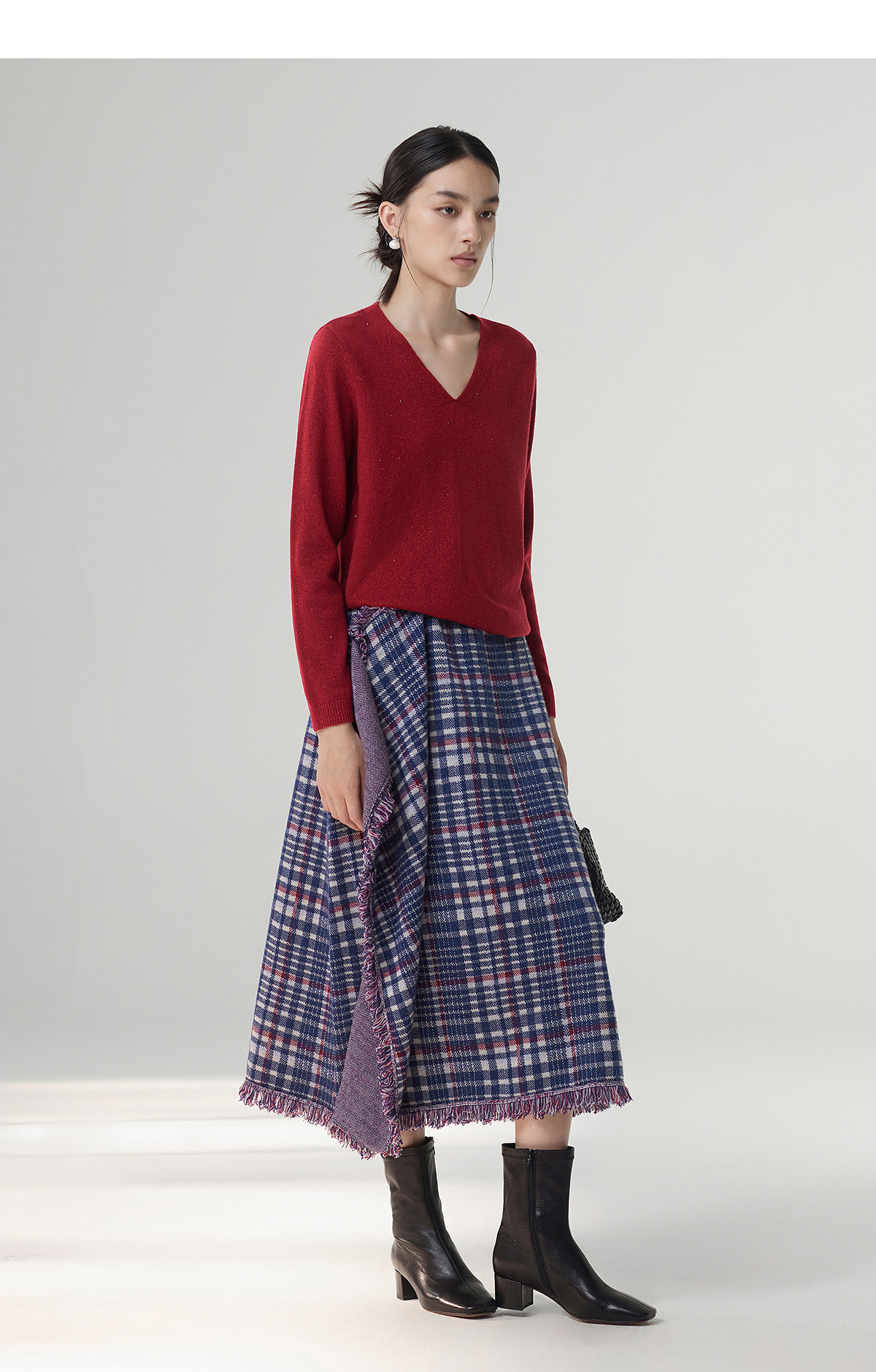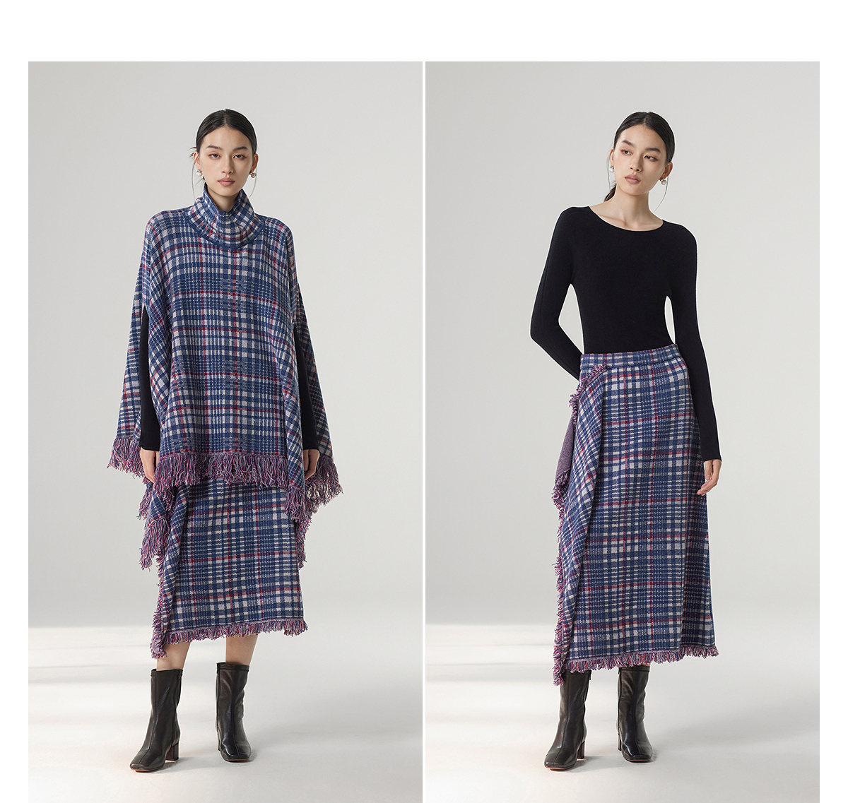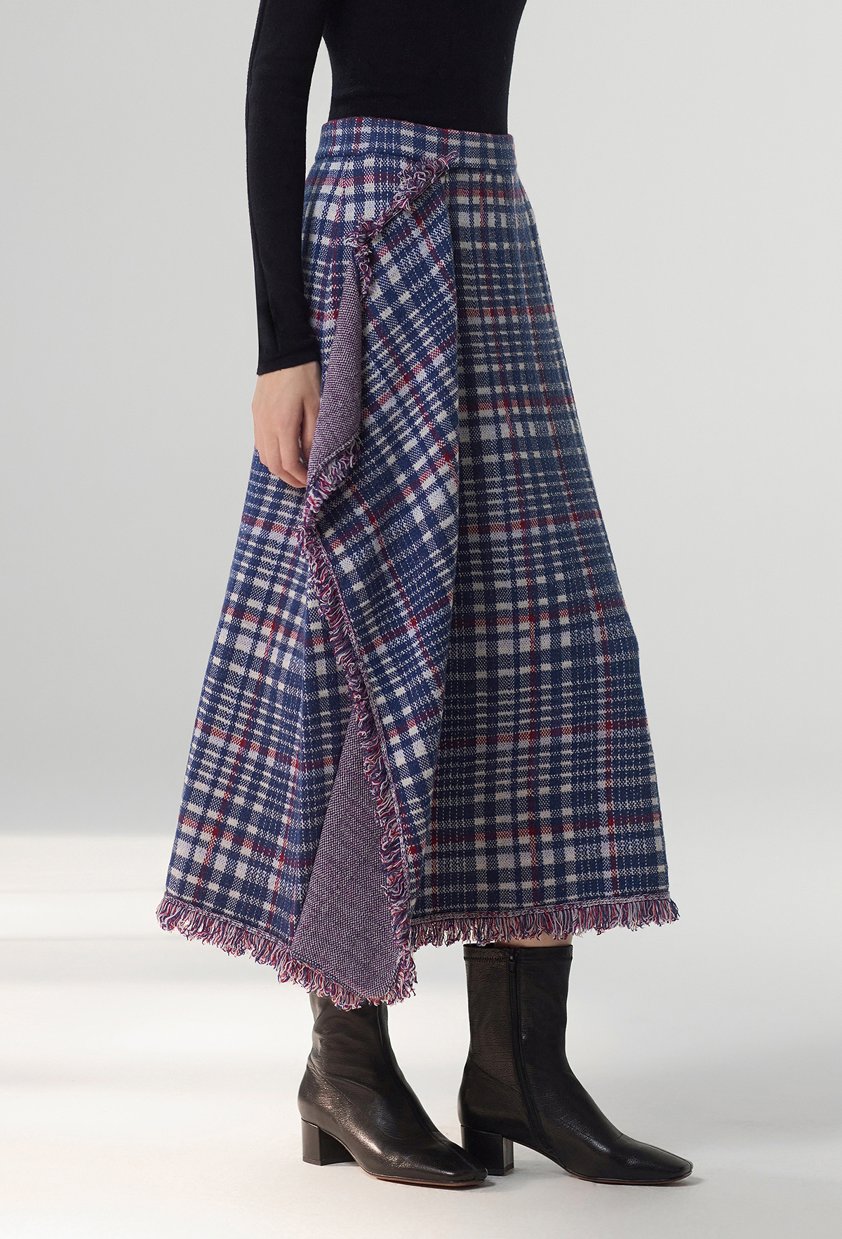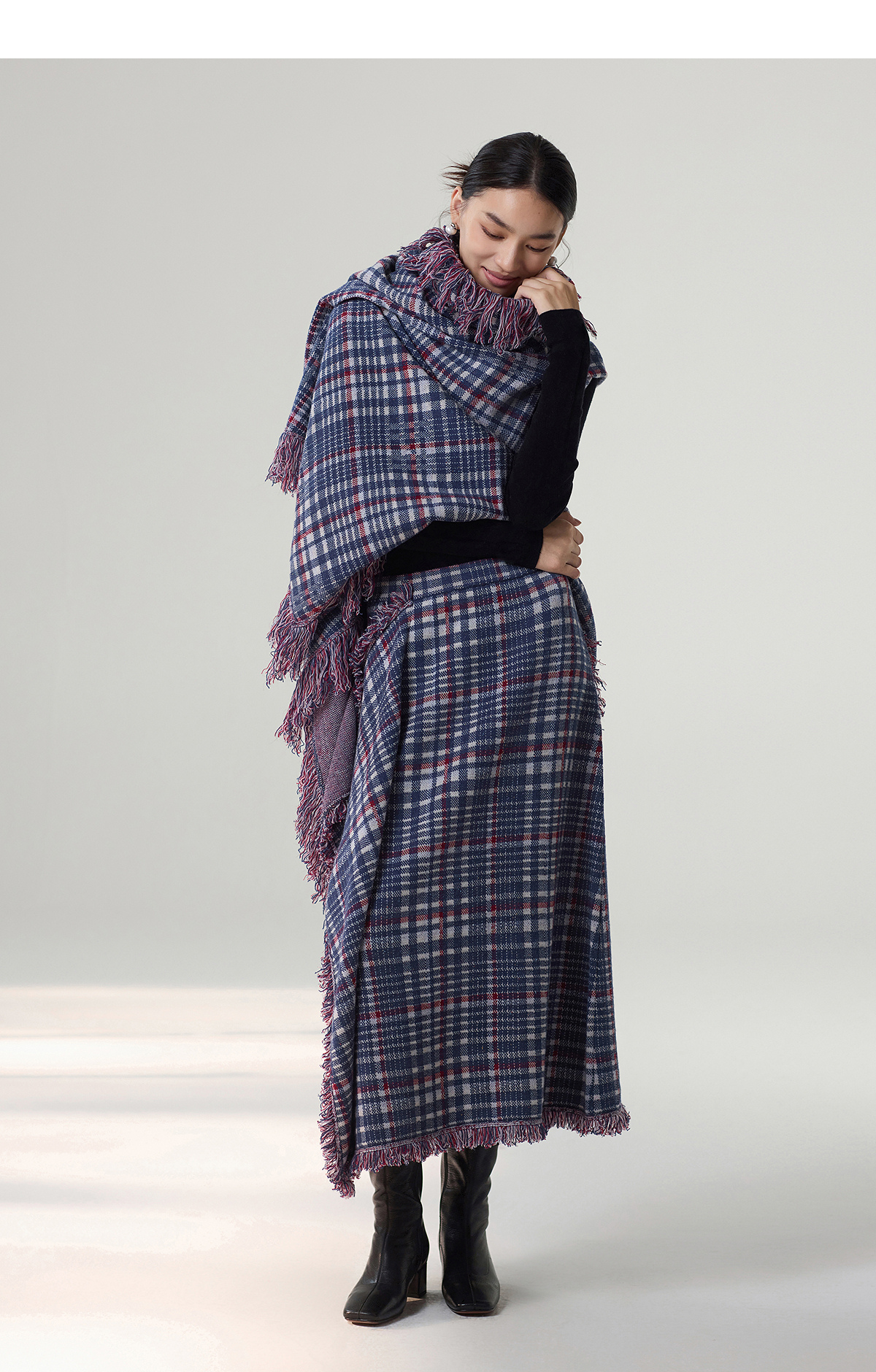 【林栖设计小店】格纹毛织半身裙复古百搭气质宽松2025秋冬新款流苏裙子女1954005