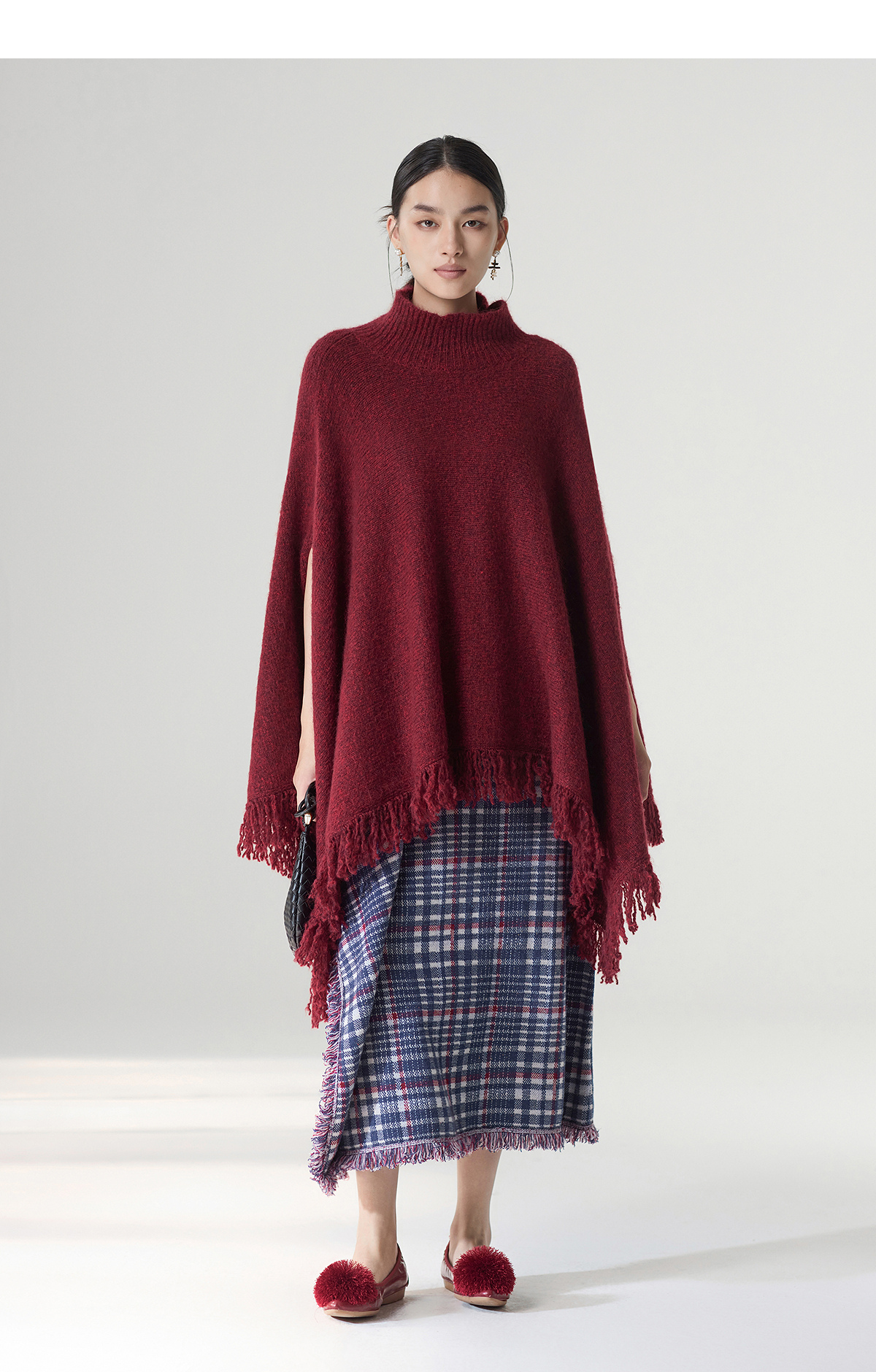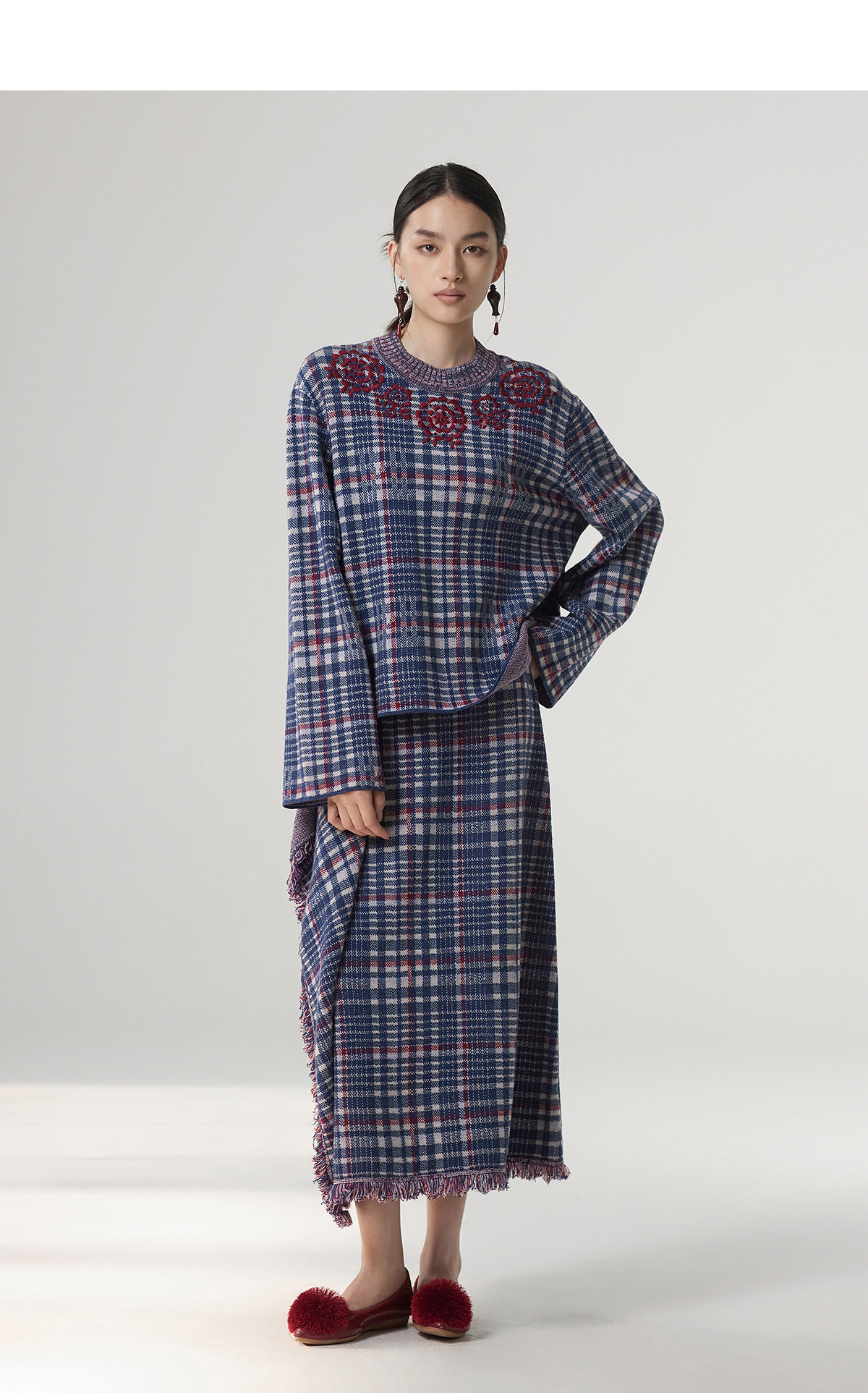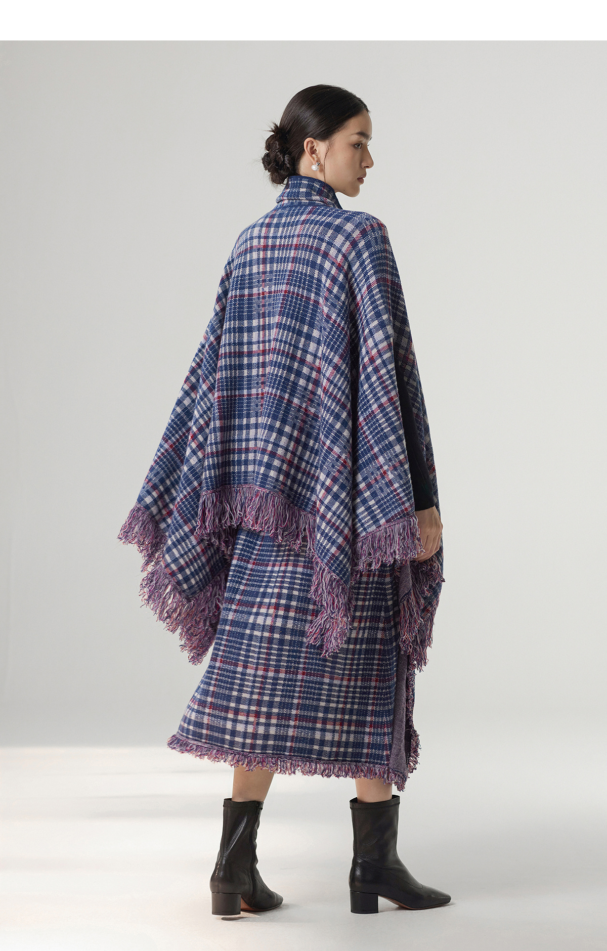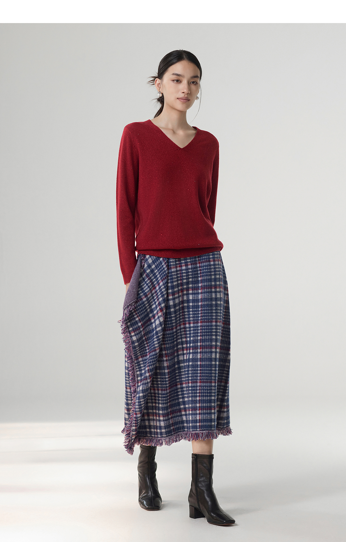【林栖设计小店】格纹毛织半身裙复古百搭气质宽松2025秋冬新款流苏裙子女1954005